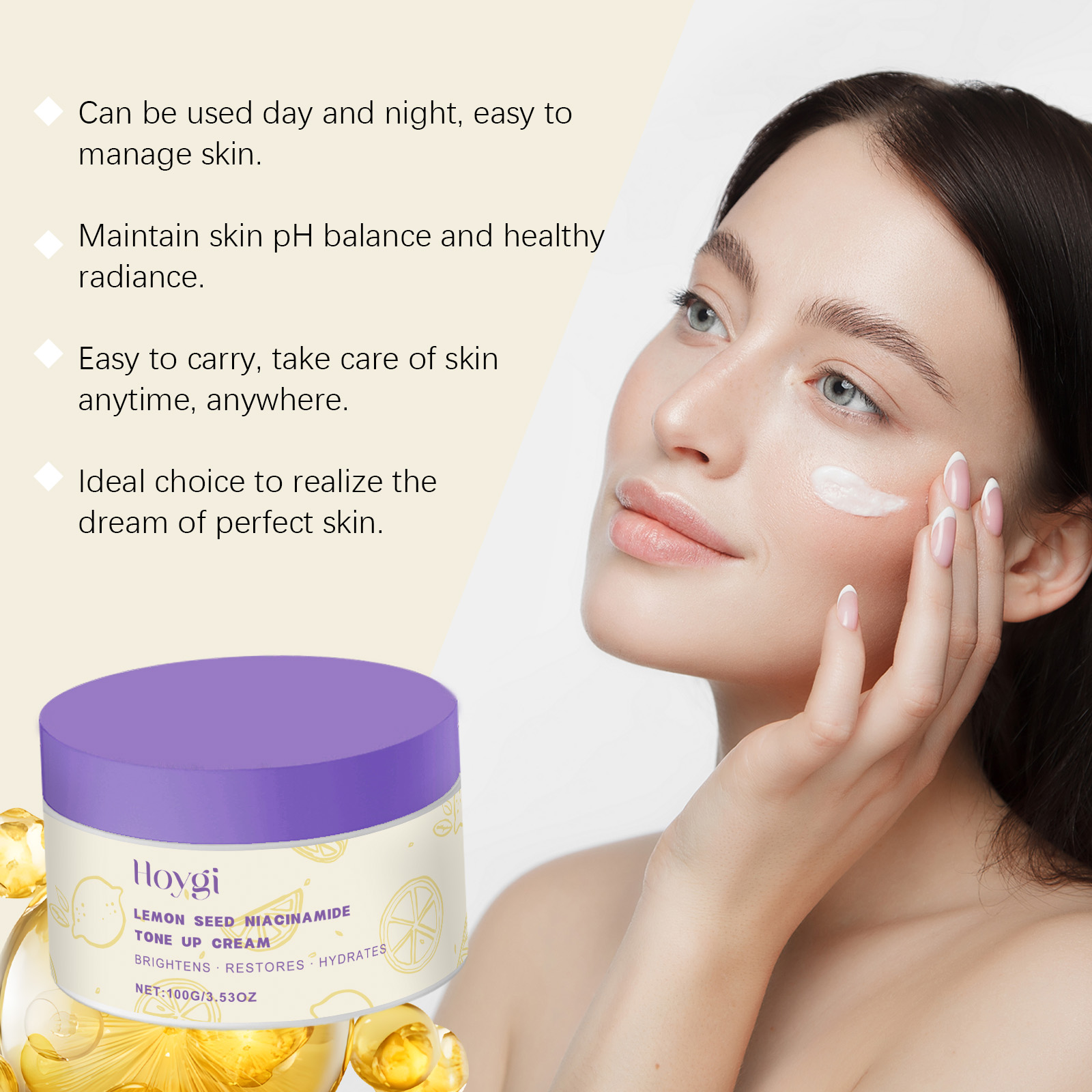 我们的柠檬籽烟酰胺亮肤霜含有柠檬籽油、维生素C、维生素E。它可以让肌肤焕发活力,焕发光彩。它的使用方法很简单:清洁并擦干皮肤。适量涂抹于面部。轻轻按摩以吸收。并且可以改善不均匀的肤色,提升肌肤的整体美感。