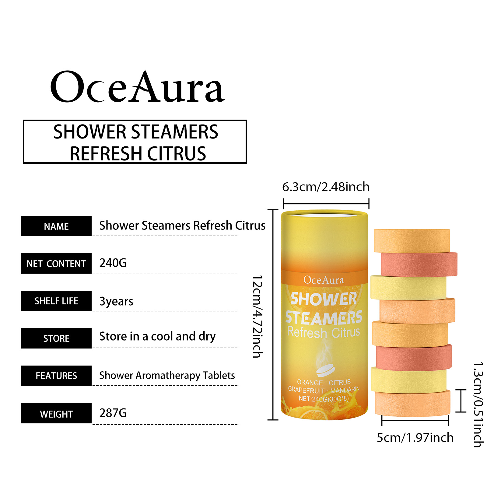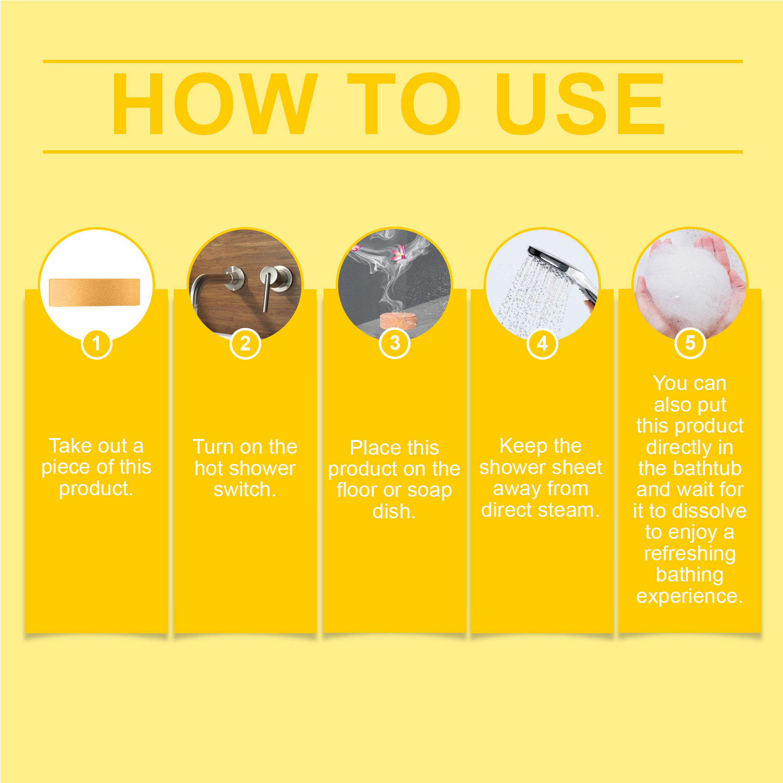 我们的柑橘香薰淋浴片含有柑橘味:香精、柑橘果提取物;橙子味:香精、橙子提取物;葡萄柚味:香精、葡萄柚果提取物;薰衣草味:香精、薰衣草提取物。它可以香气溢满,给您愉悦的沐浴体验。在淋浴时释放清新的香味,放松你的心灵。它的使用方法很简单:取出该产品的一部分。打开热水淋浴开关。将此产品放在地板或肥皂盘中。将淋浴布远离蒸汽。也可以直接将本品放入浴缸,等待溶解,享受清爽的沐浴体验。并且可以清新的香味让你整天精力充沛。
