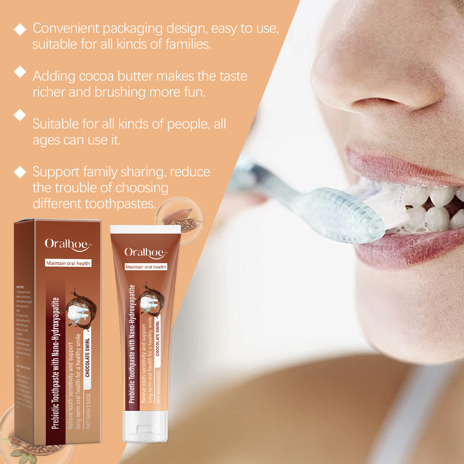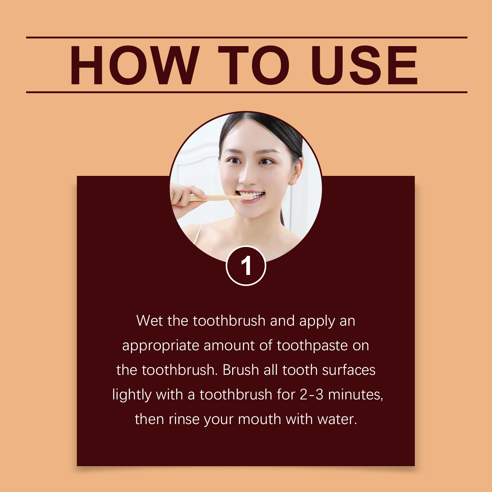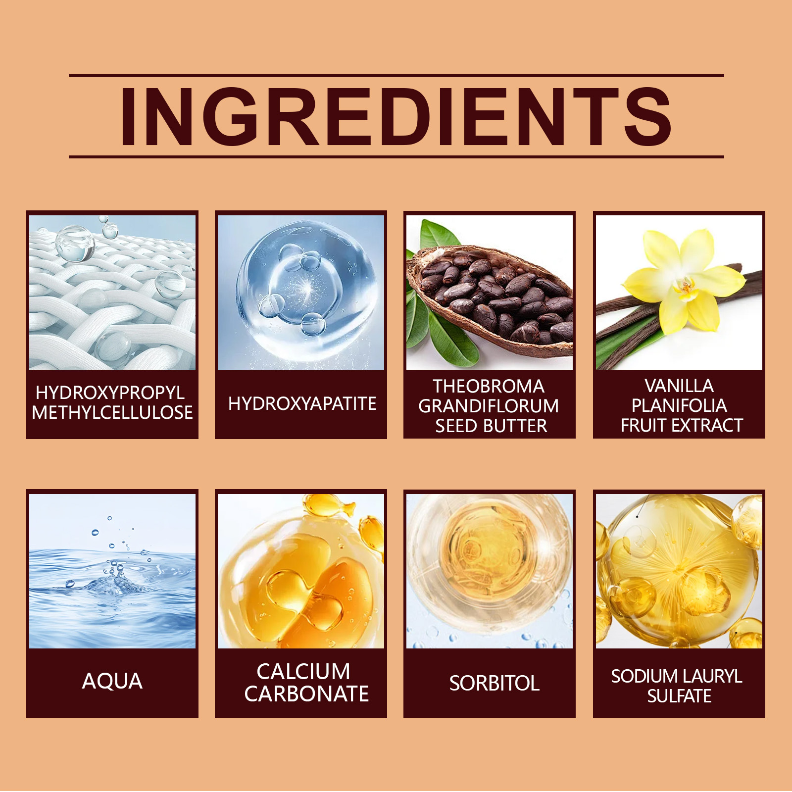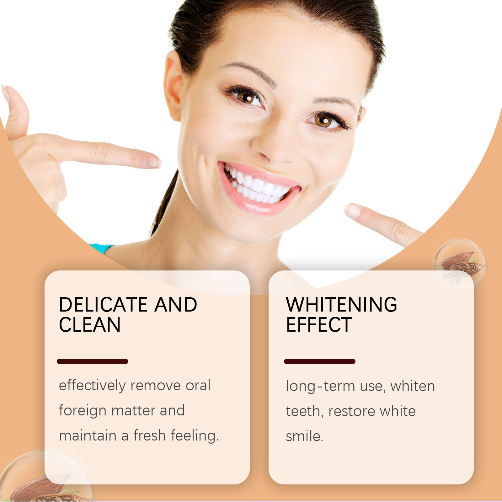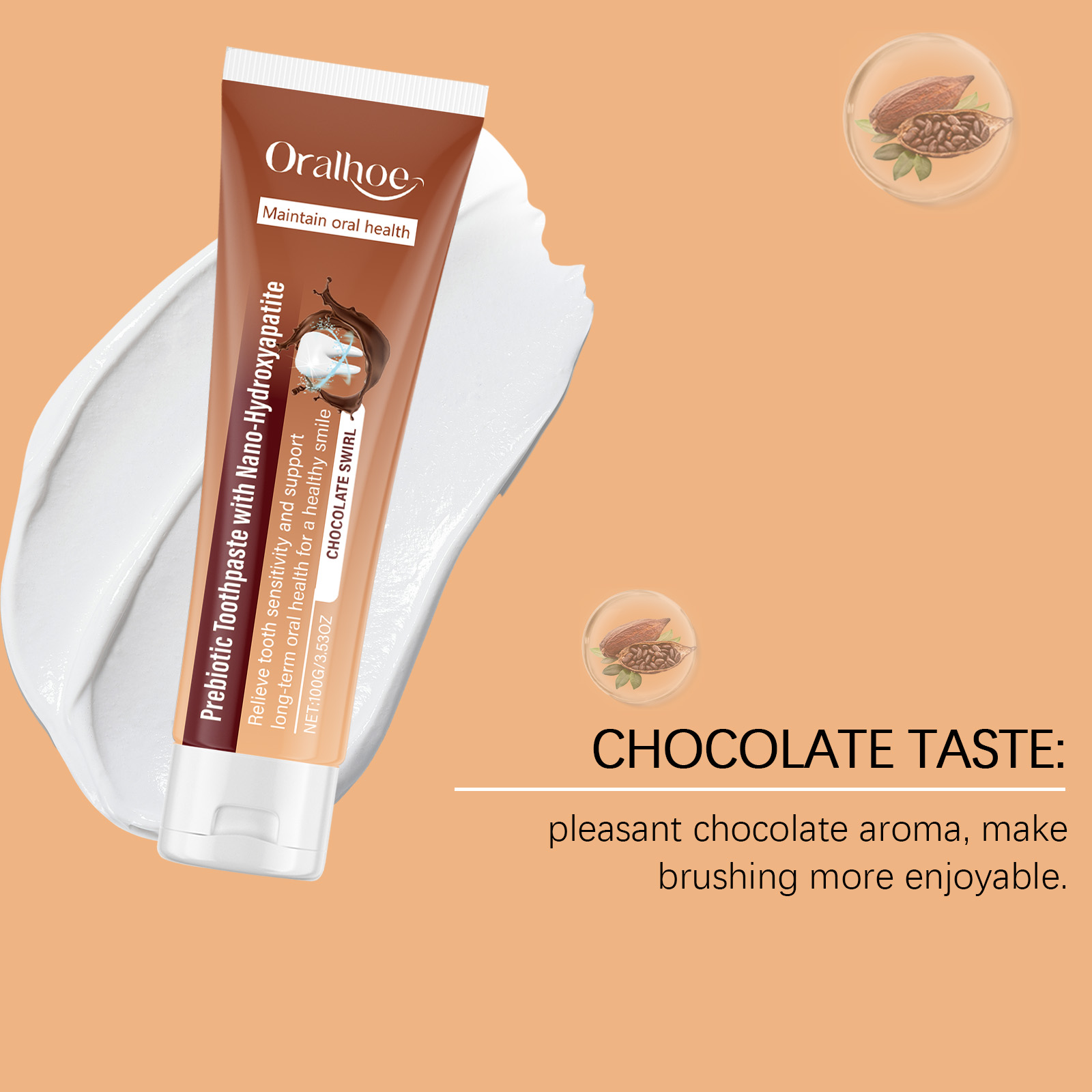 我们的巧克力味牙膏含有去离子水、碳酸钙。它可以有效去除口腔异物,保持口感清新。长期使用,美白牙齿,恢复白皙的笑容。它的使用方法很简单:将牙刷弄湿,有在牙刷上涂上适量的牙膏,用牙刷轻刷所有牙齿表面2-3分钟,然后用清水漱口。并且可以在日常饮食中有效抵御蛀牙的风险。