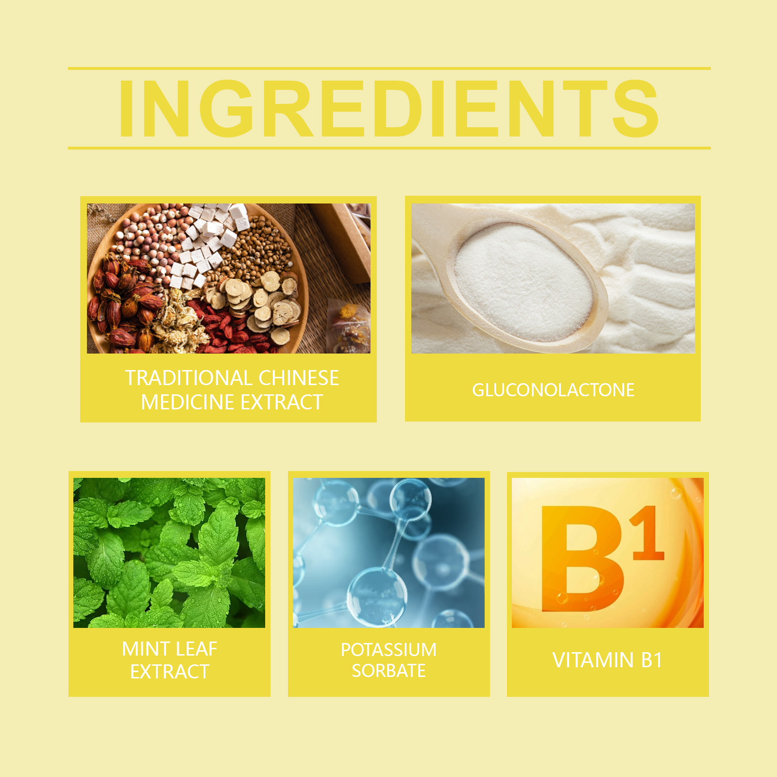 薄荷提取液、中药提取物、葡萄糖酸内脂