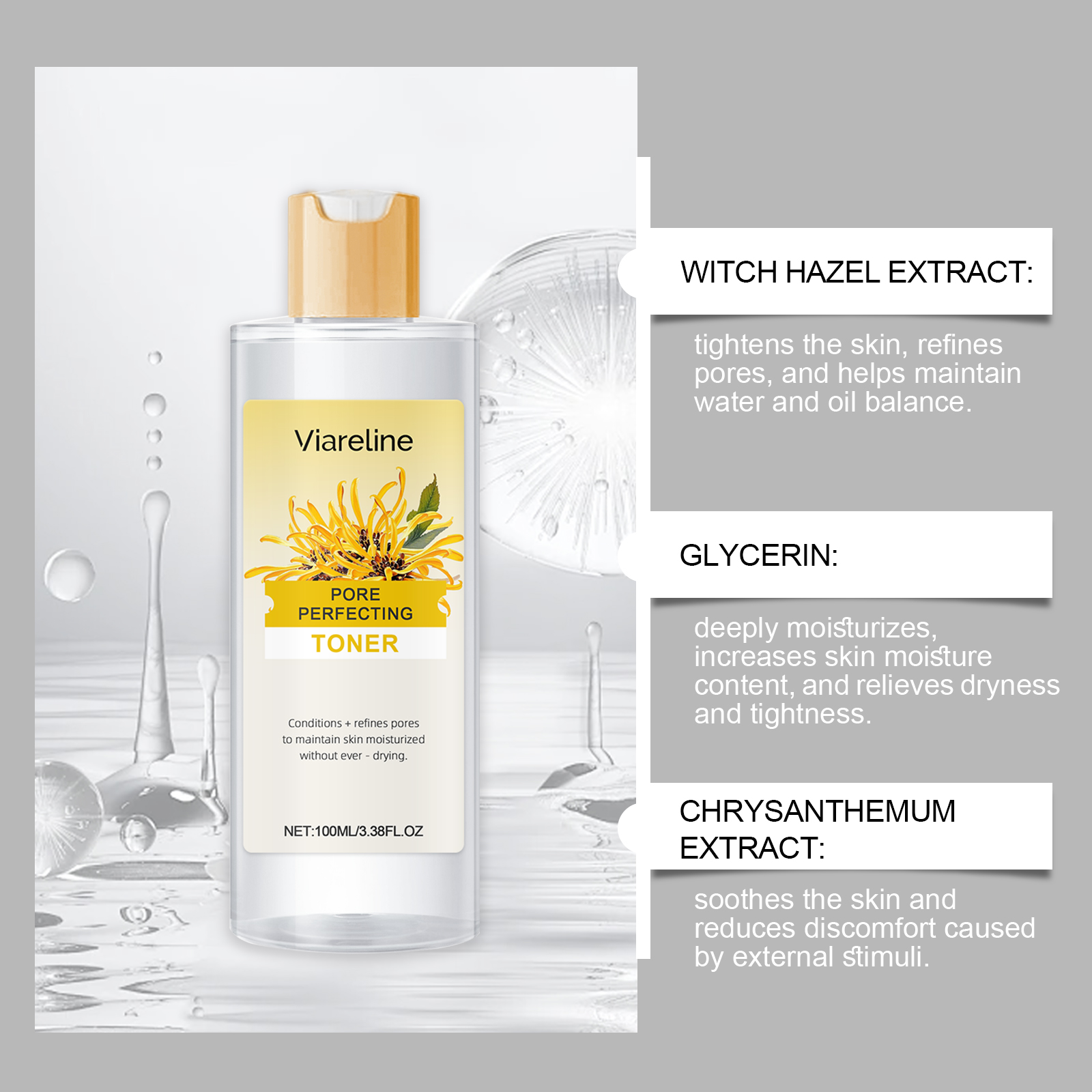 我们的金缕梅保湿爽肤水含有甘油、金缕梅提取物。它可以帮助肌肤保持充足的水分,减少干燥引起的紧绷感。舒缓外界刺激,改善皮肤状况,增强皮肤舒适度。它的使用方法很简单:清洁面部皮肤并保持干燥。取适量本品,均匀涂抹于面部肌肤上。轻轻按摩以完全吸收。并且可以用后肌肤感觉光滑,显出细腻嫩滑的光泽。