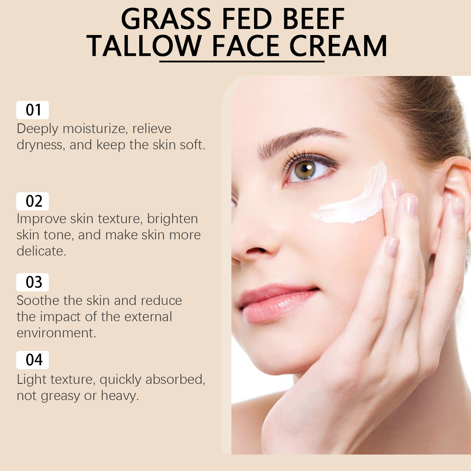 我们的牛脂保湿舒缓面霜含有三乙醇胺、牛脂、维生素A(视黄醇)。它可以帮助肌肤锁住水分,减少干燥,保持肌肤水润舒适。它的使用方法很简单:清洁你的脸。取适量本品均匀涂抹于面部。轻轻按摩,以促进吸收。并且可以增强肌肤的光滑度,使肌肤更加细腻,并呈现均匀半透明的光泽。