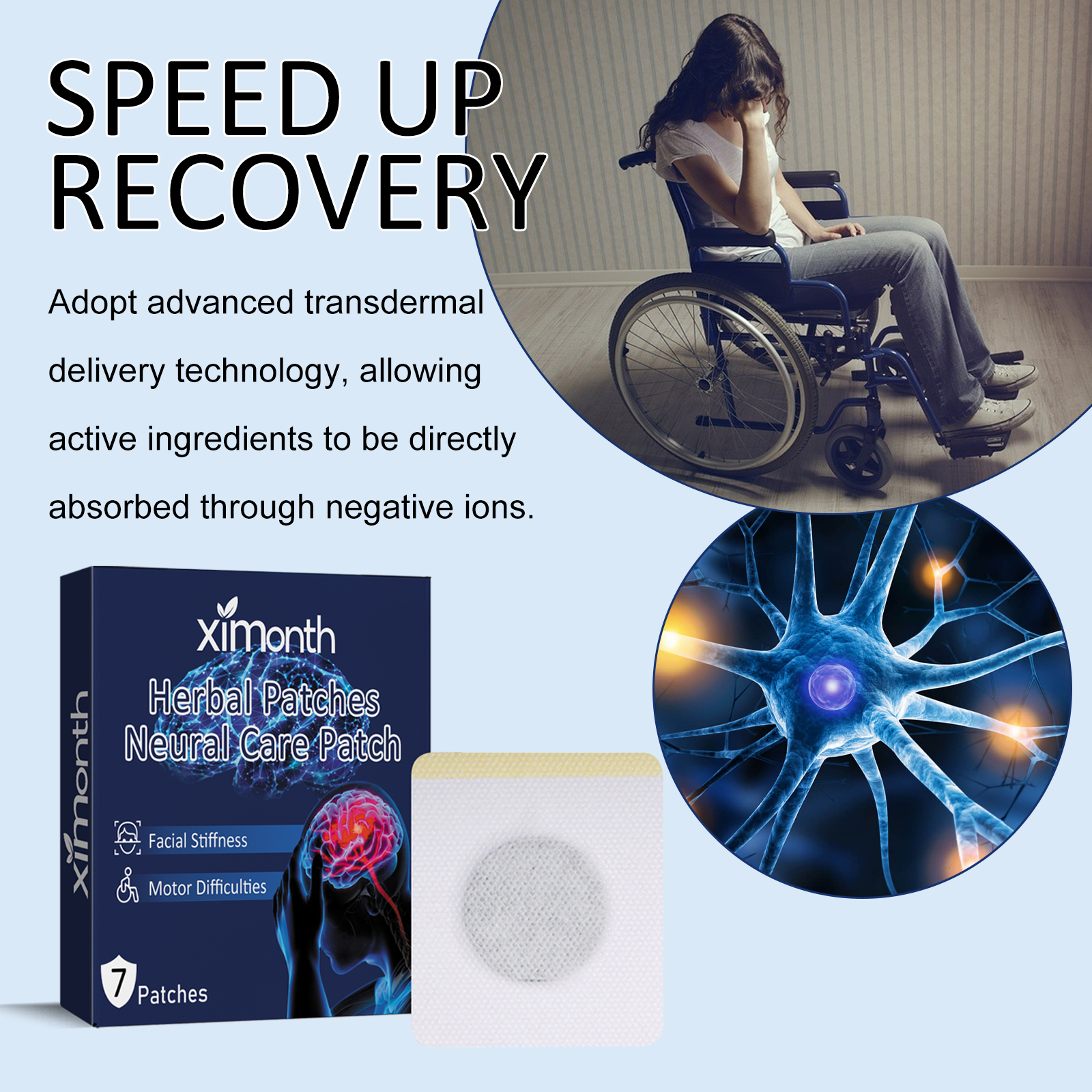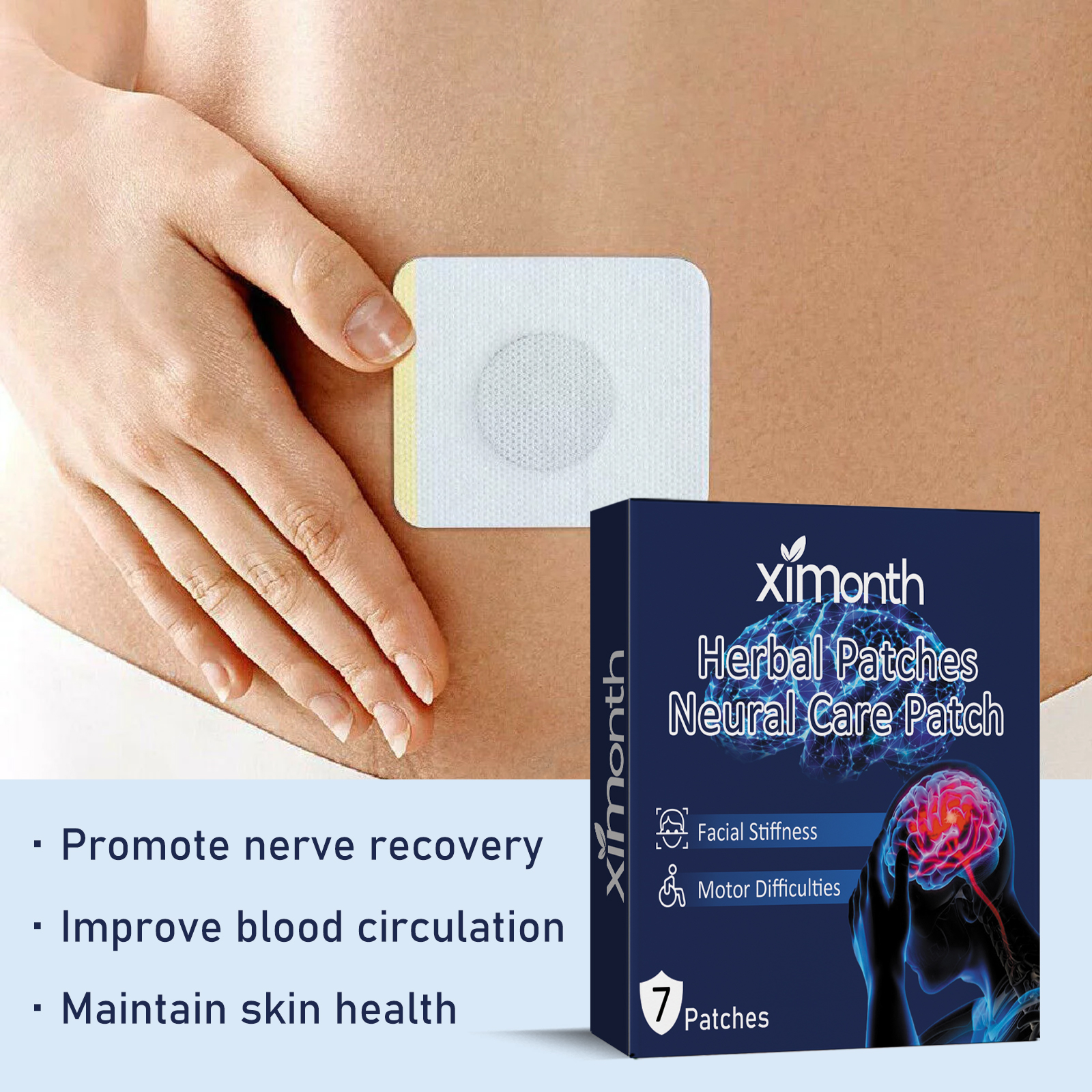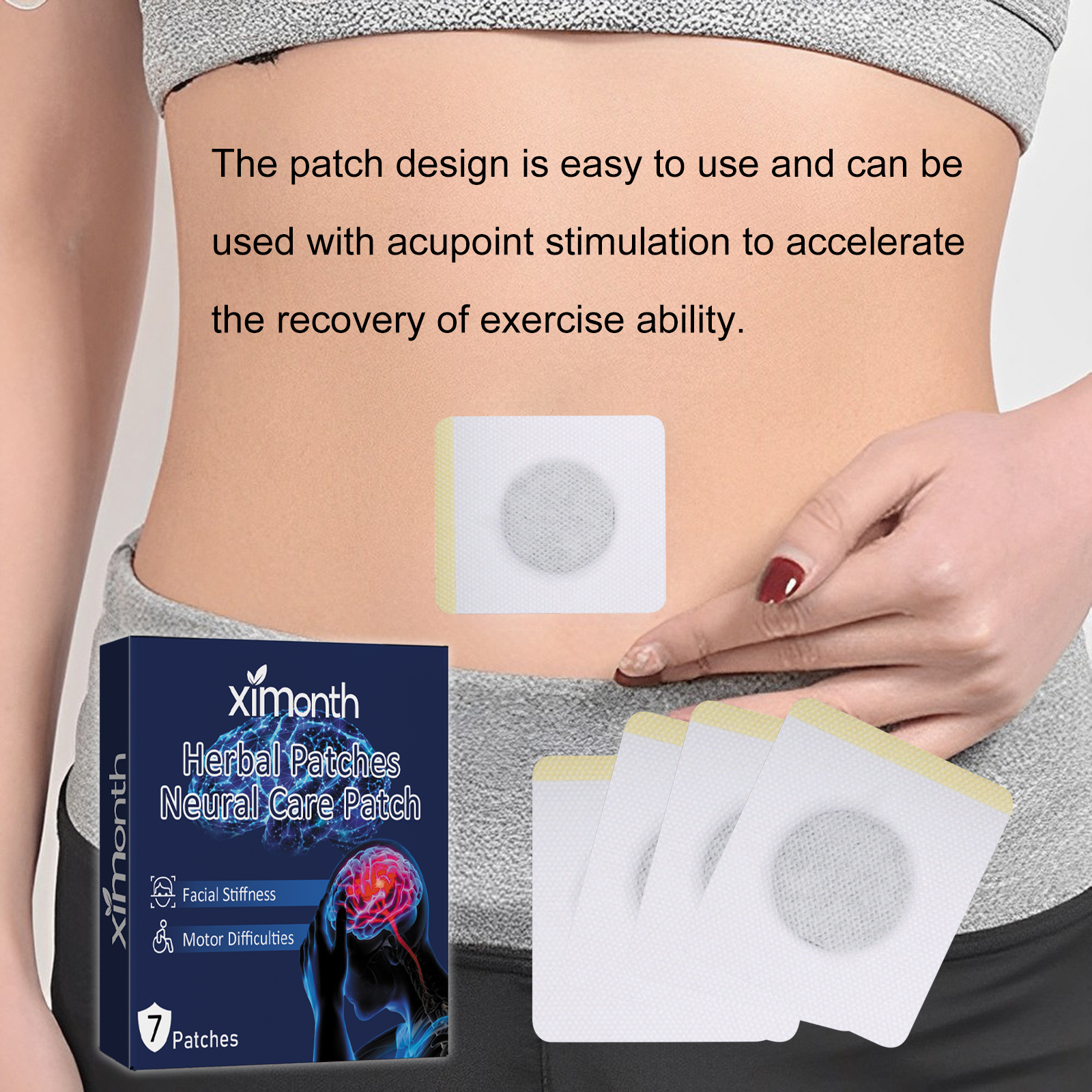 我们的草药身体护理贴片含有积雪草提取物、红景天提取物、人参提取物。它可以通过穴位刺激,调节神经系统,减少麻痹和僵硬,加速运动能力的恢复,帮助人们恢复正常活动。它的使用方法很简单:可以选择将贴片贴在肚脐眼上的神阙穴、额侧的太阳六、或背部的心俞穴上,贴6一8小时左右即可。可以促进神经恢复,改善血液循环,保持皮肤健康。