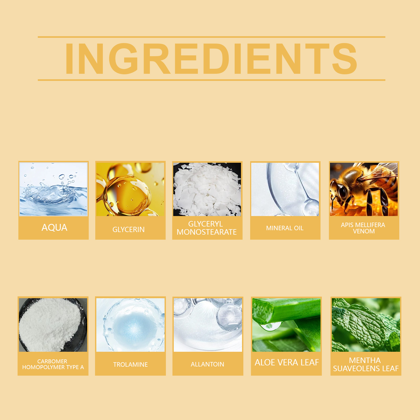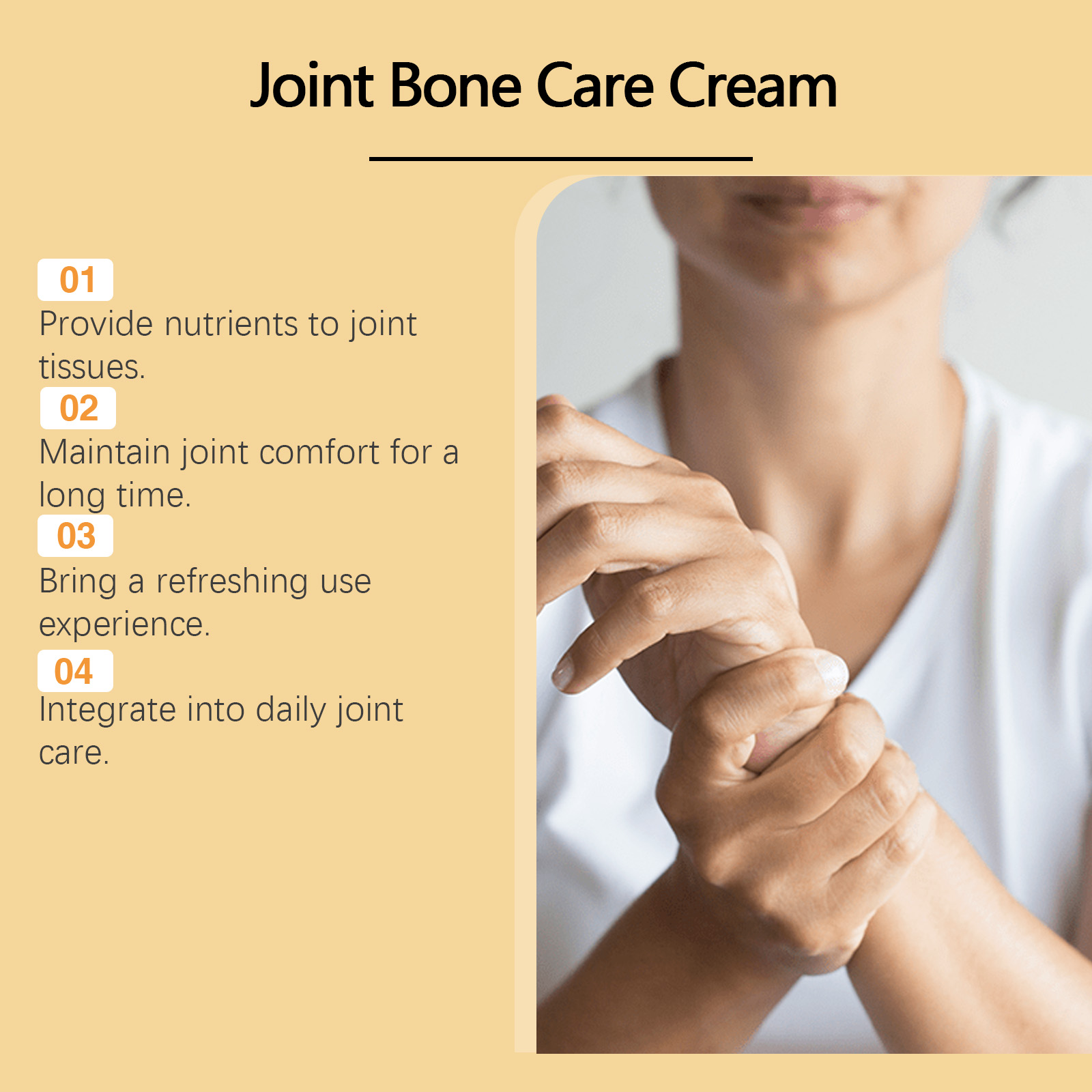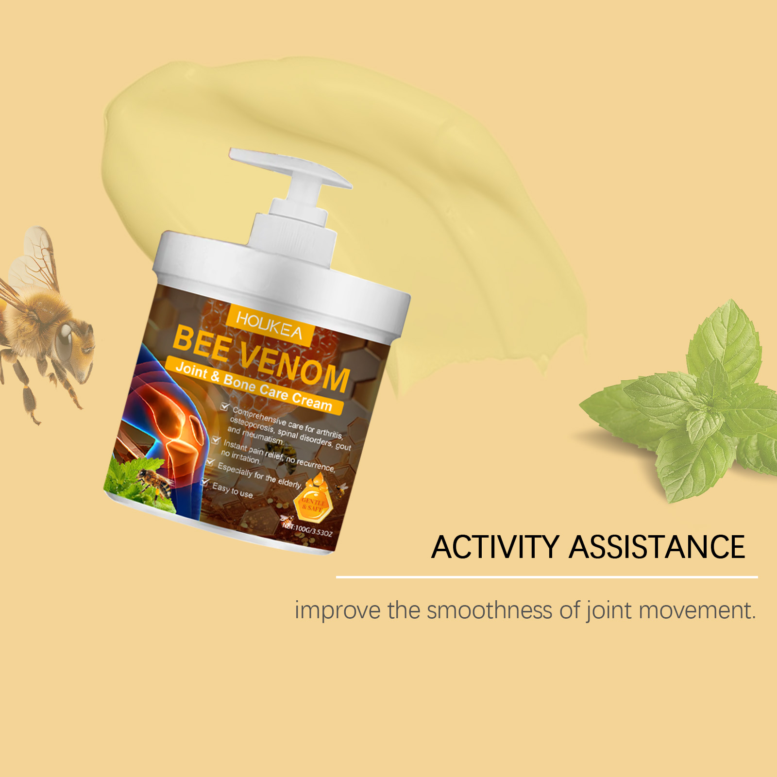 我们的蜂毒关节护理霜含有蜂毒、薄荷叶。它可以温和缓解关节不适,帮助关节恢复灵活性。它的使用方法很简单:清洁并干燥皮肤,取适量本品均匀涂抹于关节疼痛的患处,并轻轻按摩至吸收。并且可以促进关节弹性的逐渐恢复。