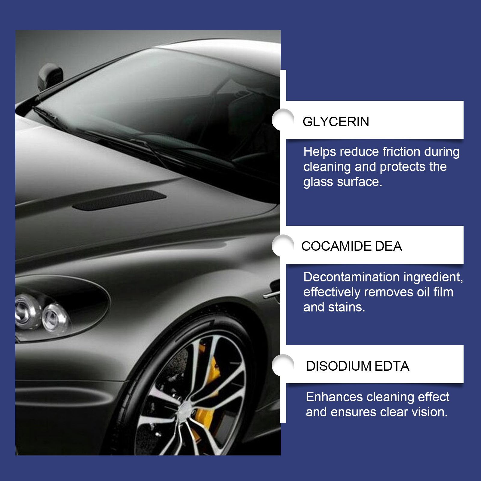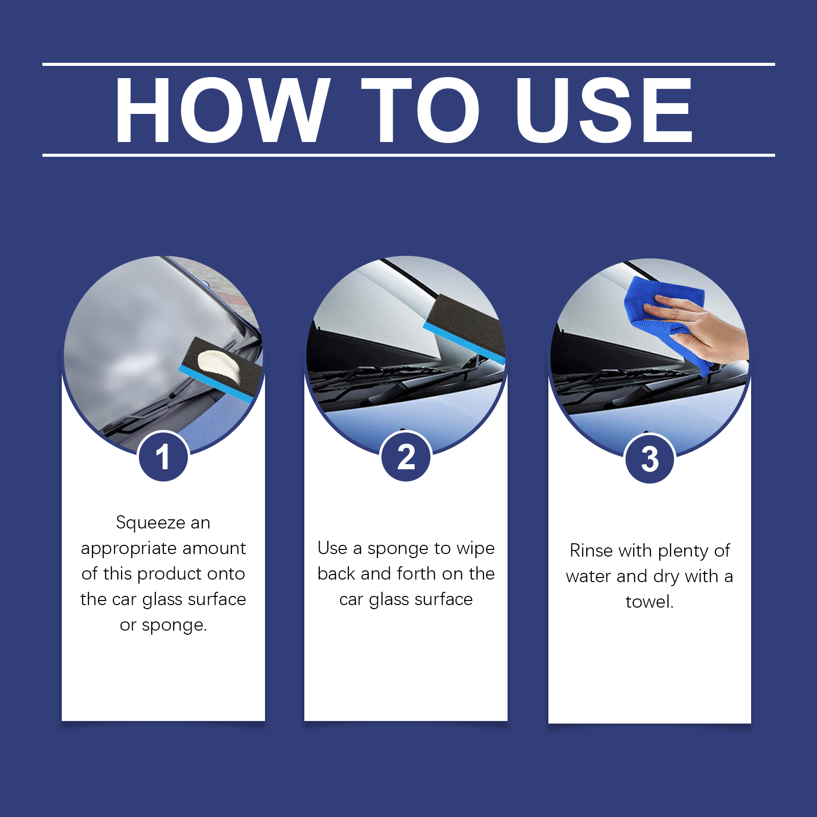 我们的汽车玻璃油膜去除膏含有月桂醇聚醚 -7、十二烷基硫酸钠。它可以有效去除玻璃上的污垢,改善行车条件和视野,提高行车安全性。它的使用方法很简单:将适量本品挤压在汽车玻璃表面或海绵上。用海绵来回擦拭汽车玻璃表面,用大量冲洗后用毛巾擦干。并且它可以为玻璃提供保护层,清洗后的玻璃可以防雨、防水和防污。