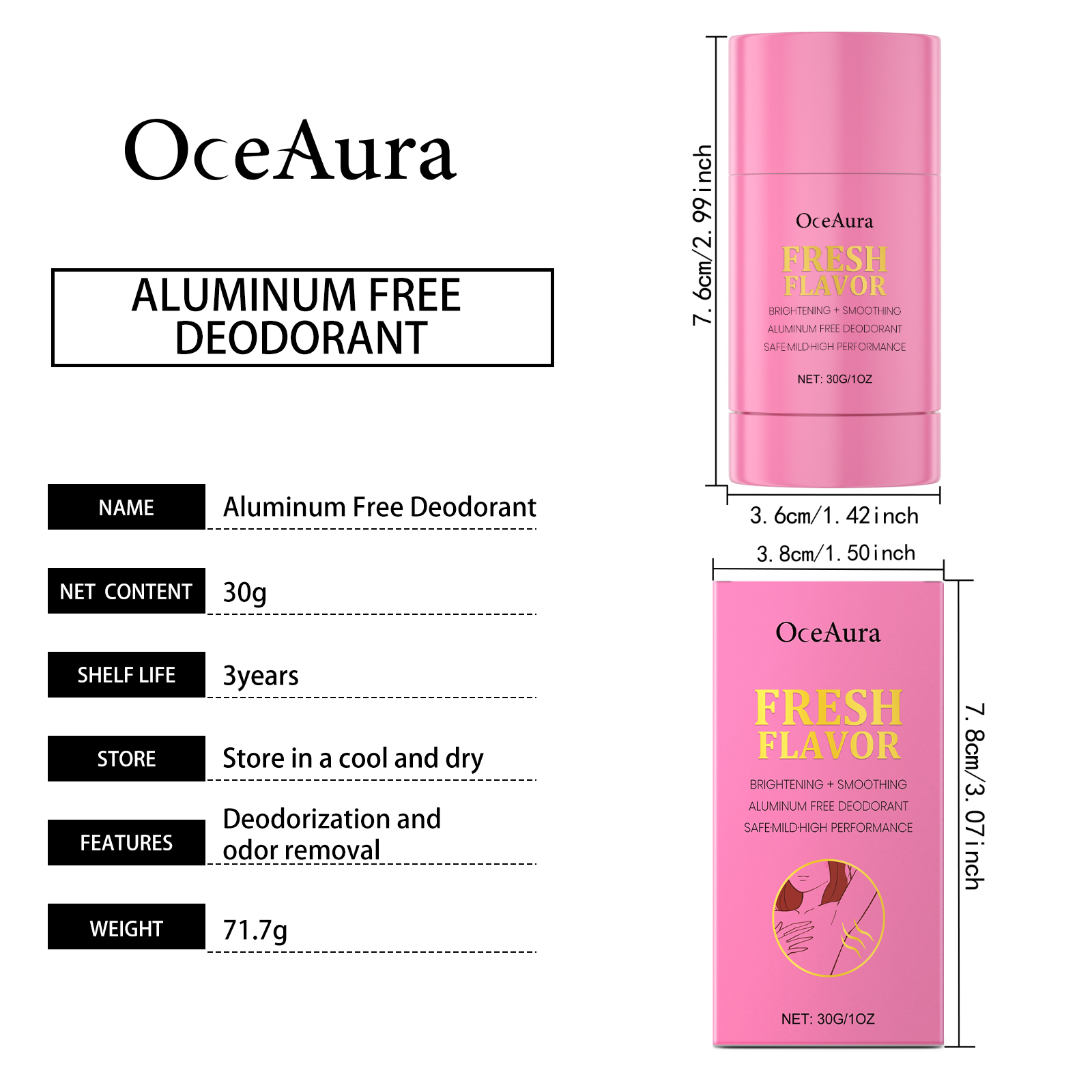 我们的腋下清洁护理棒含有生育酚(维生素E)、木瓜果实提取物。它可以提供水分,使腋下皮肤更光滑、更明亮。它的使用方法很简单:清洁腋窝皮肤并保持干燥。翻转底部,直到露出一小块膏状物,然后轻轻地涂抹在腋下皮肤上,确保覆盖均匀等待干燥。并且可以去除腋下污渍和异味,不刺激皮肤。