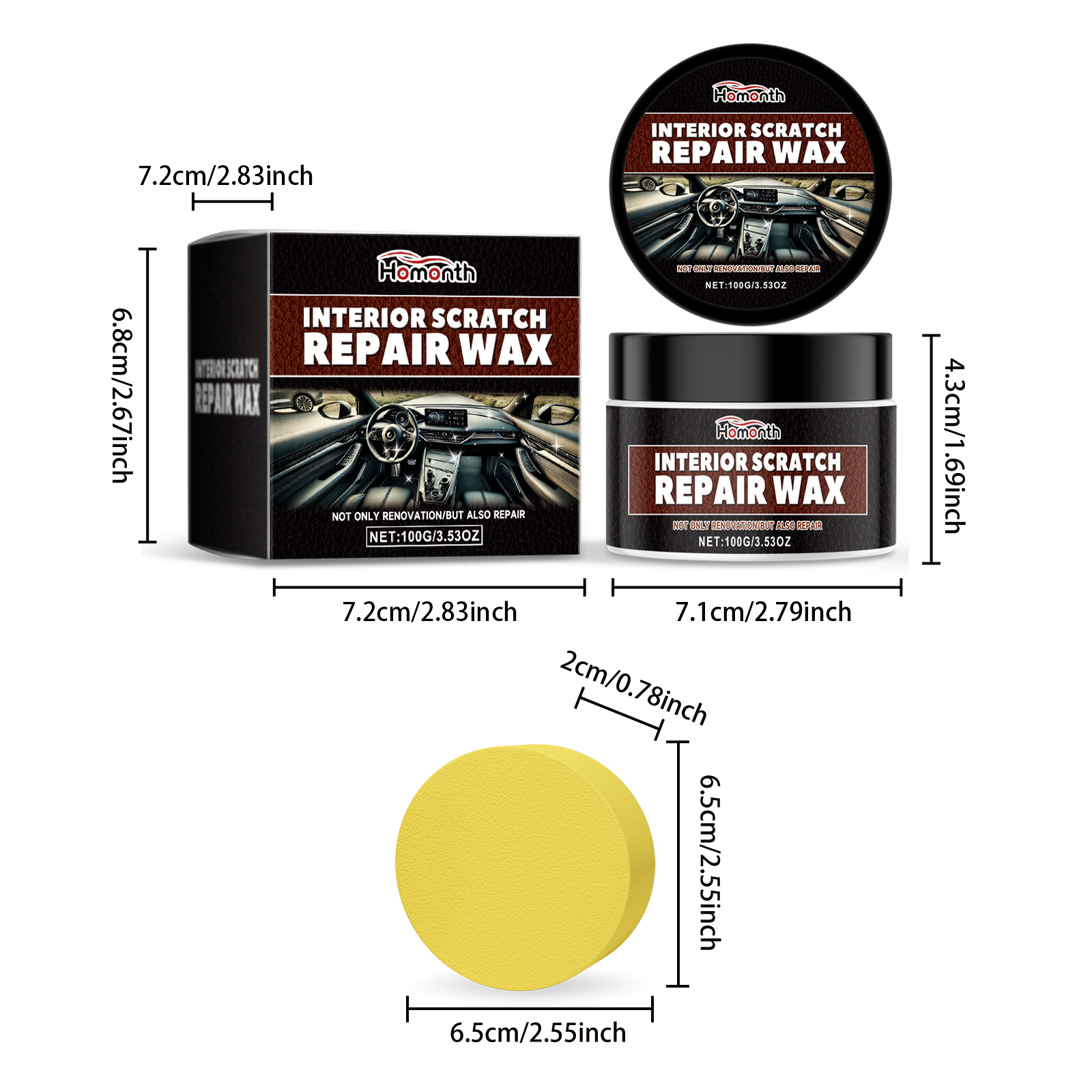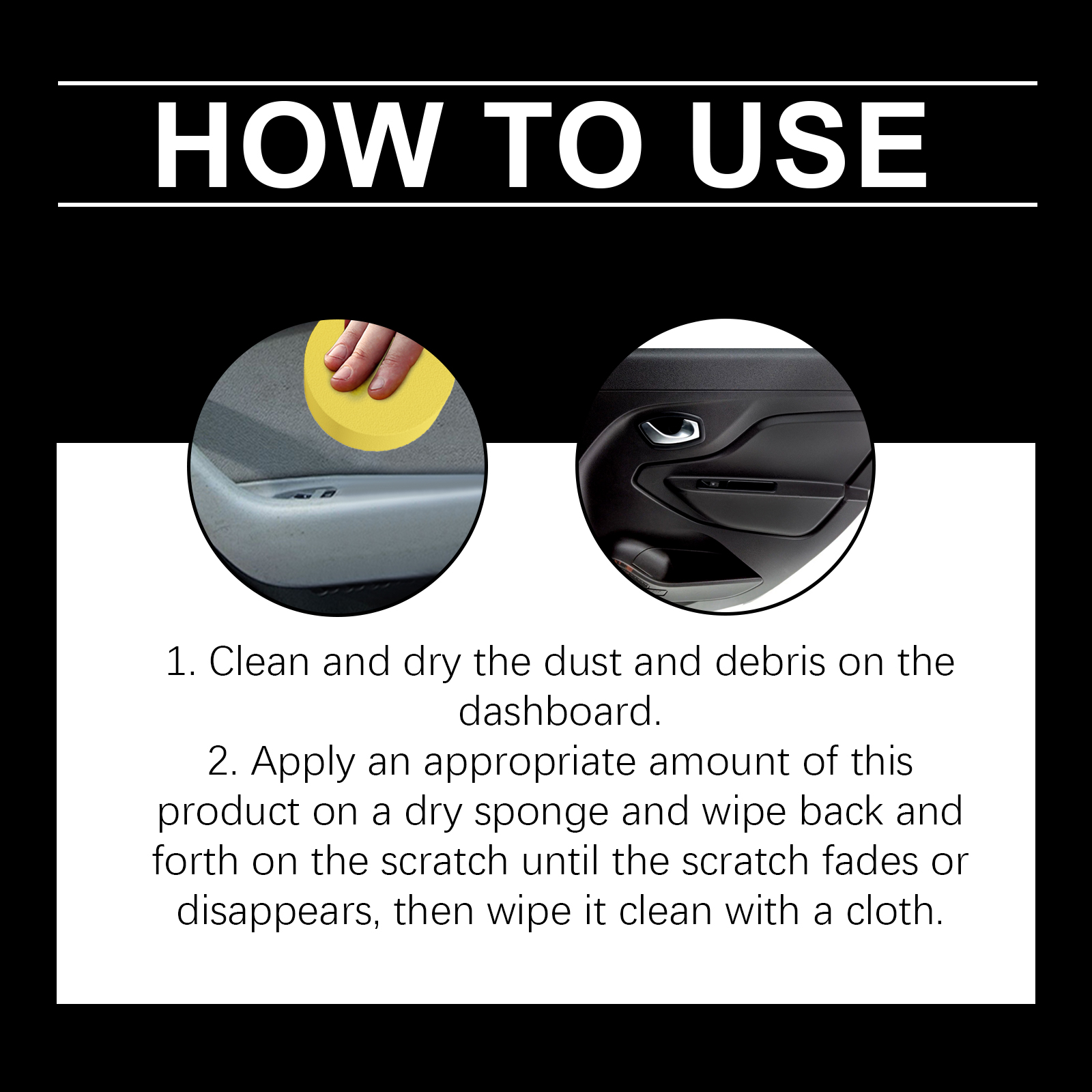 我们的汽车内饰划痕护理蜡含有十二烷基硫酸钠、羧甲基纤维素钠。它可以快速修复仪表板上的划痕,并将表面恢复到完美的光滑状态。它的使用方法很简单:1.清洁并擦干仪表板上的灰尘和碎片。2.将适量的该产品涂在干海绵上,然后在划痕上前后擦拭,直到划痕消退或消失,然后用布擦拭干净。并且适用于各种仪表板材料,包括塑料、合成材料等。