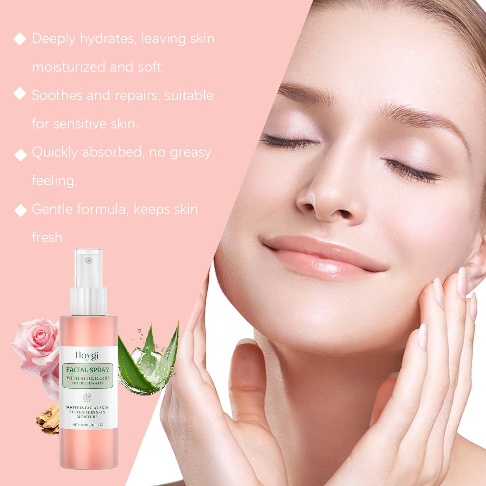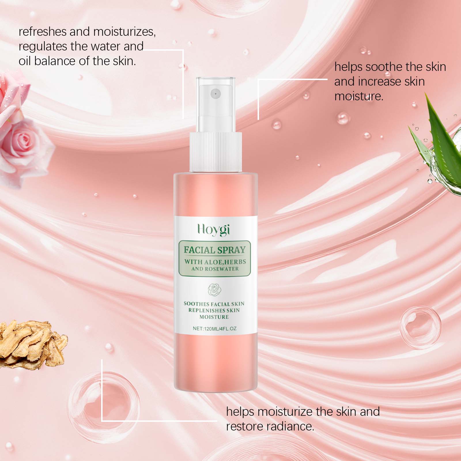 我们的玫瑰面部保湿喷雾含有甘油、芦荟提取物。它可以立即补充皮肤所需的保湿成分,保持肌肤滋润。有助于舒缓皮肤不适,恢复皮肤舒适感。它的使用方法很简单:清洁皮肤并保持干燥,将适量本品喷在脸上。轻轻按摩直至吸收。并且可以全天保湿,全天提供水分和营养,以维持皮肤状况。