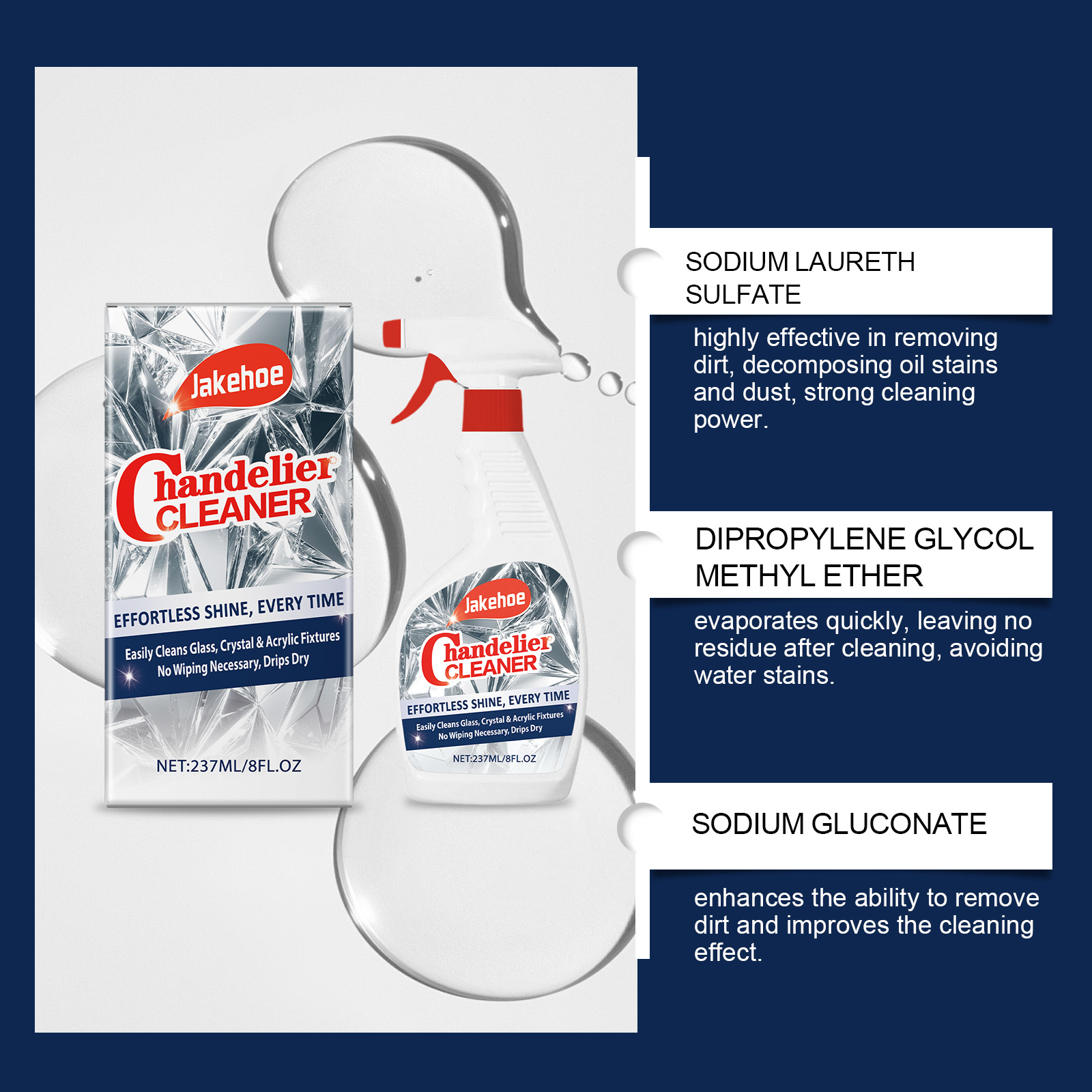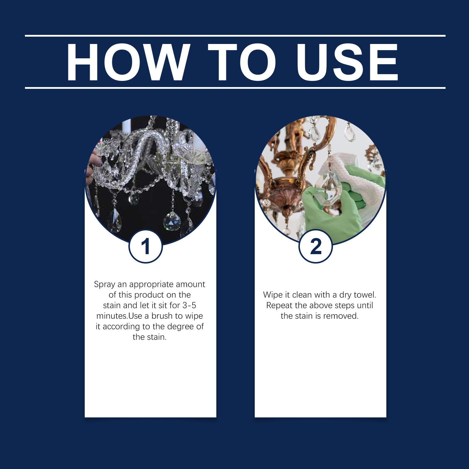 我们的吊灯清洁剂含有月桂醇聚醚硫酸酯钠、脂肪醇聚醚-9二丙二醇甲醚。它可以易于清洁,只需喷洒我们的强力配方将完成清洁工作,使您的灯具闪闪发光。每次使用都能保持无条纹的光泽,非常适合保持水晶、玻璃和黄铜表面的美丽,不会留下残留物或污渍。它的使用方法很简单:将适量的该产品喷在污渍上,让其停留3-5分钟。根据污渍的程度,用刷子擦拭。用干毛巾擦干净。重复上述步骤,直到污渍被清除。并且可以有效去除污垢,对您精致的灯具温和,它是清洁家庭的理想选择。