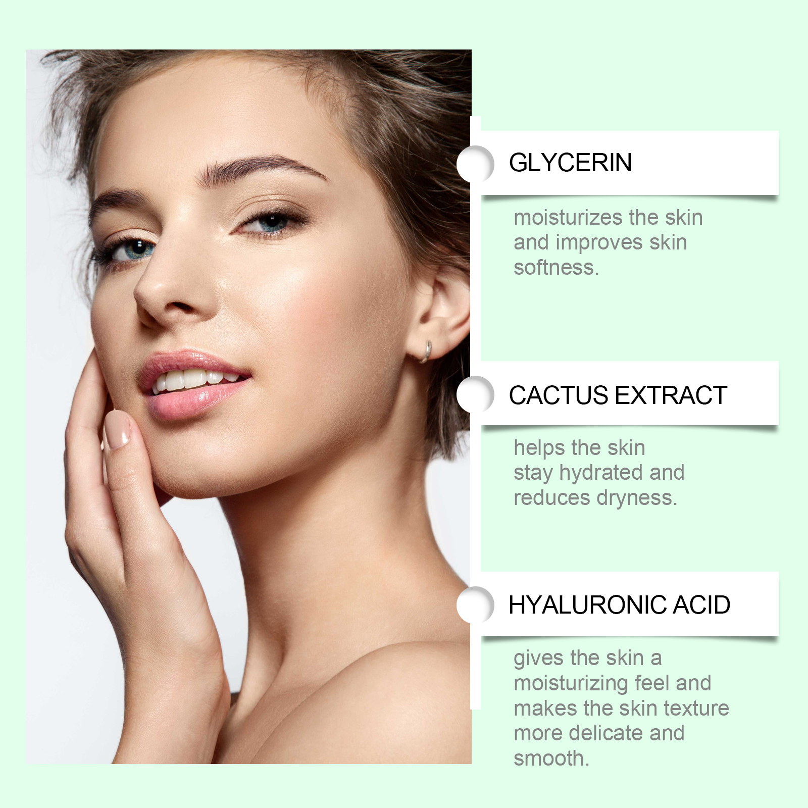 我们的肌肤保湿霜含有仙人掌提取物、透明质酸、薄荷叶。它可以在涂抹后保持皮肤湿润,减少干燥和紧绷感。它的使用方法很简单:清洁并擦干你的皮肤。将适量的本品均匀涂抹于面部和身体,轻轻按摩直至吸收。并且可以帮助皮肤展现透明光泽,使皮肤质地更加细腻。