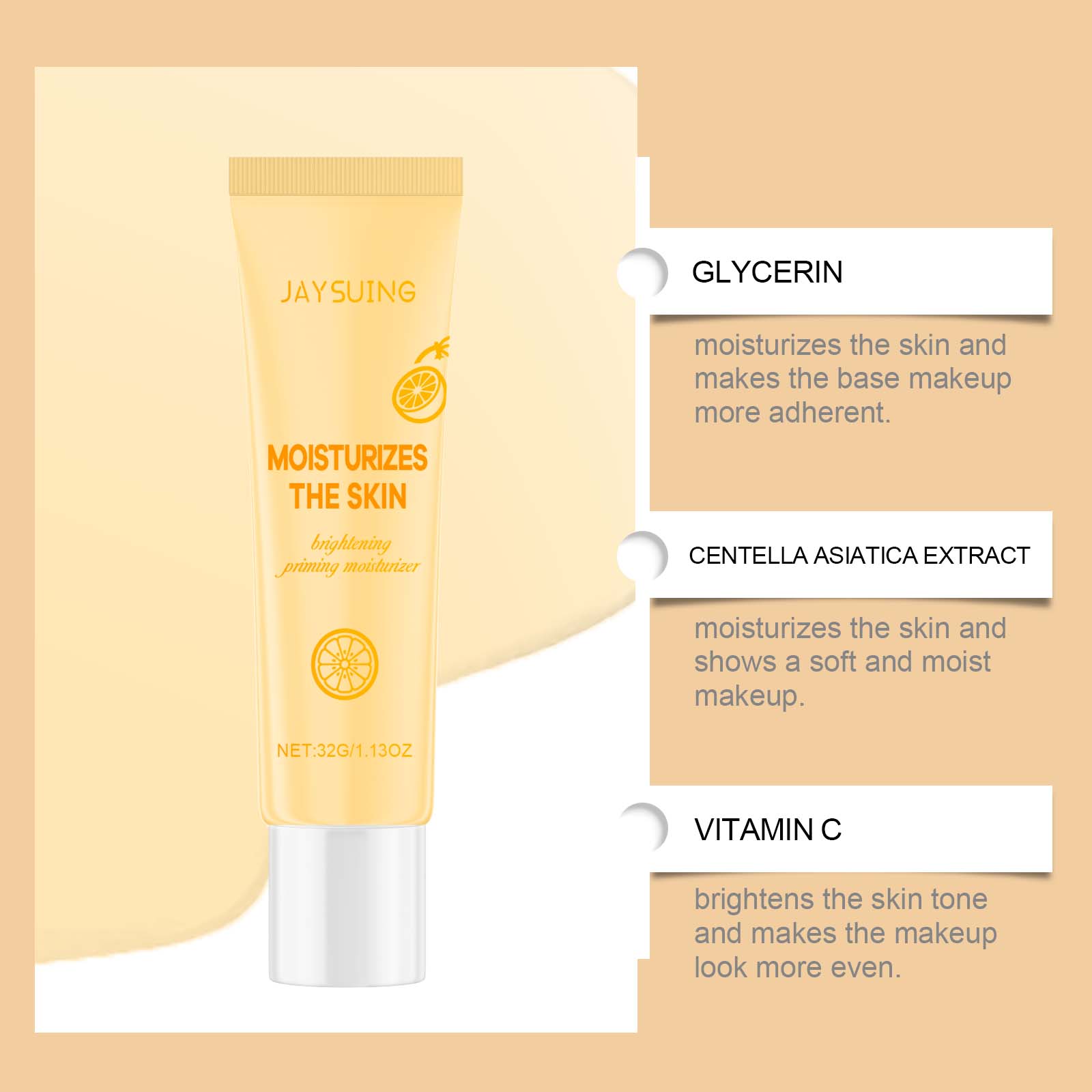 我们的保湿打底霜含有积雪草提取物、维生素C(抗坏血酸)。它可以均匀的肤色,使妆容更加光彩照人。它的使用方法很简单:清洁并擦干你的皮肤。将产品均匀涂抹在脸上。轻轻按摩直至吸收。并且可以创造细腻的化妆效果,使妆容更加柔和。