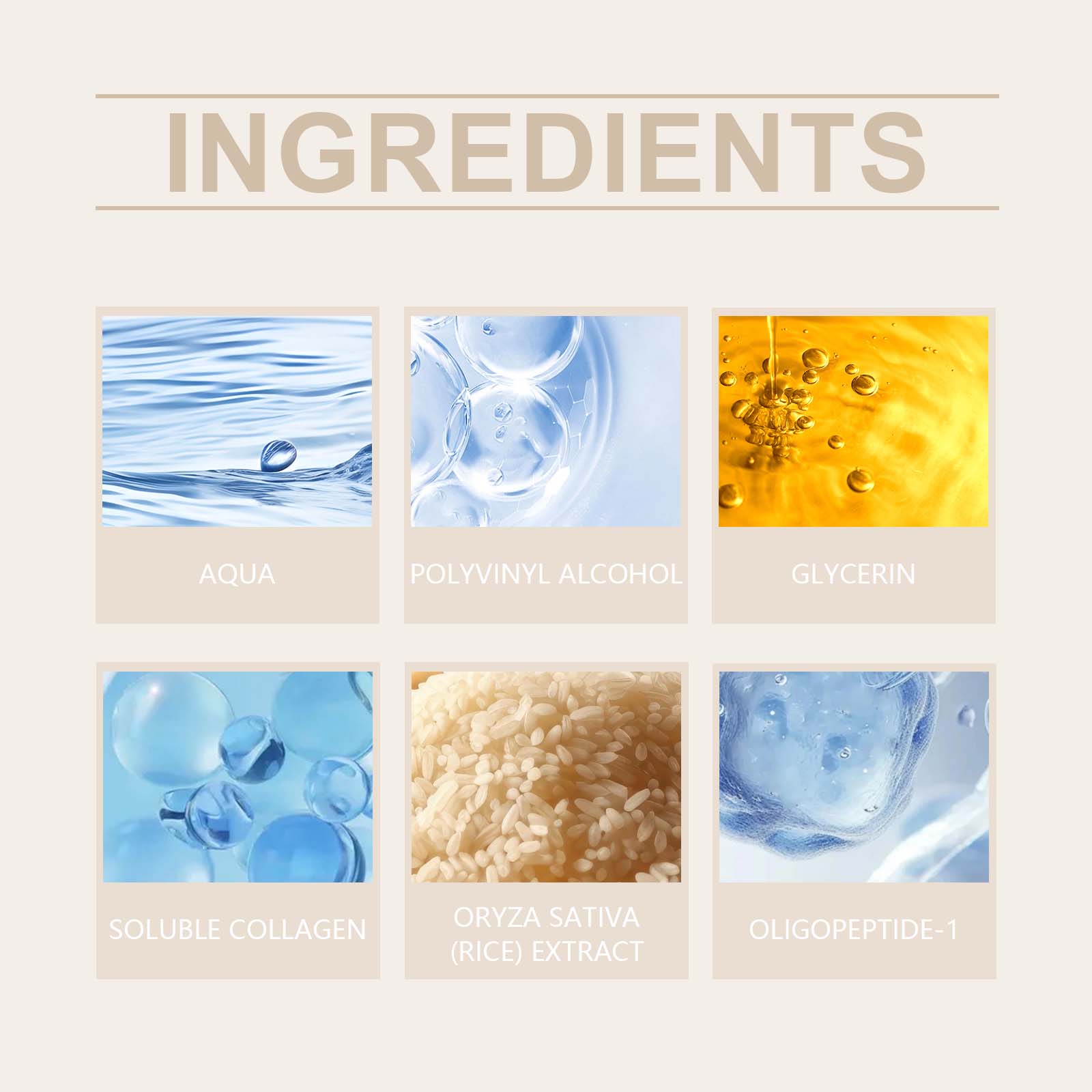 我们的胶原蛋白面膜含有聚乙烯醇、甘油、可溶性胶原。它可以提供皮肤所需的湿度,保持皮肤全天保湿,缓解干燥。它的使用方法很简单:保持面部干燥,然后均匀地将适量本品涂抹在面部皮肤上。等待15分钟后,轻轻撕下面膜,用温水洗净。可以用工具使用。并且可以通过增强皮肤弹性,使皮肤看起来更紧致、更光滑。