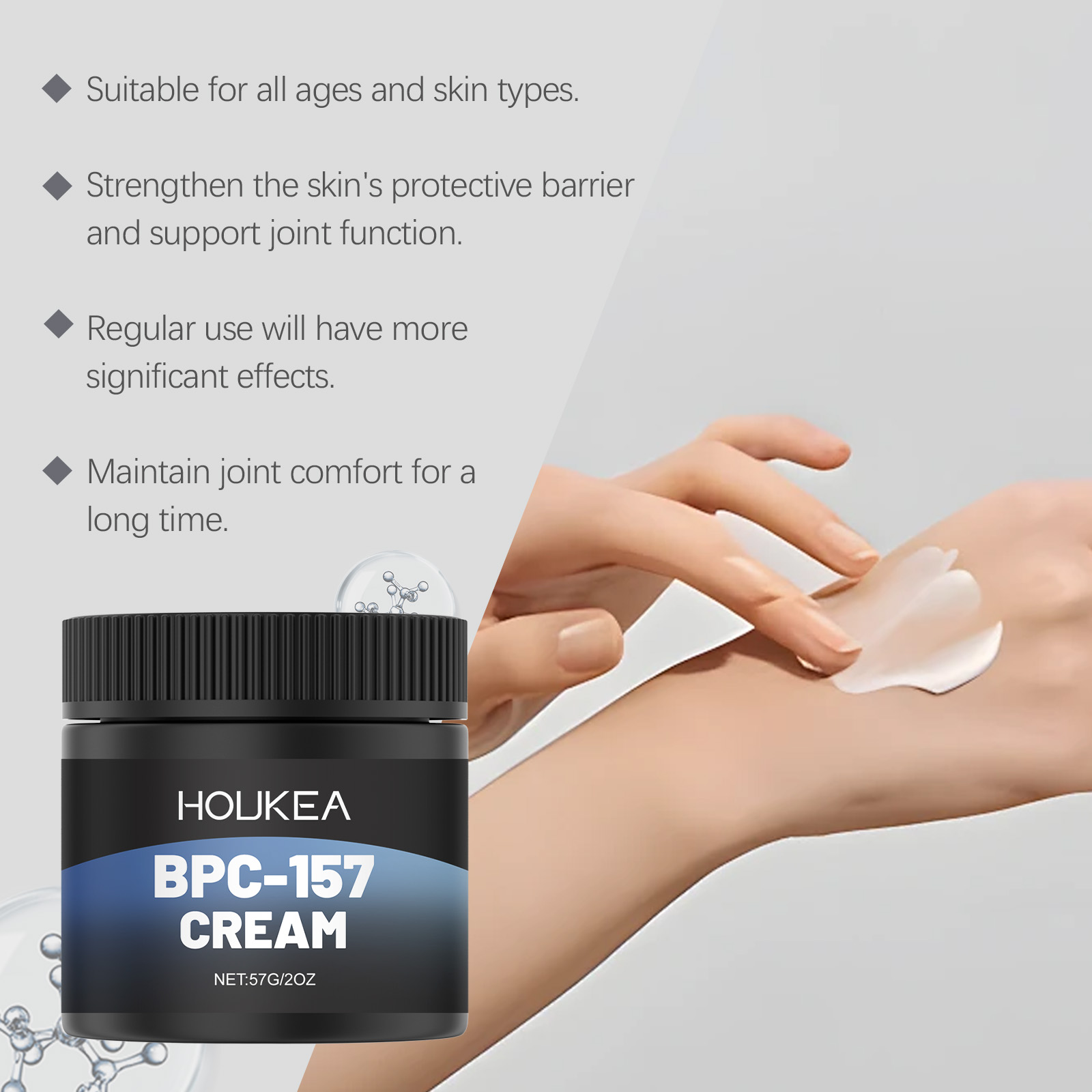 我们的关节滋养霜,由卡波姆、三乙醇胺、尿囊素精心调配而成。专为提供持久的舒适和持久的缓解设计。使用方法极为便捷:清洁干燥的皮肤,将适量本品涂抹于患处,按摩至吸收。并且可以提供清凉感并舒缓肌肤。