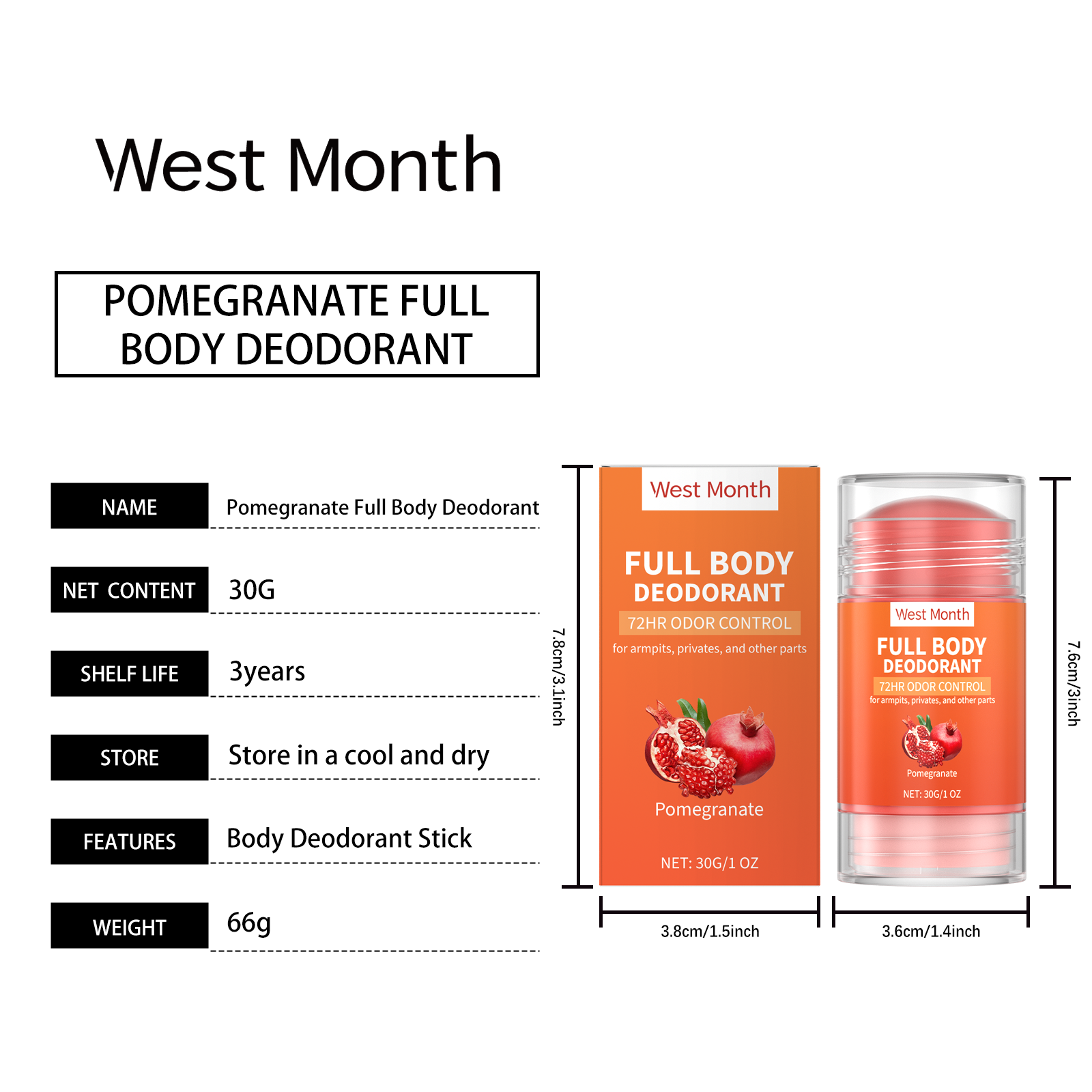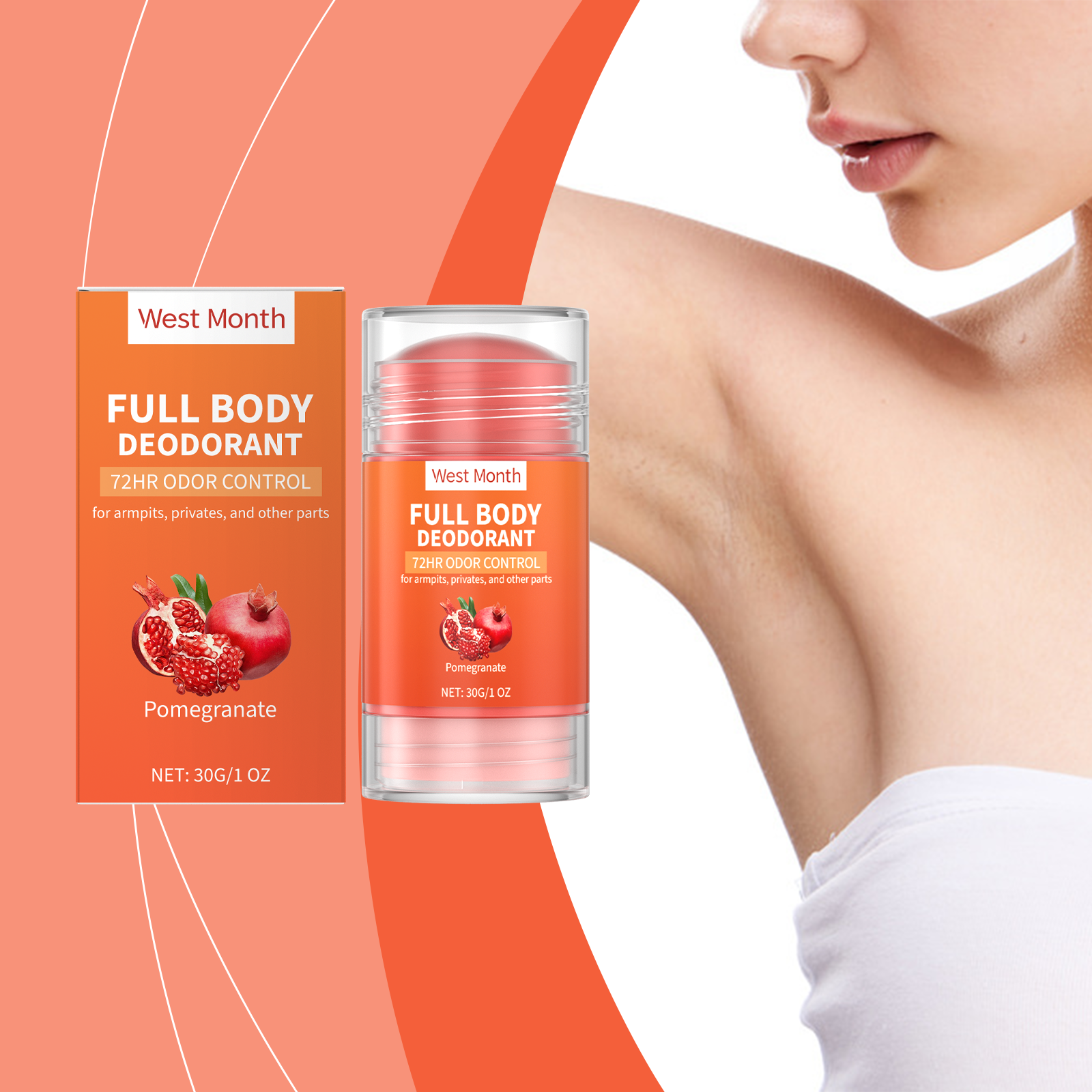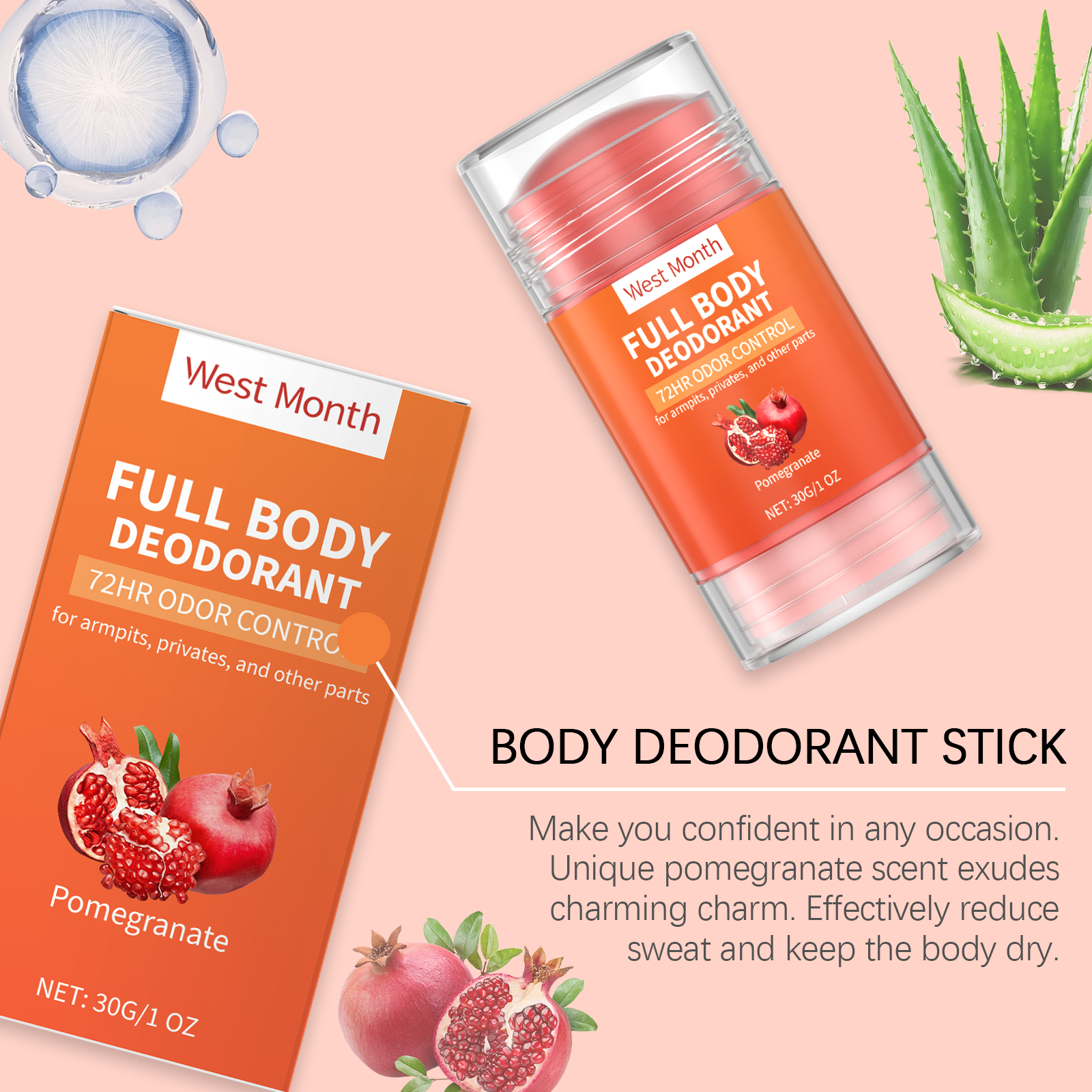 我们的身体石榴香体棒,由迷迭香叶油、库拉索芦荟提取物精心调配而成。专为快速去除体臭设计。使用方法极为便捷:清洁并擦干你的皮肤。旋出适量本品,均匀涂抹在腋下皮肤上。等待其吸收。并且可以整天持久留香。