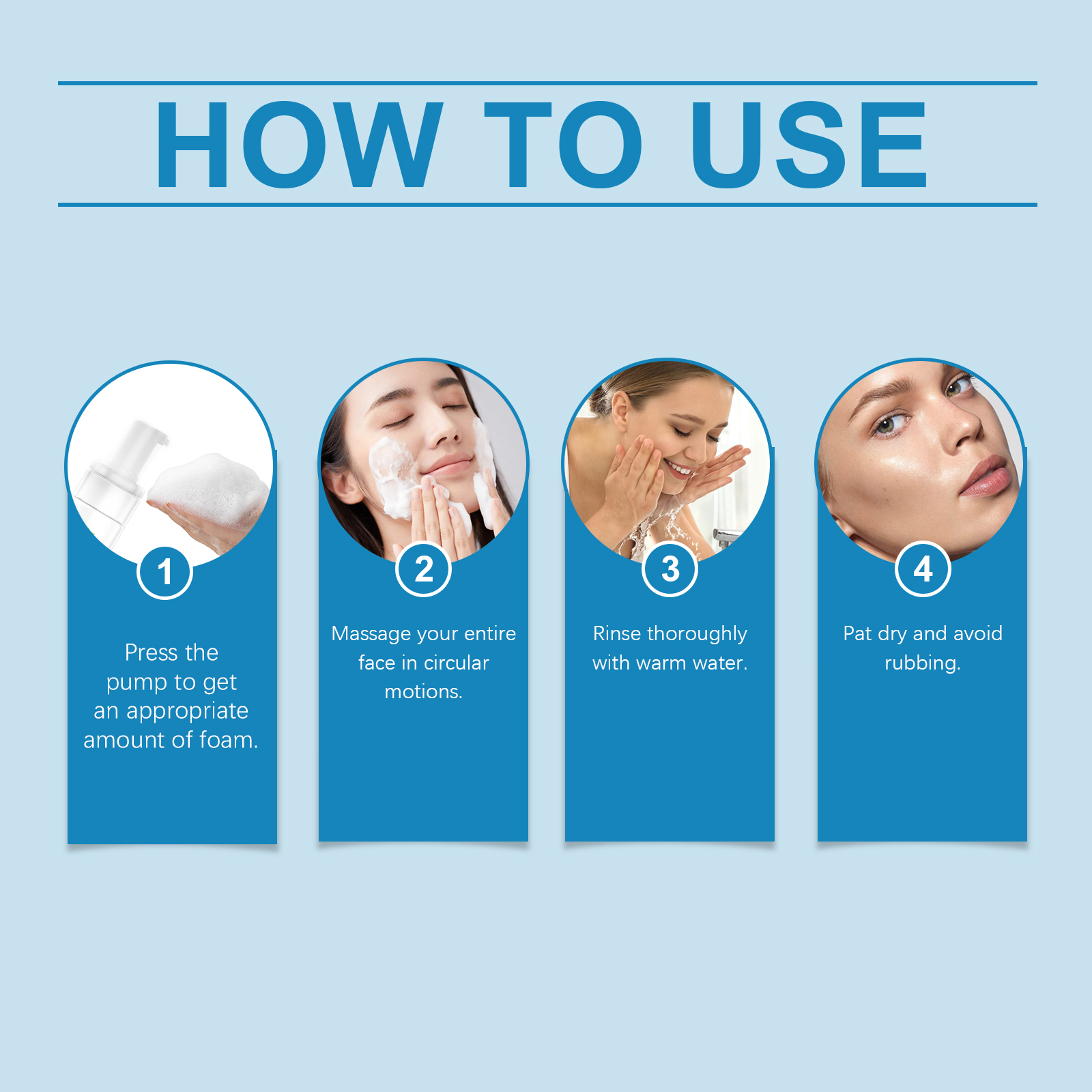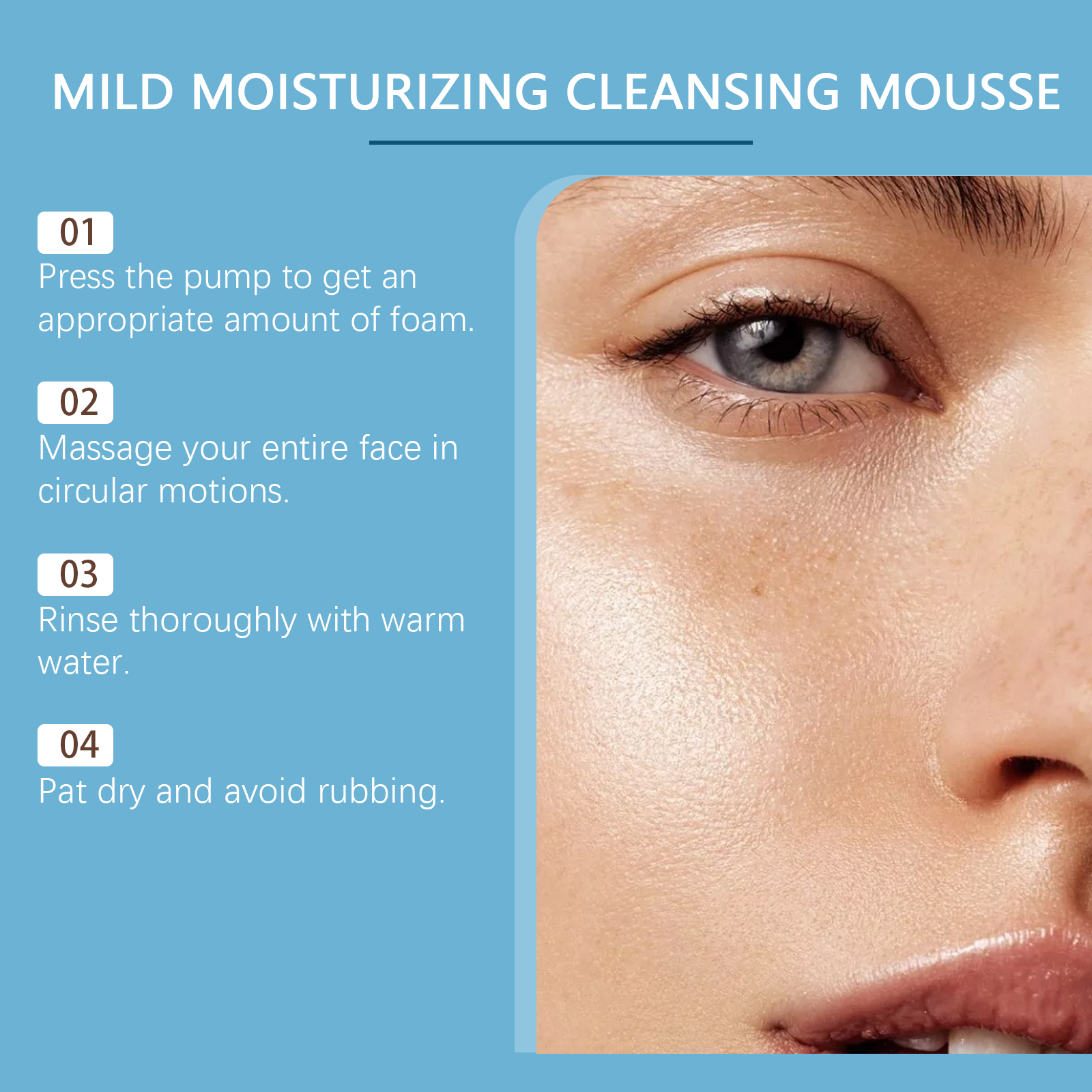 我们的温和保湿洁面慕斯,由甘油、泛醇、积雪草苷精心调配而成。专为深层清洁,持久锁住水分设计。使用方法极为便捷:按压泵以获得适量的泡沫。以打圈的方式按摩整个脸部。用温水彻底冲洗。拍干并避免摩擦。并且可以改善皮肤透明度,焕发自然光彩。