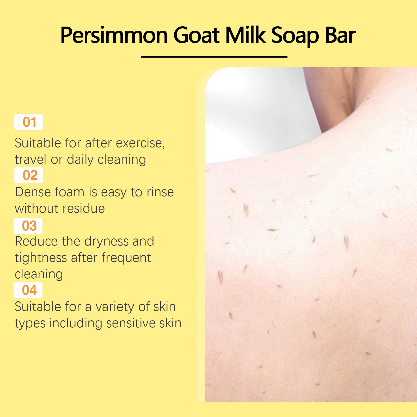 我们的柿子羊奶润肤皂,由山羊奶、柿子提取物精心调配而成。专为提供滋养脂质,使质地柔软设计。使用方法极为便捷:用双手或海绵将皮肤弄湿并起泡;以圆形运动按摩30秒;用温水彻底冲洗;使用后存放在干燥通风的地方。并且可以适合各种肤质,包括敏感肌肤。