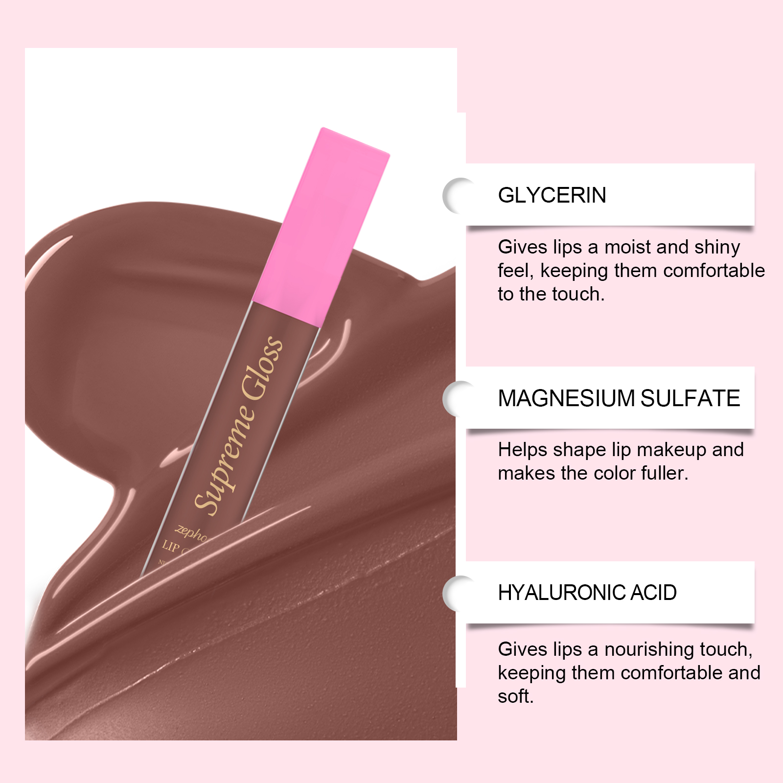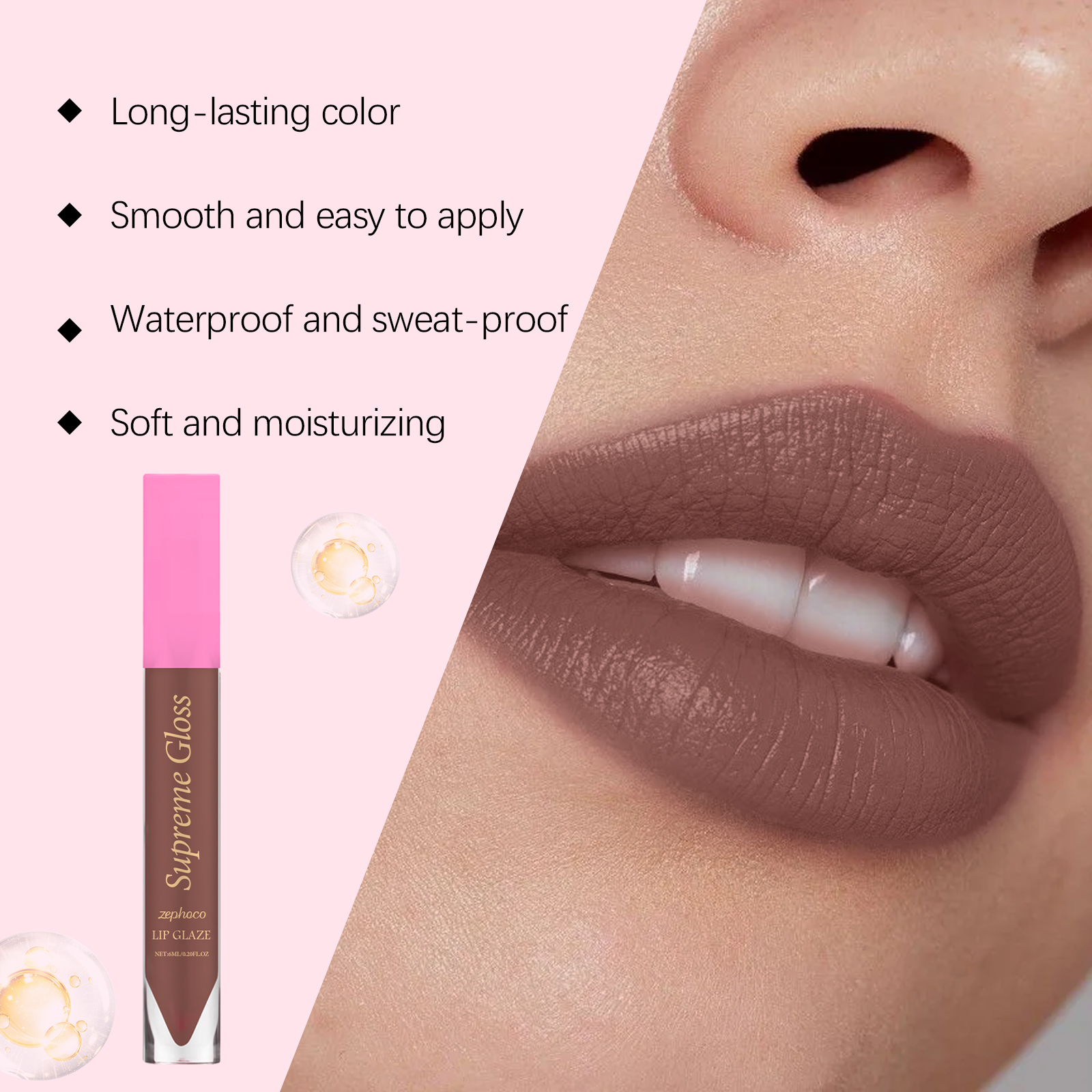我们的滋养唇釉(可可色),由硫酸镁、透明质酸精心调配而成。专为创造均匀明亮的唇色设计。使用方法极为便捷:清洁嘴唇并保持干燥。将适量本品均匀涂抹于唇部。轻轻均匀地涂抹。并且可以为嘴唇提供滋养的触感,保持其舒适和柔软。