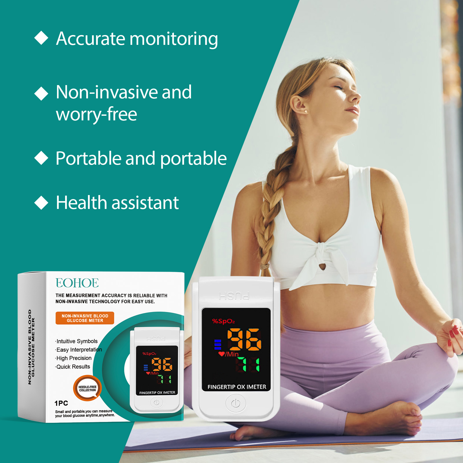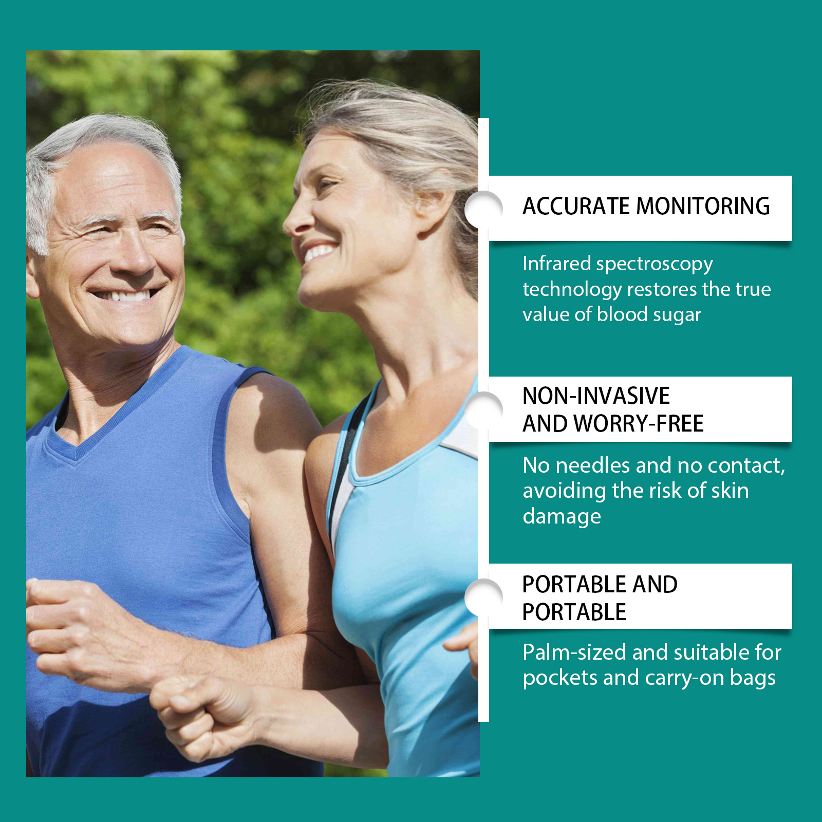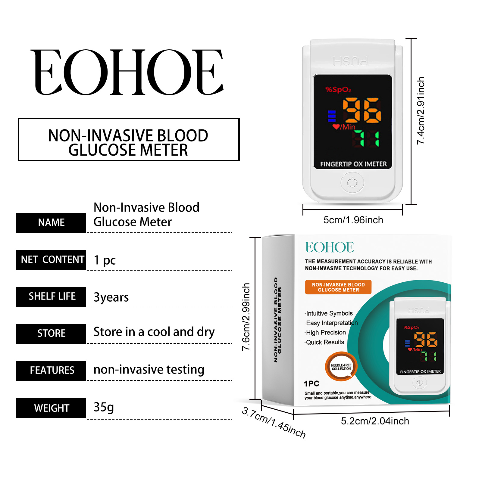 我们的身体护理仪,由塑料精心调配而成。专为实时监测血糖水平,协助健康管理设计。使用方法极为便捷:清洁并干燥你的指甲和周围的皮肤,安装两个自备的AA电池,打开开关激活产品,将食指暴露在光线下约5分钟,然后读取屏幕上的数字。并且可以无痛且非侵入性的测试,以减少日常监测的风险。