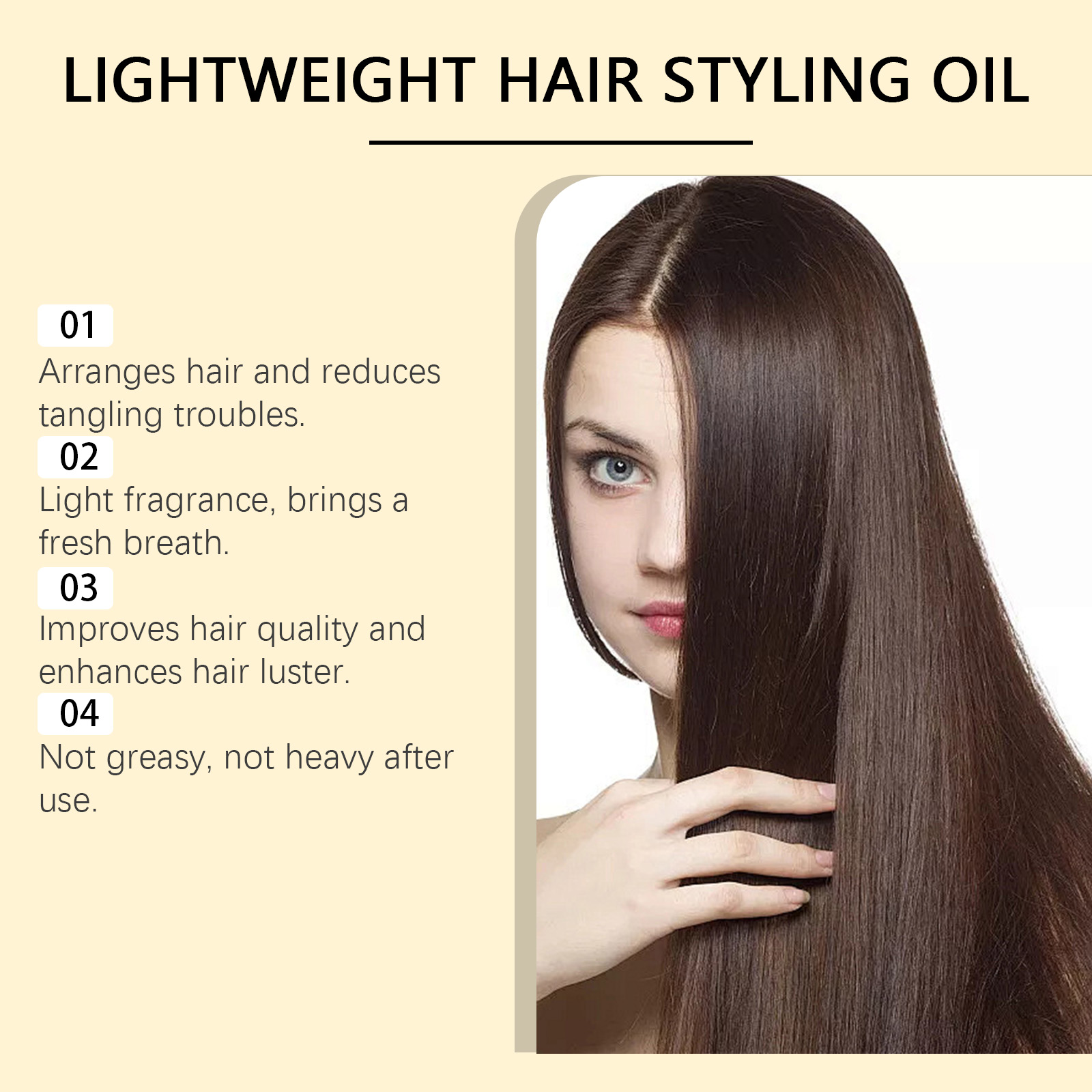 我们的柔顺护发精油,由甘油、丁二醇、氢化蓖麻油精心调配而成。专为滋润头发,深层滋养设计。使用方法极为便捷:洗完头发后,将其涂抹在湿发上。从发中均匀涂抹到发梢,根据需要使用样式工具。避免与头皮区域直接接触。并且可以为头发提供深层滋养,恢复顺滑。使头发更亮,散发出健康的光泽。