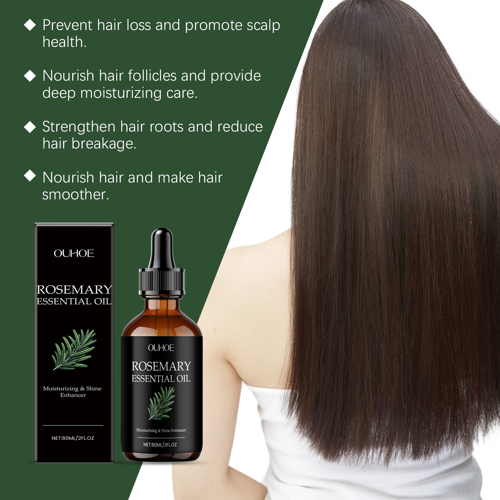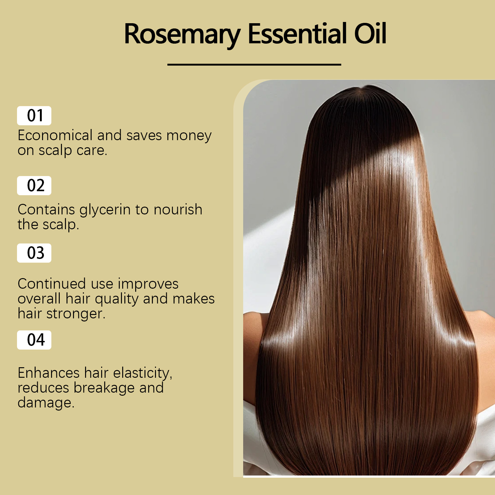 我们的迷迭香柔顺护发精油,由生育酚(维生素E)、迷迭香叶油精心调配而成。专为有效防止脱发,促进健康的发根设计。使用方法极为便捷:彻底清洁头皮和头发。将适量本品均匀涂抹于头皮和头发上轻轻按摩直至完全吸收。让它停留至少30分钟或一整夜,然后再洗掉。并且可以深层滋养发根,提供充足营养,强化发质。