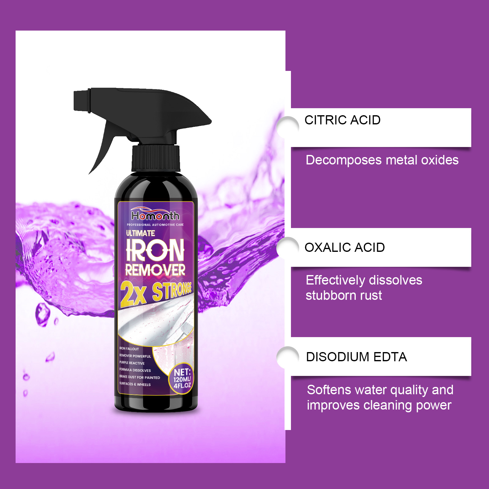 我们的汽车除锈剂,由柠檬酸、草酸、羟基乙叉二膦酸精心调配而成。专为快速溶解金属锈,保持基板的平滑性设计。使用方法极为便捷:喷在生锈的表面,使用刷子加速分解用清水彻底冲洗。并且可以一步喷洒和擦拭,不需要物理摩擦来减少划痕的风险。
