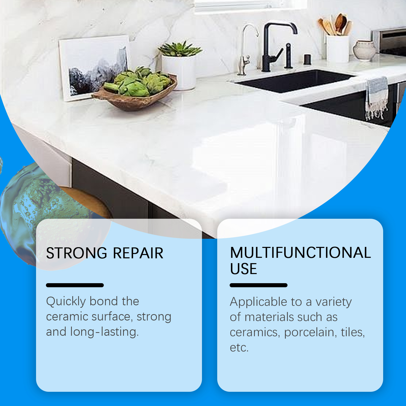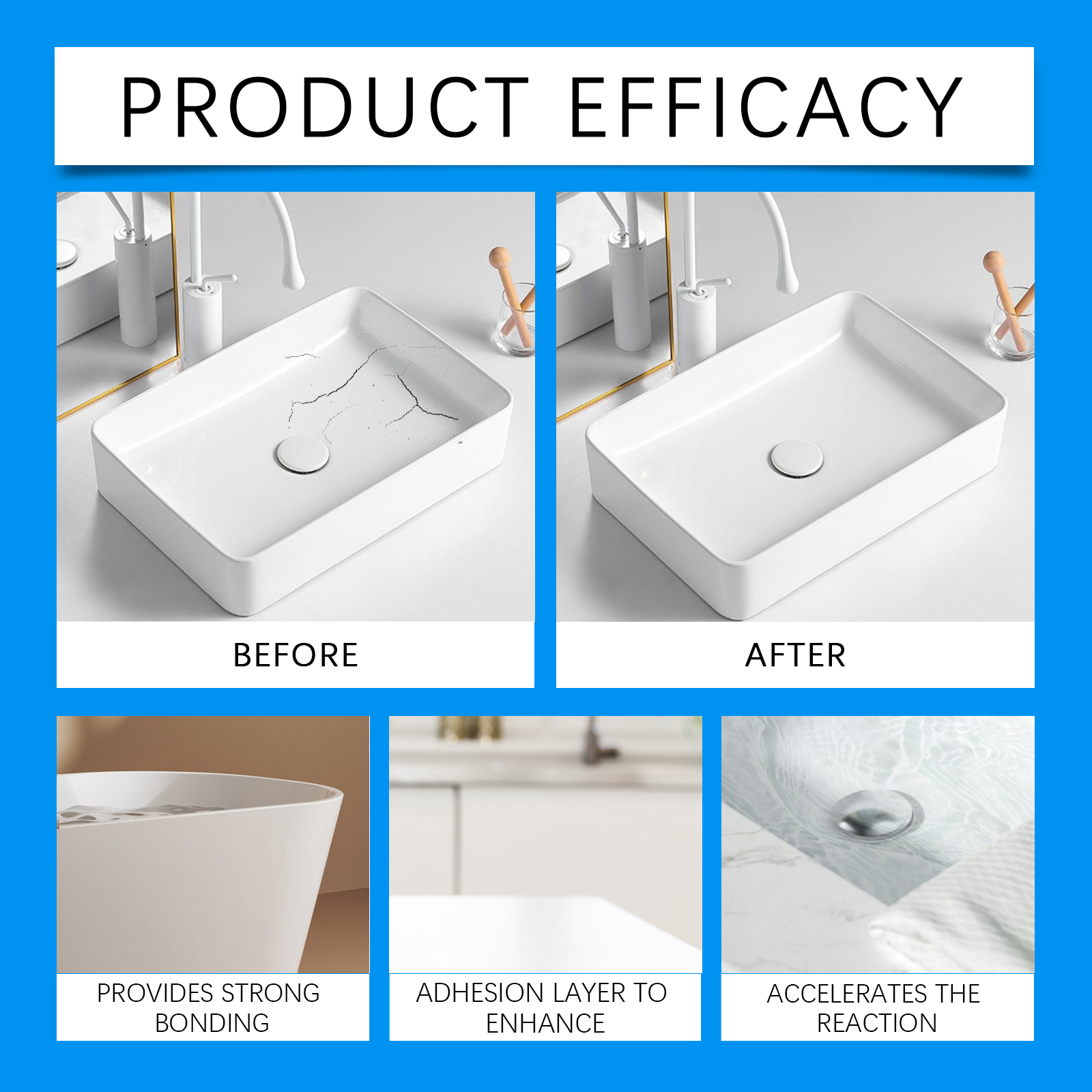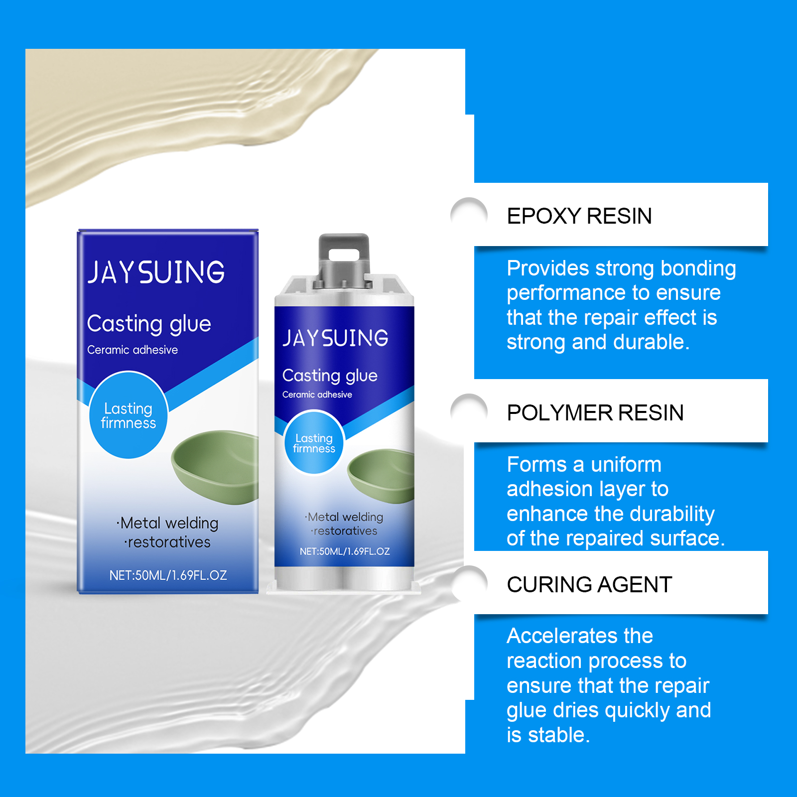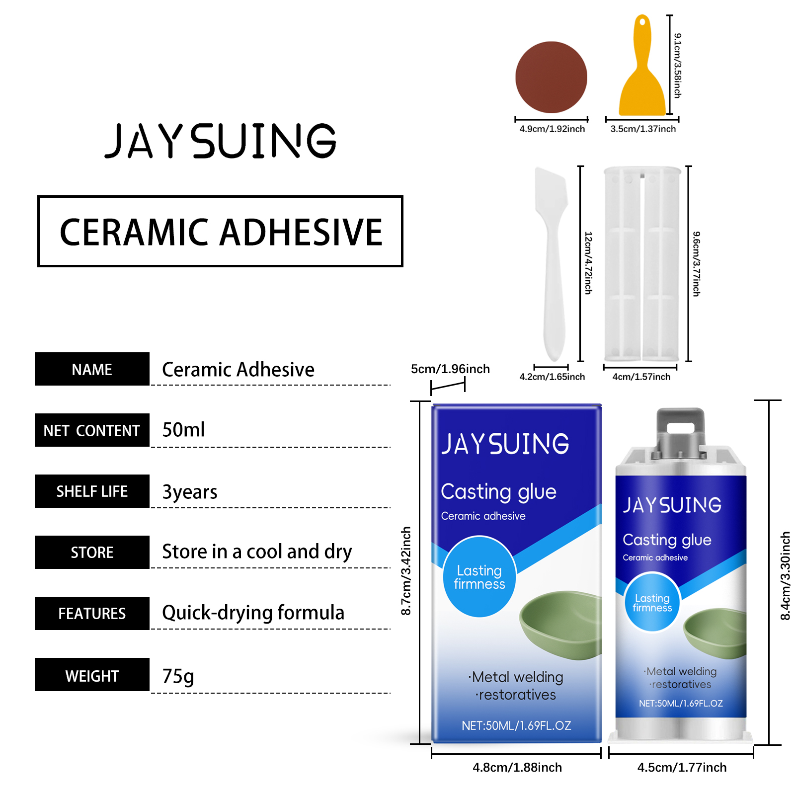 我们的陶瓷修补剂,由A胶:环氧树脂、高分子树脂,B胶:固化剂、添加剂精心调配而成。专为修复后无痕迹,恢复完整的陶瓷质感设计。使用方法极为便捷:首先打开产品使用推杆将胶水A和胶水B挤入容器并充分混合。将混合的胶水均匀地涂在陶瓷的裂缝上。使用刮刀和铲子来平滑缝隙,然后等待胶水自然干燥。干燥后,使用砂纸将其抛光,使其更光滑。并且它可以快速粘合陶瓷表面强度高,持久耐用。适用于各种材料,如陶瓷、瓷器、瓷砖等。