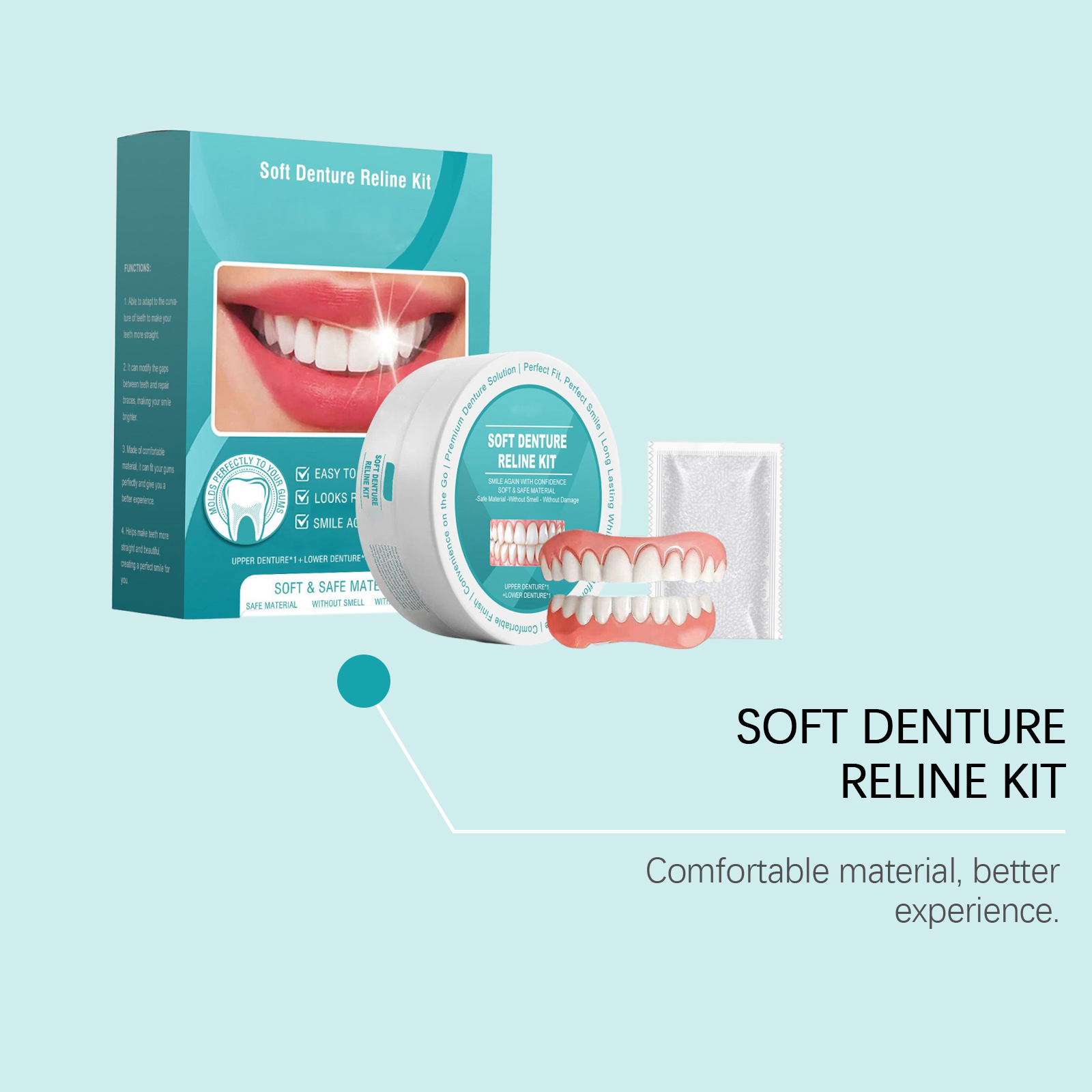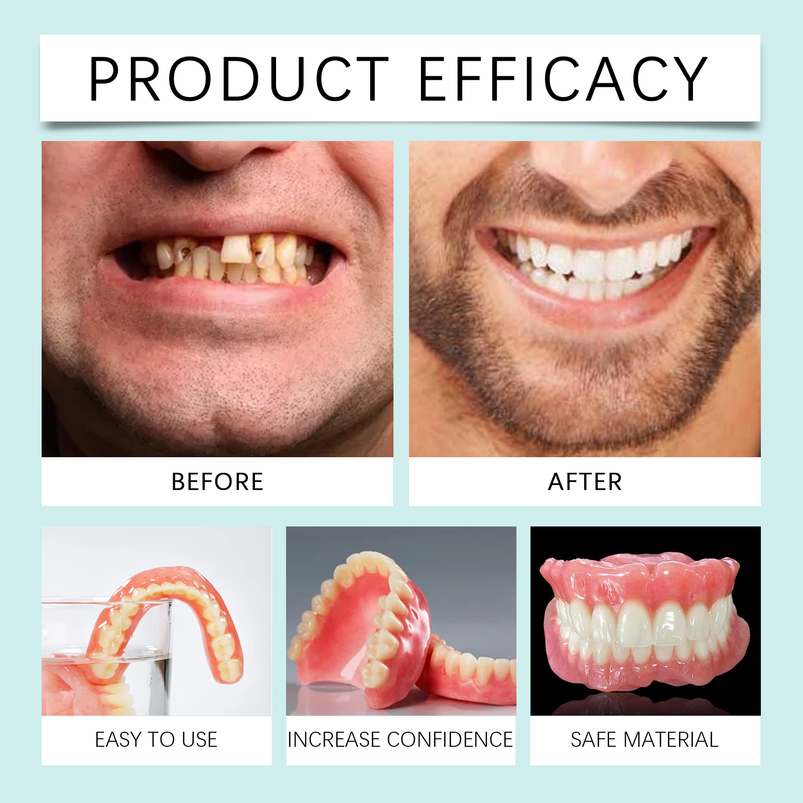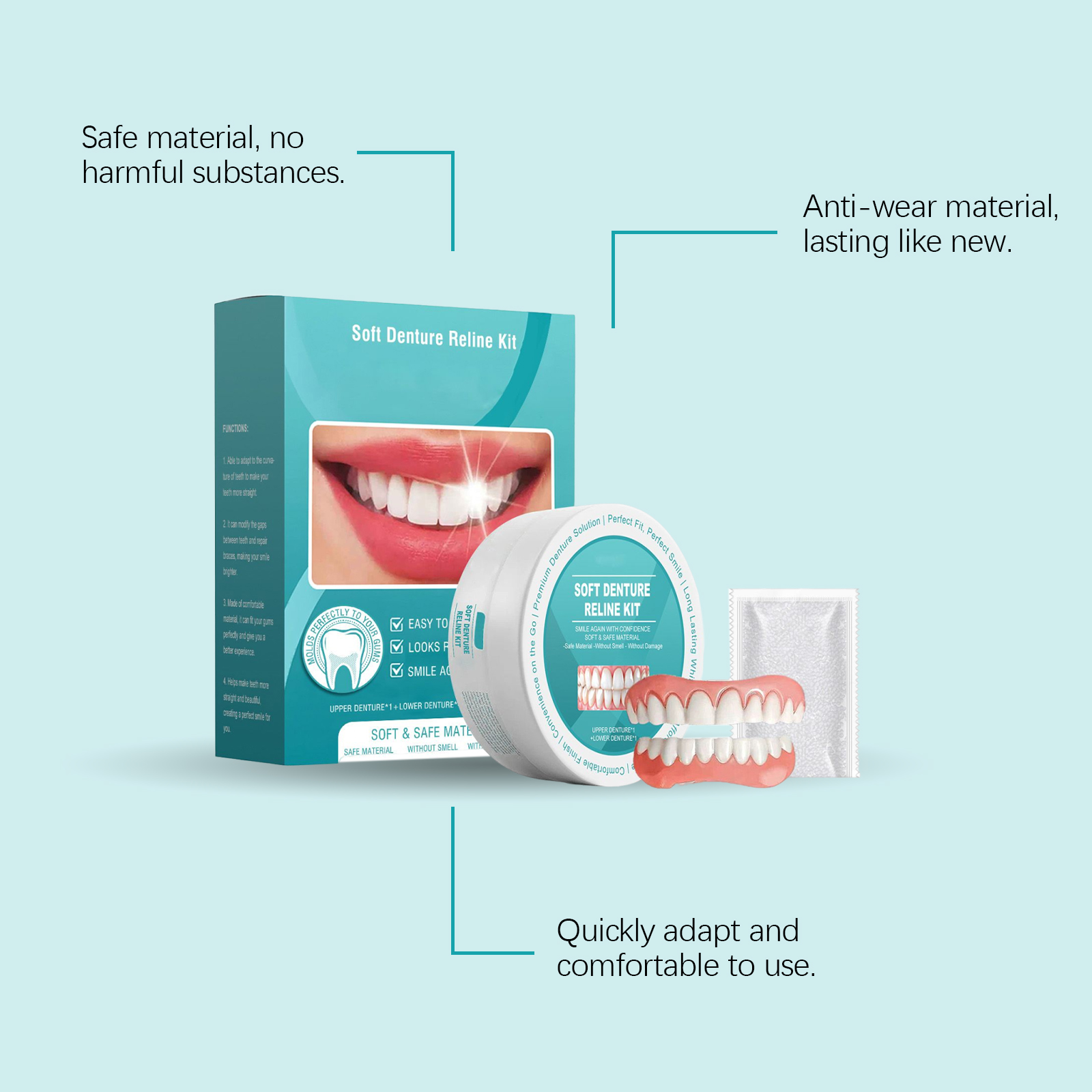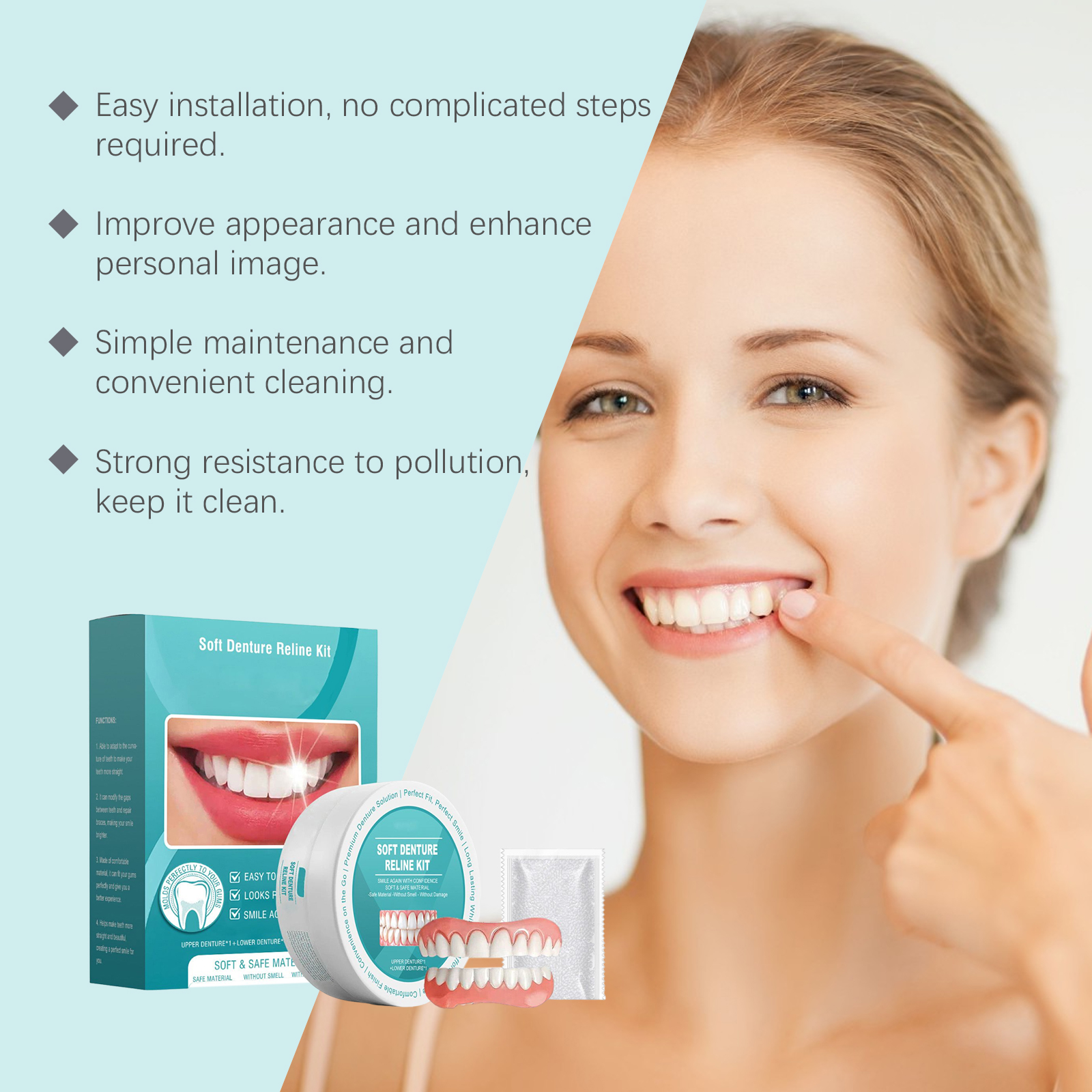 我们的假牙修饰套装,由聚乙烯醇交联聚合物、聚丙烯酸钠精心调配而成。专为精准贴合和带来自然感觉设计。使用方法极为便捷:首先将黄麻胶熔化直到它变成液体。分别用软木胶将假牙粘在牙齿上。并且它可以立即提升你的外貌,易于使用且立竿见影。