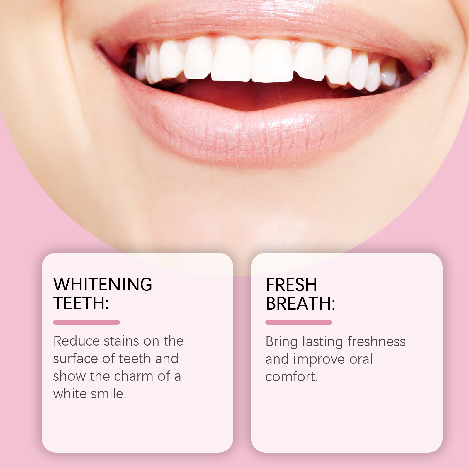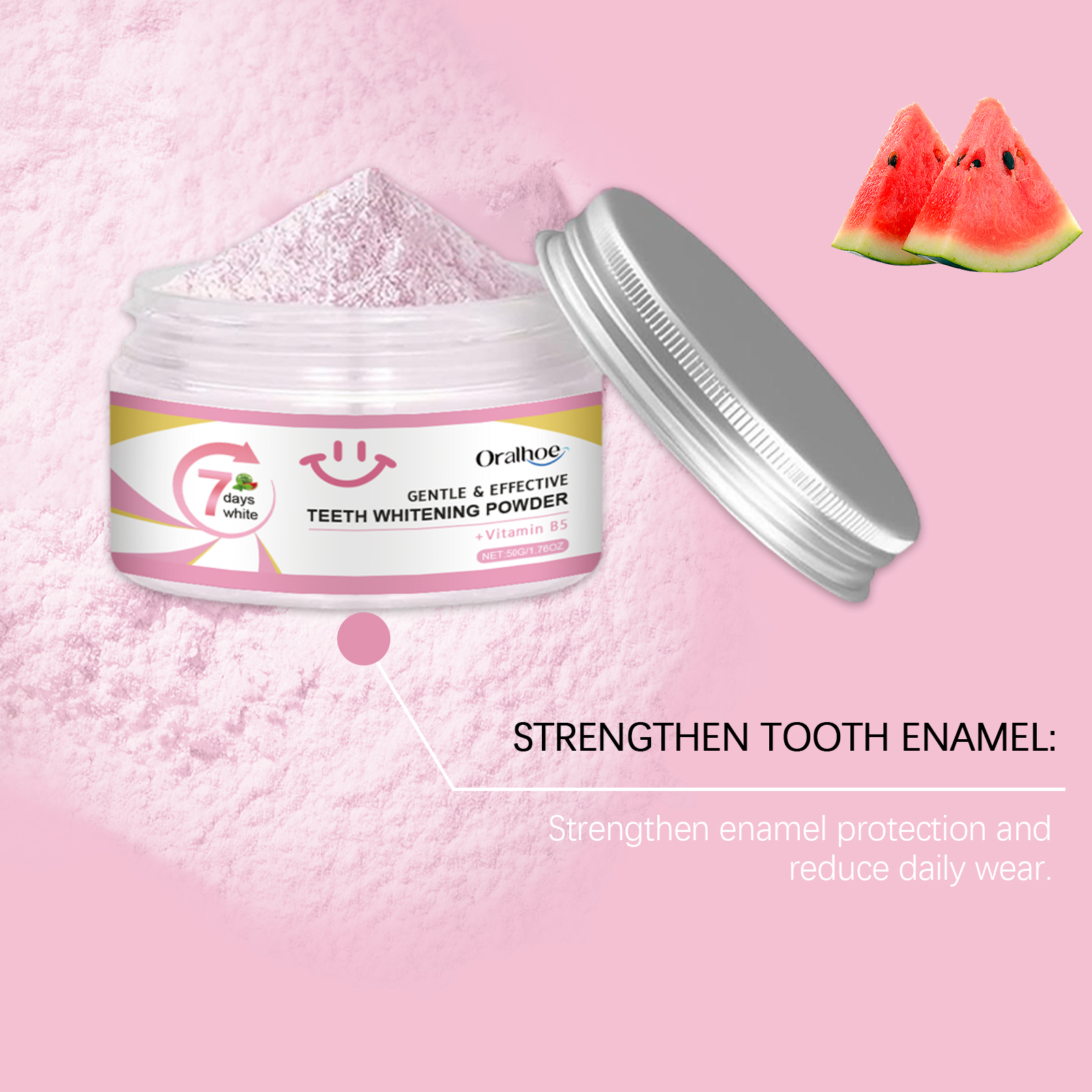 我们的牙粉,由西瓜提取物、维生素B5、薄荷叶精心调配而成。专为减少牙齿表面的污渍,展现白牙微笑的魅力设计。使用方法极为便捷:用清水漱口直到干净为止。在湿润的牙刷上放适量的牙粉,刷牙2-3分钟。用清水漱口,直到口内干净。并且可以带来持久的清新感,改善口腔舒适度。