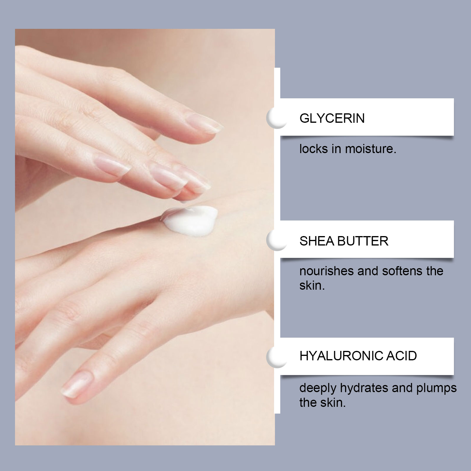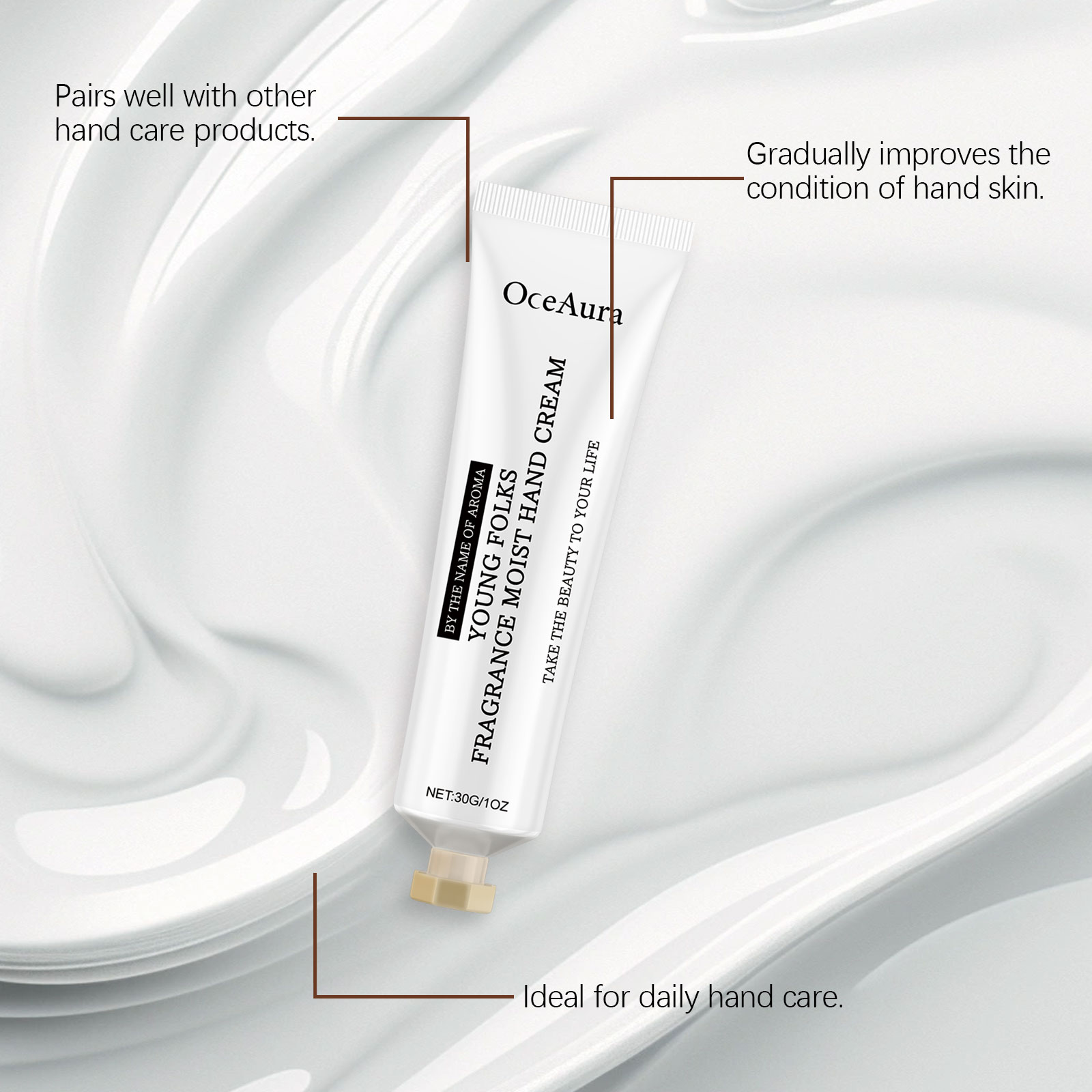 我们的滋润香氛护手霜,由牛油果树油、透明质酸精心调配而成。专为全天候保持手部湿润设计。使用方法极为便捷:取适量本品轻轻涂抹于手部,轻轻按摩至吸收。并且深层保湿而不油腻。