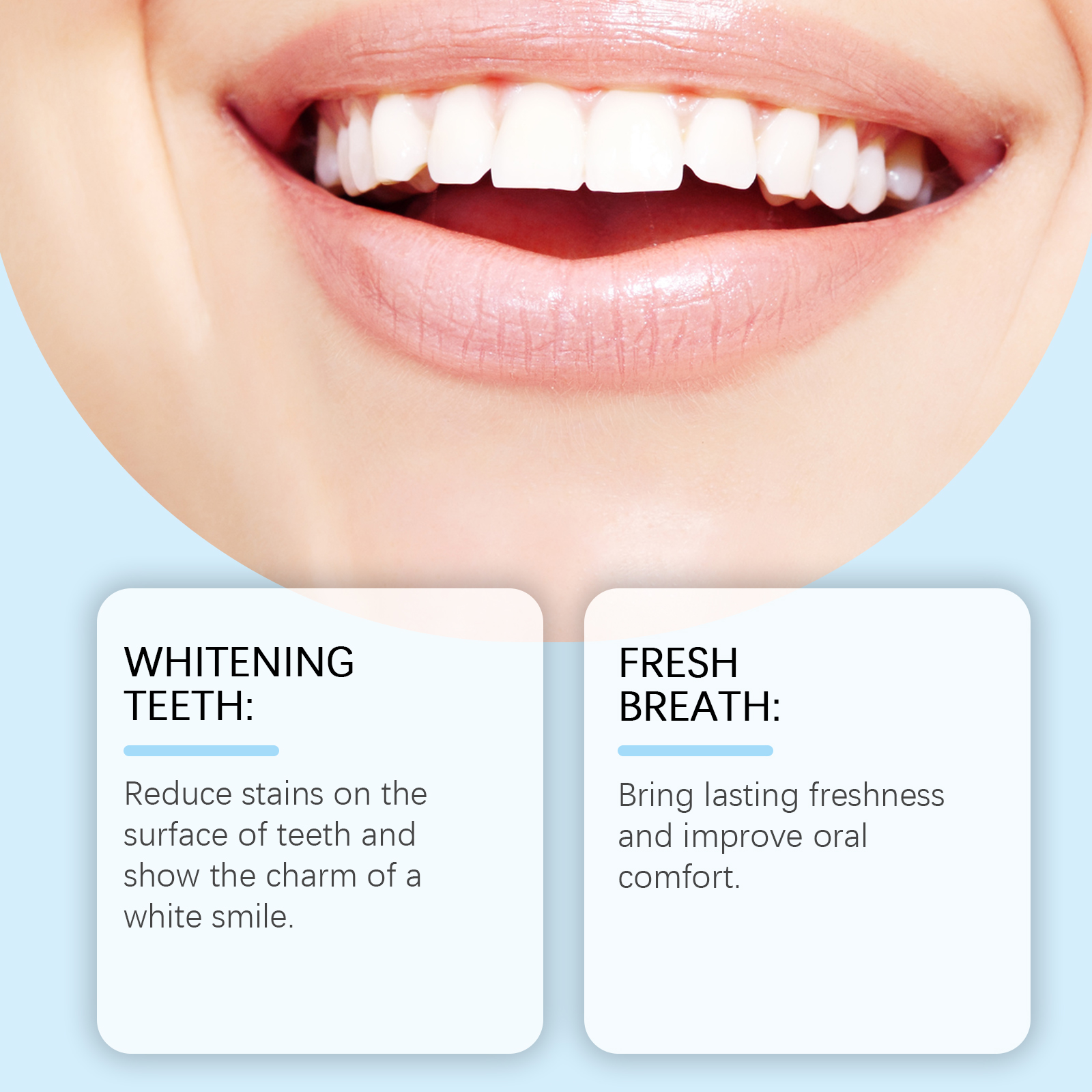 我们的益生菌亮泽牙粉,由碳酸氢钠、玉米淀粉、山梨(糖)醇精心调配而成。专为支持牙龈健康并改善口腔护理设计。使用方法极为便捷:用清水漱口以湿润牙齿。在湿润的牙刷上放适量的牙粉,刷牙2-3分钟。用清水漱口,直到口内干净。并且可以减少牙齿表面的污渍,展现白牙微笑的魅力。带来持久的清新感改善口腔舒适度。