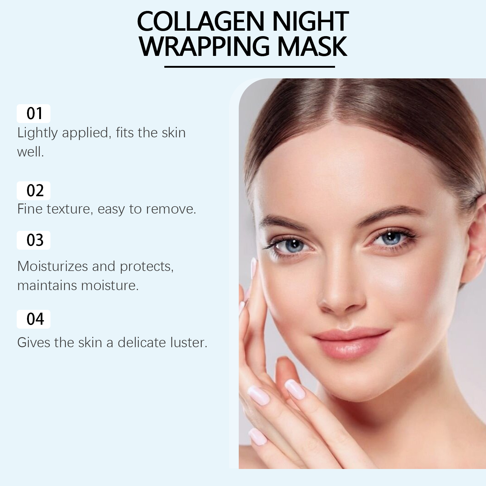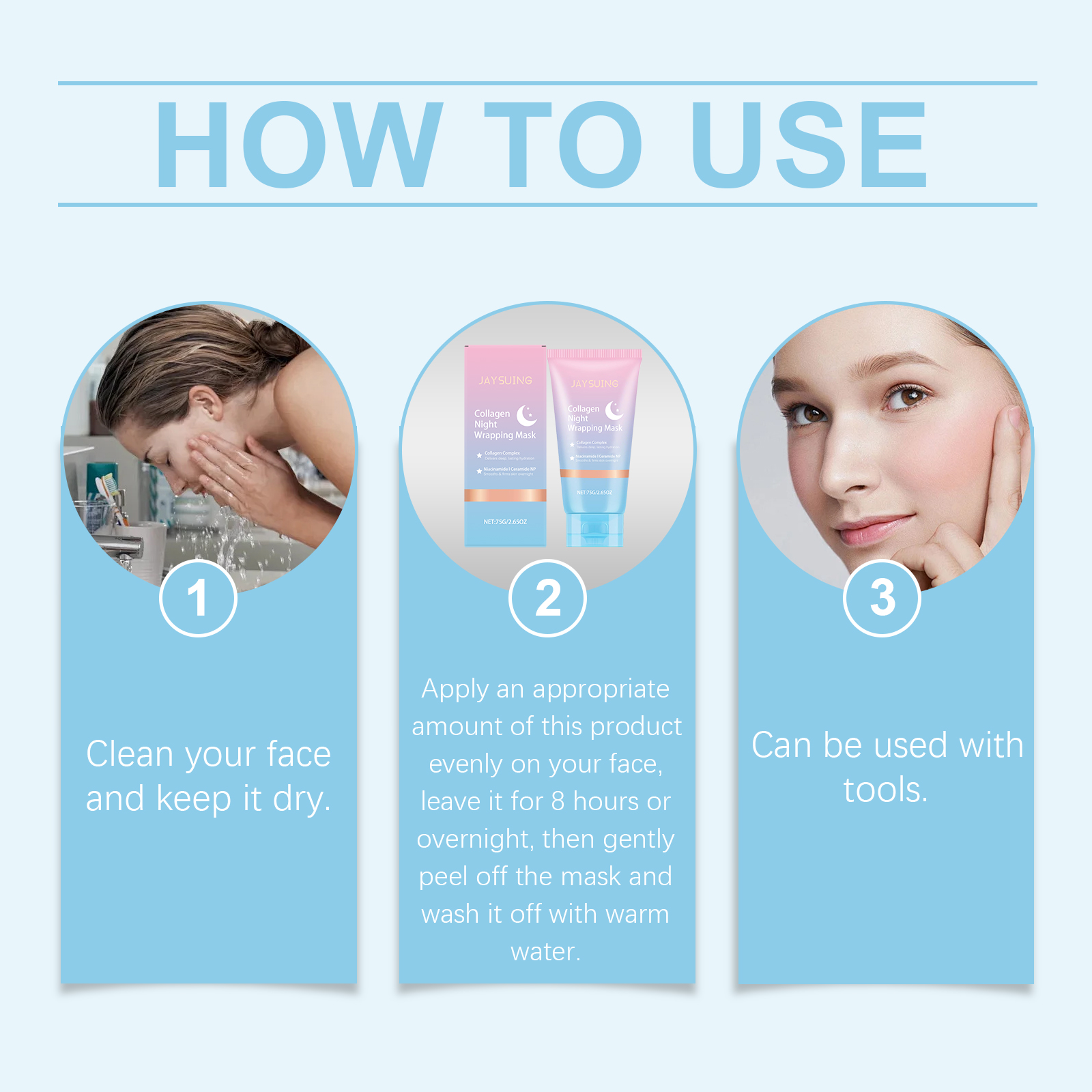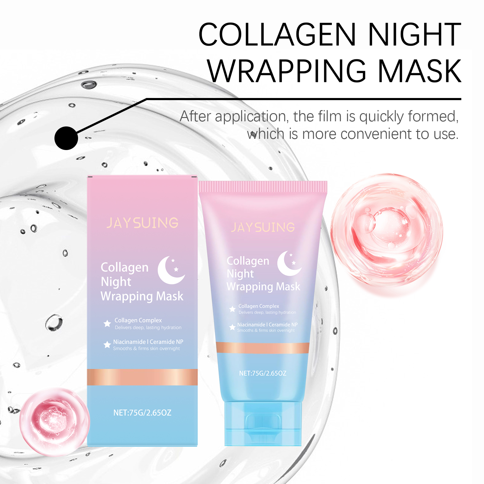 我们的胶原蛋白夜间撕拉面膜,由聚乙烯醇、甘油精心调配而成。专为清爽不粘腻,带来舒适的感觉设计。使用方法极为便捷:清洁你的脸并保持干燥。取适量本品均匀涂抹于面部,静待8小时或一整夜然后轻轻揭下面膜,用温水冲洗干净。并且可以用工具使用,轻轻涂抹,易于均匀覆盖皮肤表面。提供保湿感,保持皮肤光滑。