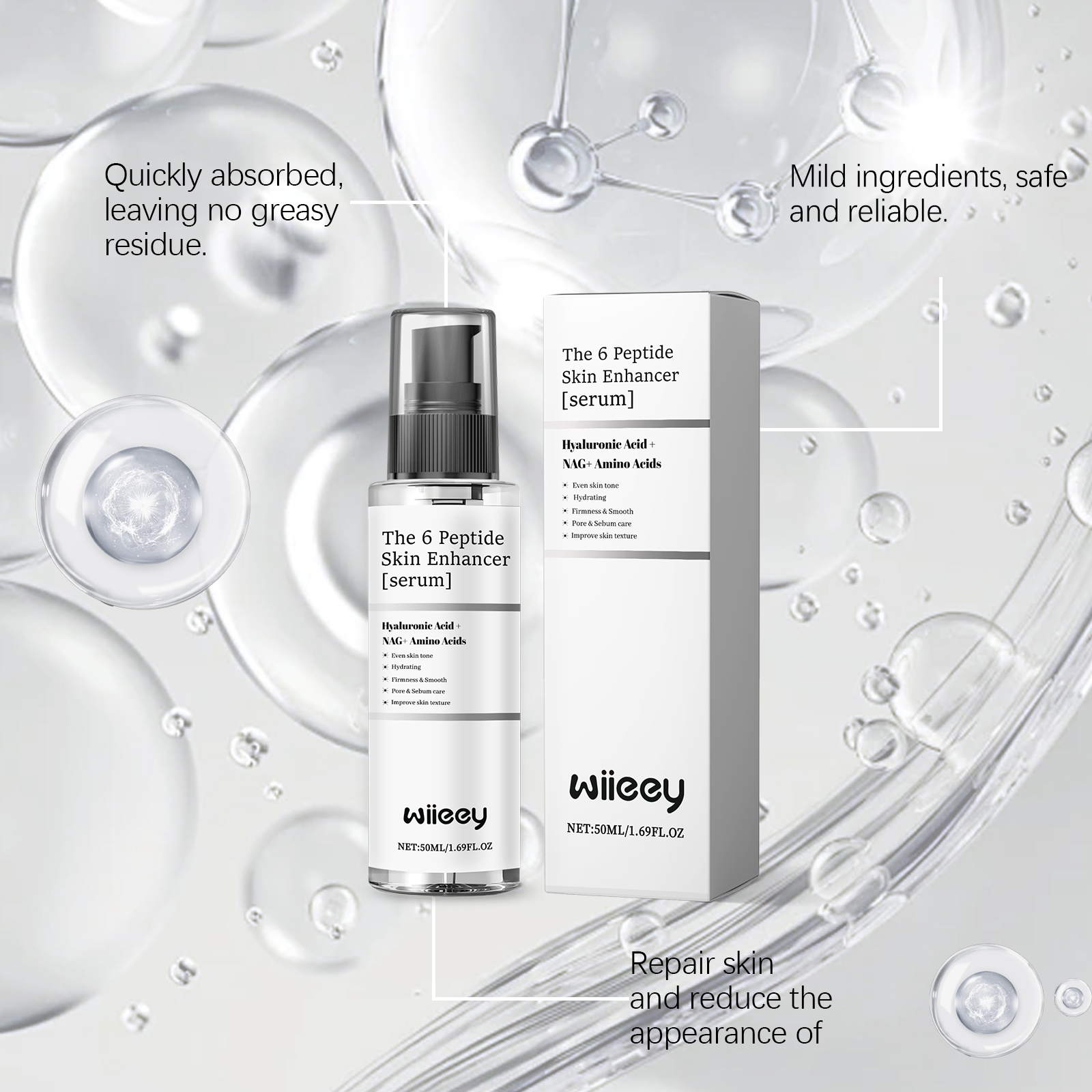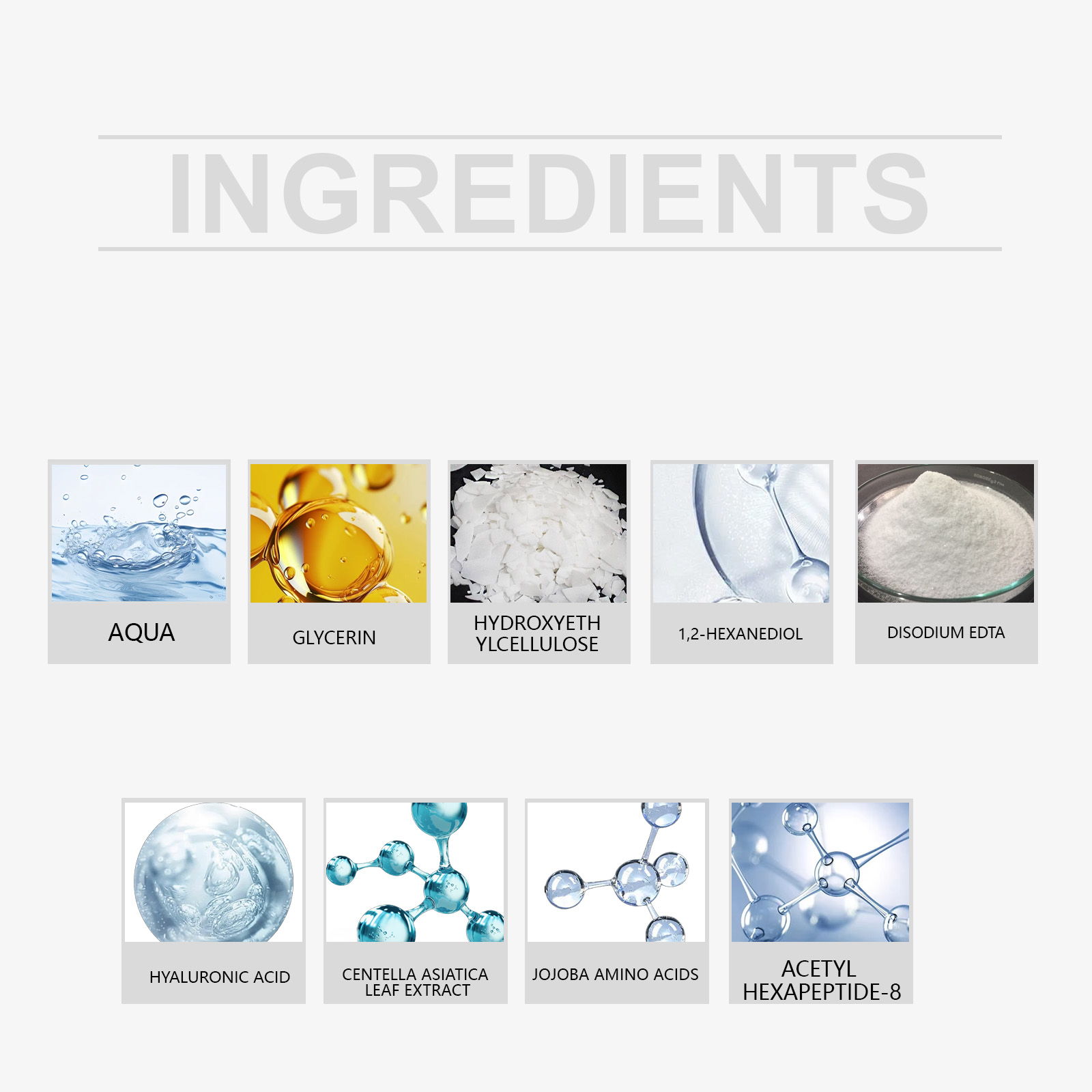 N-乙酰葡萄糖胺、荷荷巴氨基酸、乙酰六肽-8