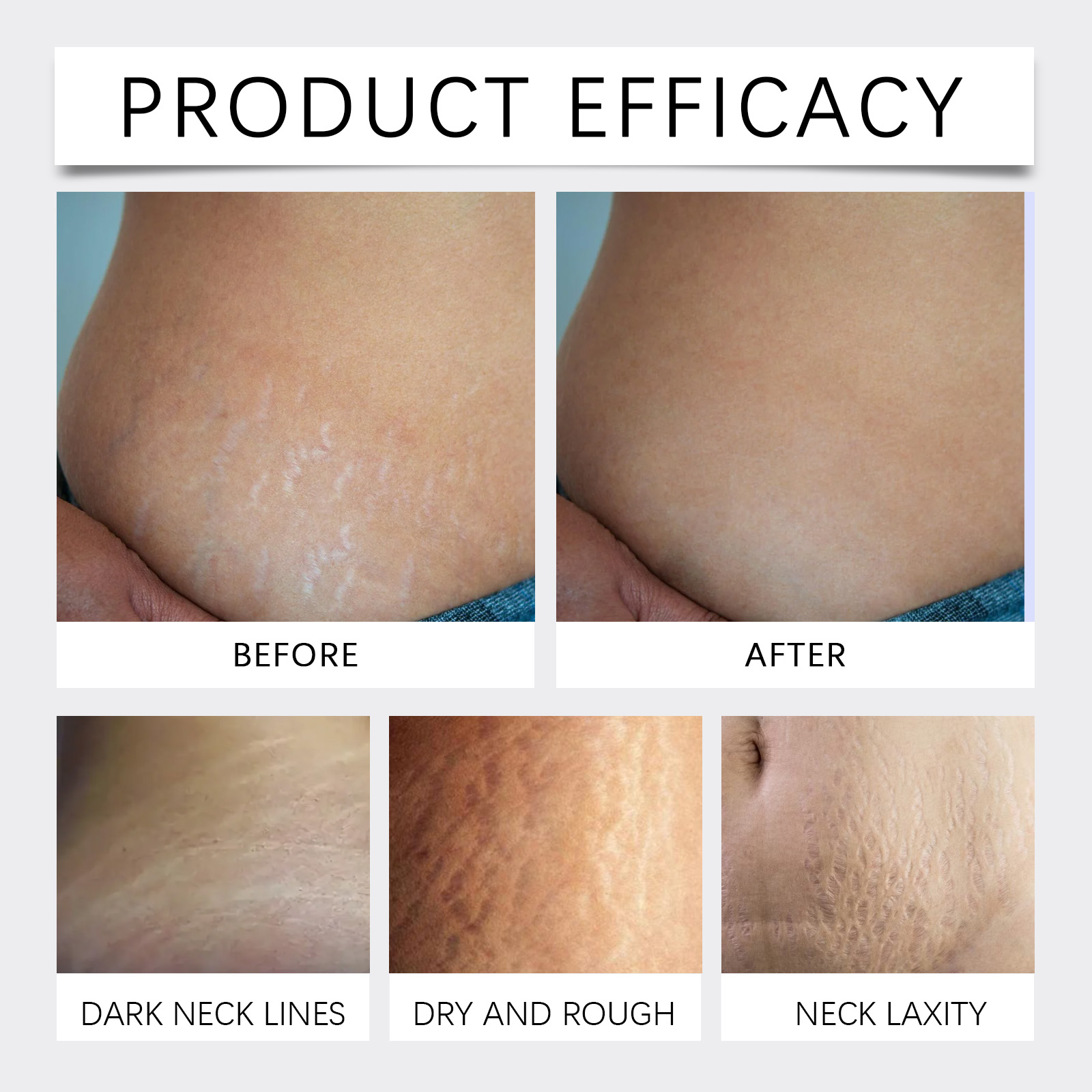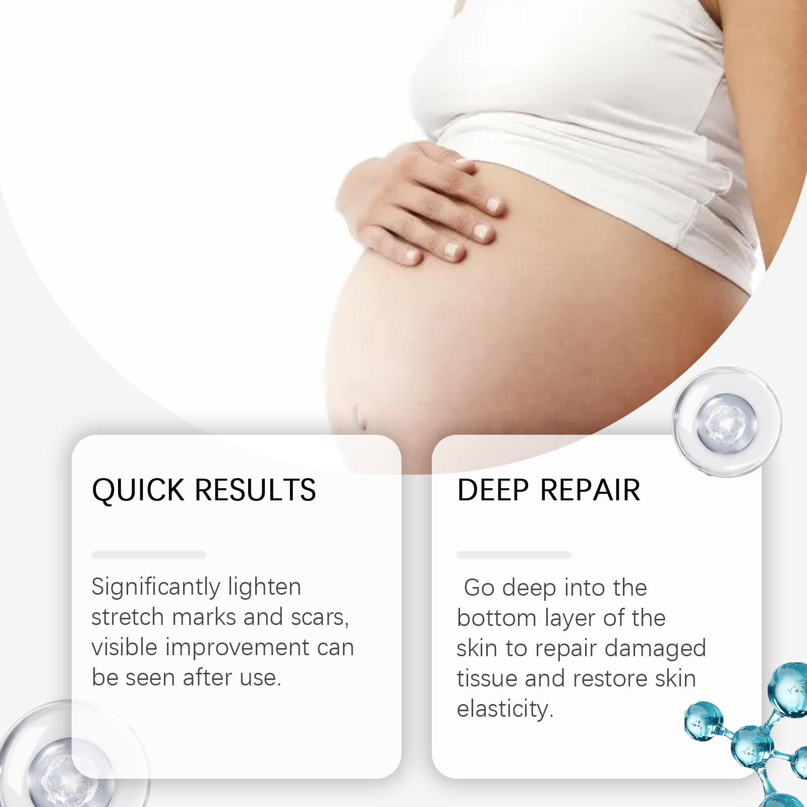 我们的弹润护理精华液,由N-乙酰葡萄糖胺、荷荷巴氨基酸、乙酰六肽-8精心调配而成。专为显著减轻妊娠纹和疤痕,使用后可明显看到改善设计。使用方法极为便捷:先清洁并擦干皮肤。将适量的本品涂抹在腹部、腿部臀部或手臂等容易出现妊娠纹的部位。轻轻按摩直至完全吸收。并且可以深入皮肤底层,修复受损组织,恢复皮肤弹性。