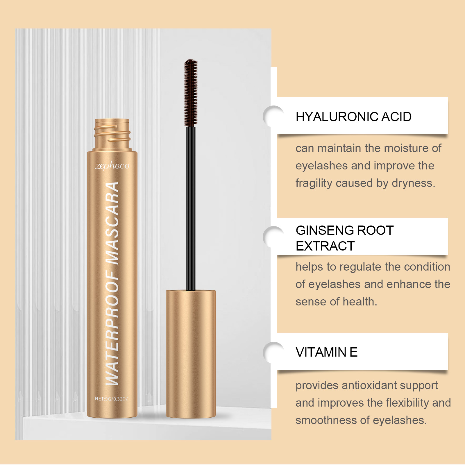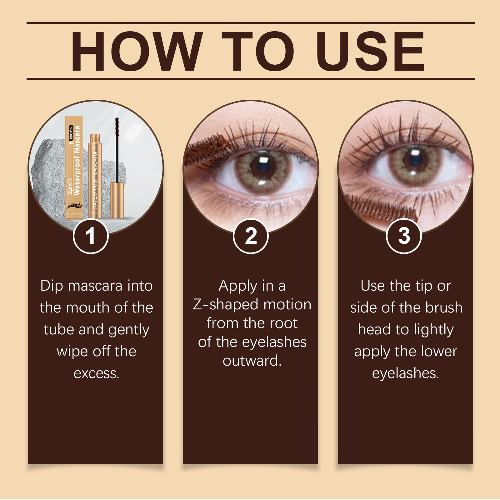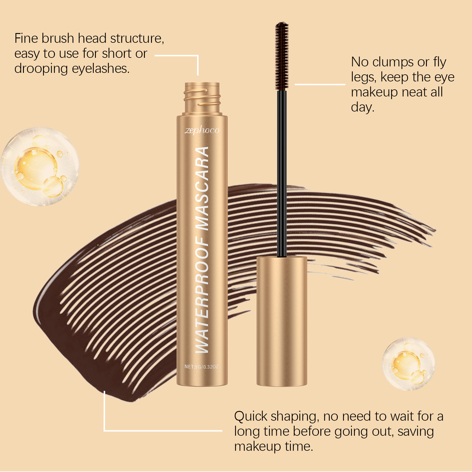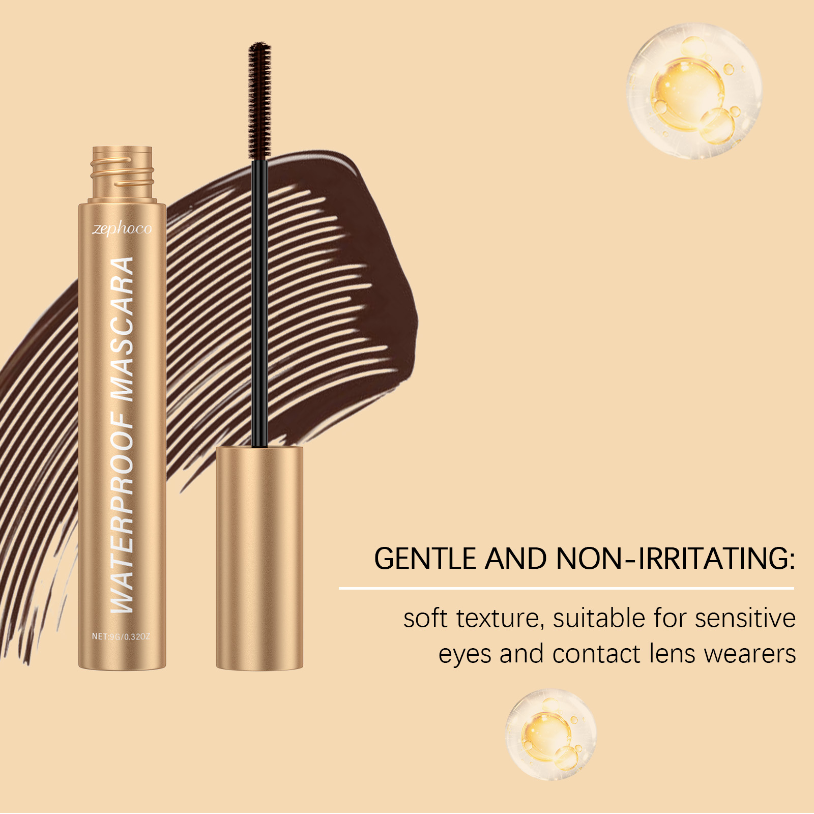 我们的棕色卷翘睫毛膏,由丙烯酸(酯)类/丙烯酸乙基己酯共聚物、硬脂酸精心调配而成。专为调节睫毛的状态并增强健康感设计。使用方法极为便捷:将睫毛膏蘸入管口,轻轻擦掉多余的液体。以Z形动作从睫毛根部向外涂抹。用刷头的尖端或侧面轻轻涂抹下睫毛。并且可以适合日常使用,改善睫毛的柔软度和弹性,刷后不僵硬,睫毛看起来更长且更有存在感。