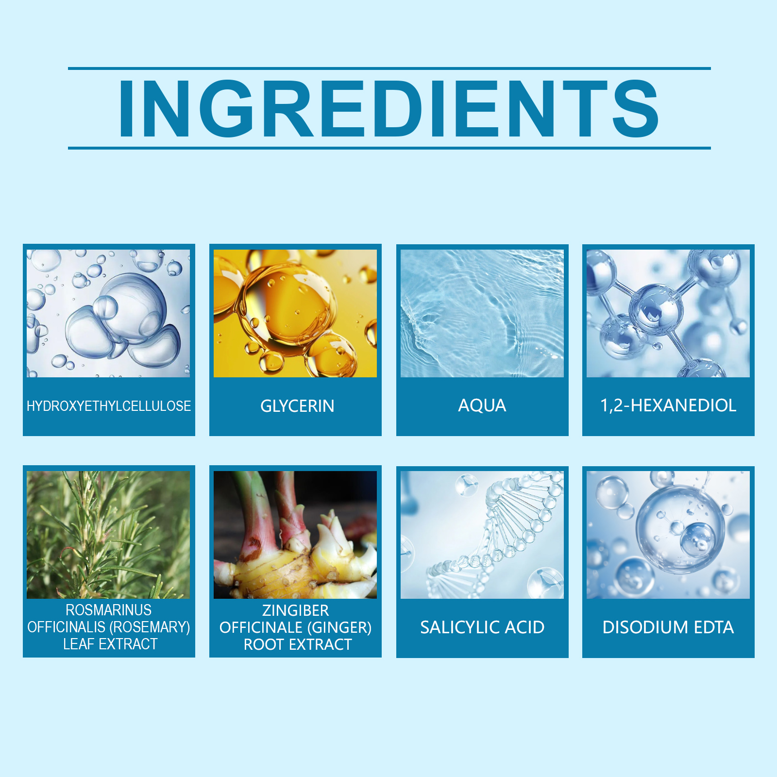我们的头皮护理滚珠精华,由迷迭香叶提取物、姜根提取物、水杨酸精心调配而成。专为去除堆积物并帮助吸收设计。使用方法极为便捷:轻轻在头皮上滚动本产品,将精华液涂抹在头皮上并按摩至吸收。并且可以滋润并强化发根,逐渐显现明显效果。