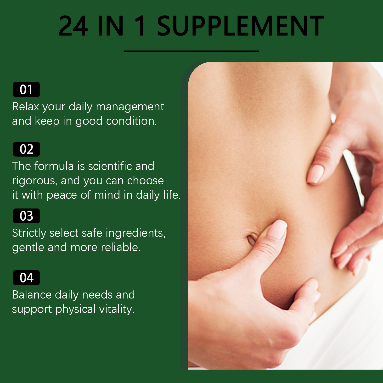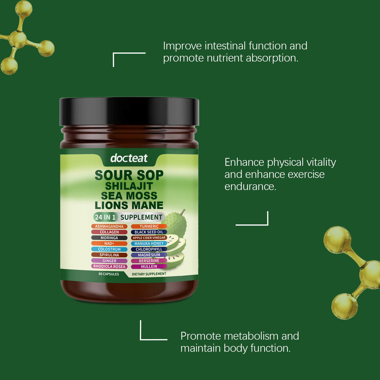 我们的24合1刺果胶囊,由明胶胶囊壳、玉米淀粉精心调配而成。专为补充能量并保持活力设计。使用方法极为便捷:每天2粒,吞服。并且可以增强身体抵抗力,保护健康,调节肠道菌群,促进消化。