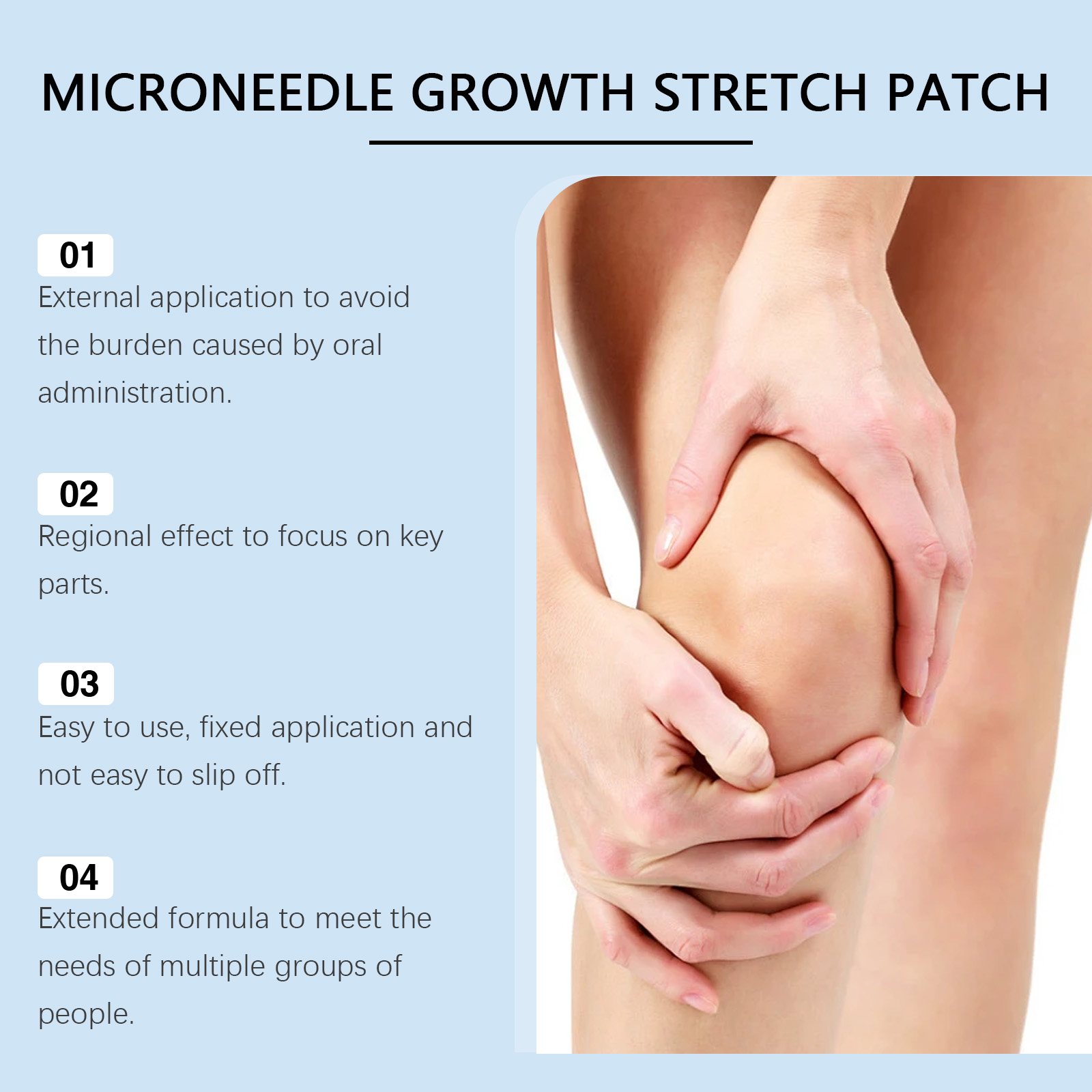 我们的膝盖护理贴,由透明质酸、可溶性胶原精心调配而成。专为支持长期佩戴,适合在睡眠期间使用设计。使用方法极为便捷:清洁并擦拭膝盖周围的皮肤,确保其没有油脂和污垢。取出贴片并撕掉背面的保护膜。将贴片贴在膝盖附近的皮肤上,确保与皮肤完全接触。等待8-12小时后,取下贴片并用温水清洗皮肤。并且无需清洗和涂抹,直接涂抹使用,更加无忧。