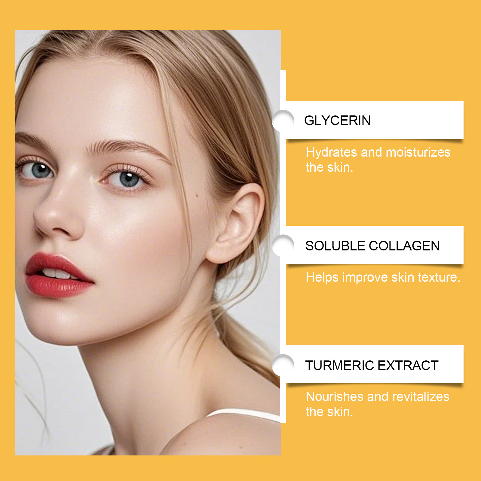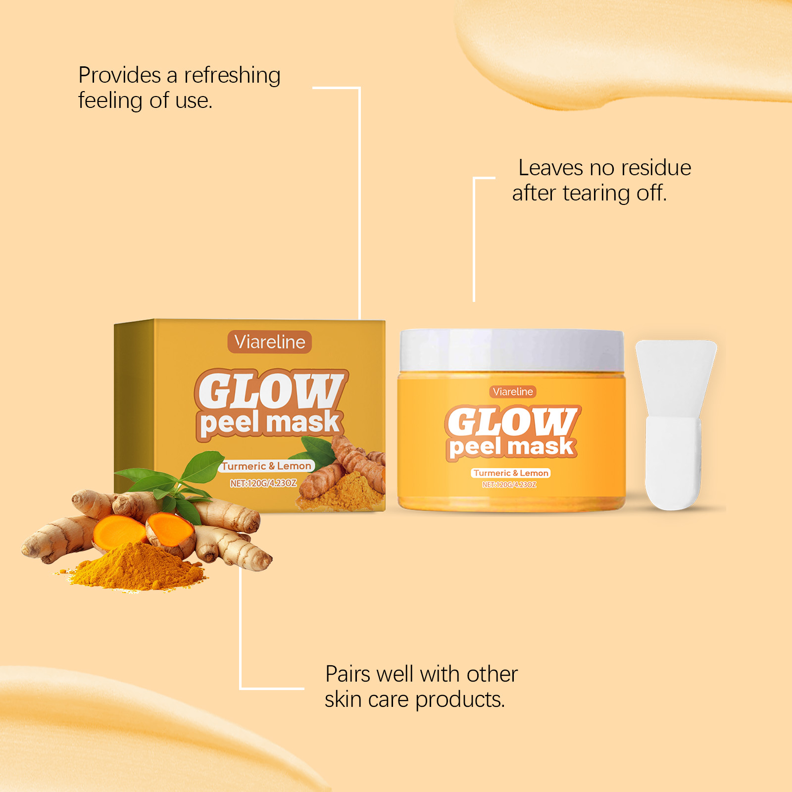 我们的姜黄去角质撕拉面膜,由聚乙烯醇、甘油精心调配而成。专为皮肤提供充足的水分,改善细纹和皱纹设计。使用方法极为便捷:保持脸部干燥。将适量本品均匀涂抹于面部肌肤,停留15-20分钟轻轻揭下面膜用温水洗净。可以与工具一起使用。并且可以恢复皮肤弹性。