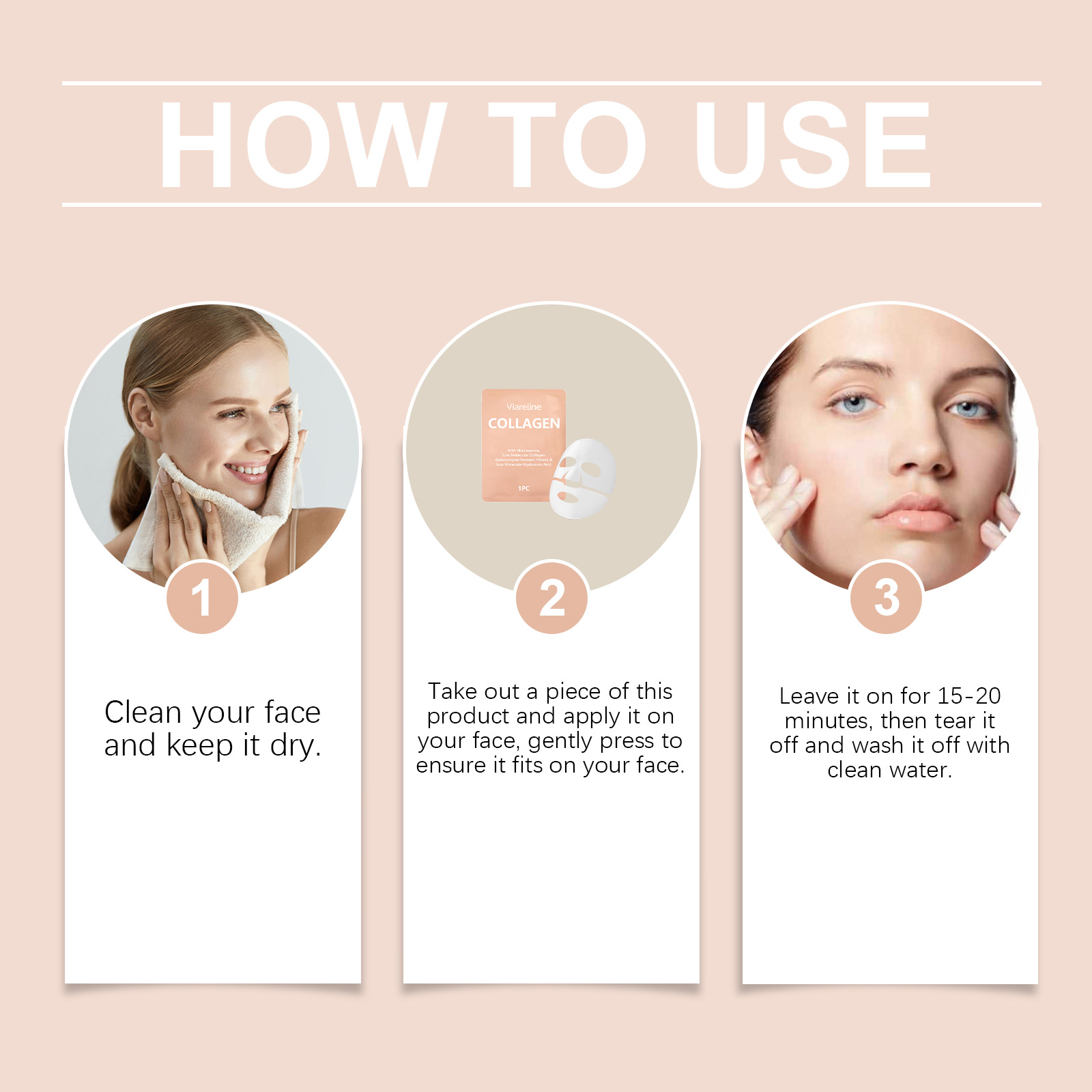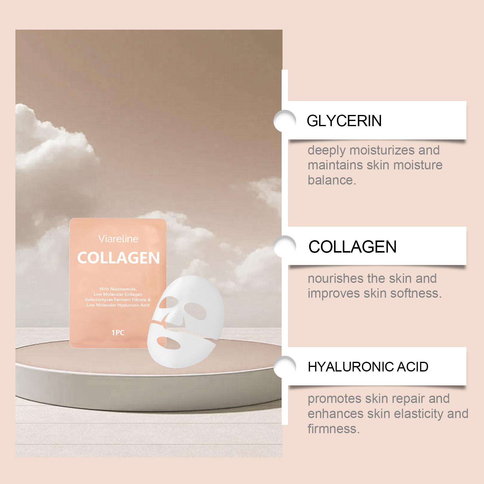 我们的胶原蛋白保湿补水面膜,由甘油、1,2-己二醇、酒石酸精心调配而成。专为深层滋润肌肤并改善干燥,持续保湿使皮肤更饱满设计。使用方法极为便捷:清洁面部并保持干燥。取出一片该产品并涂抹在脸上,轻轻按压以确保其贴合脸部。将其贴在脸上15-20分钟,然后撕下并用清水洗净。并且可以将水分注入皮肤,以创造明亮和光彩照人的光泽。