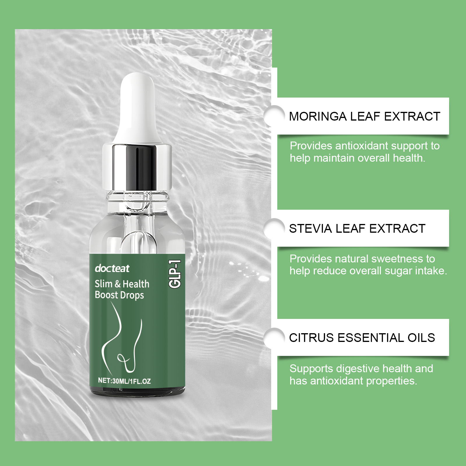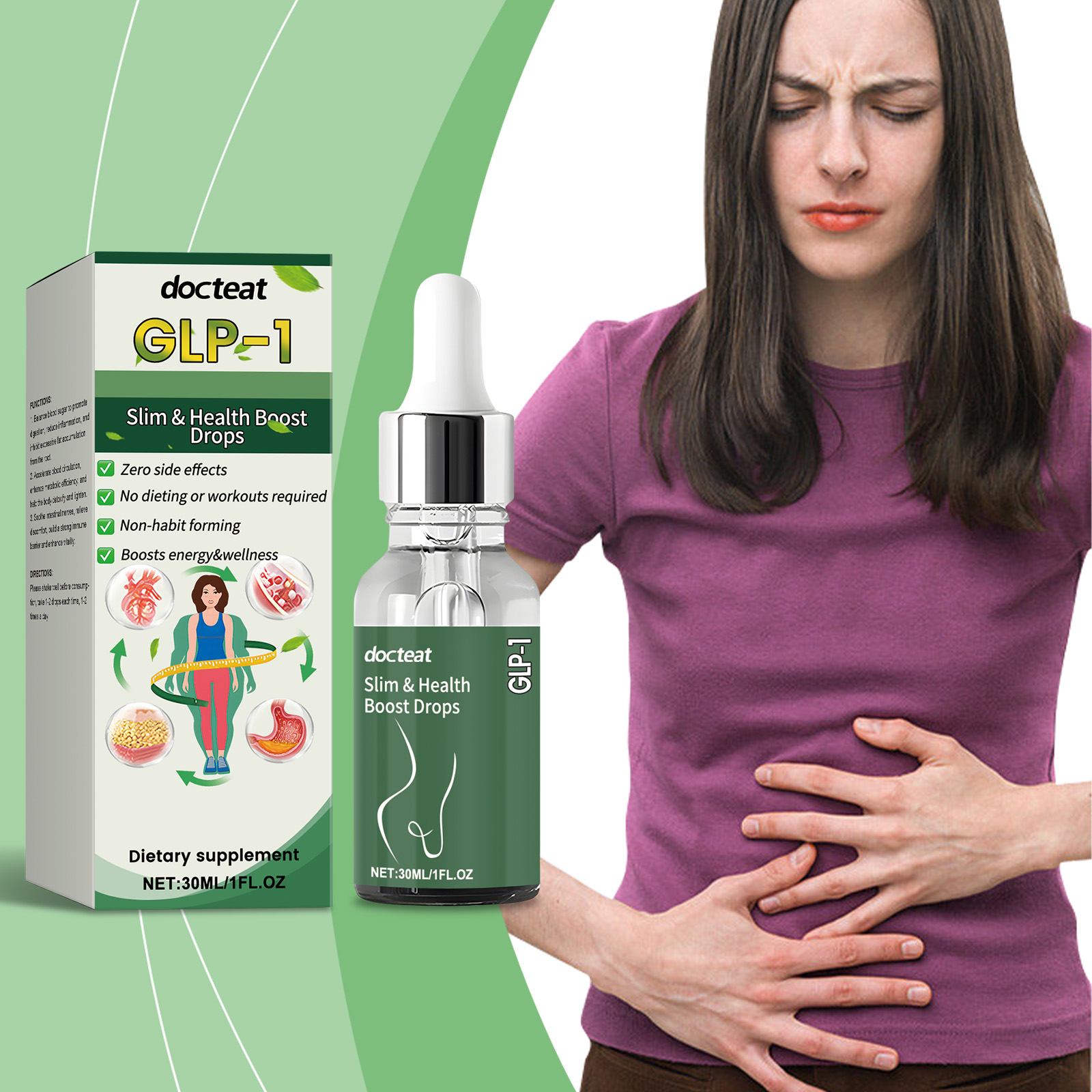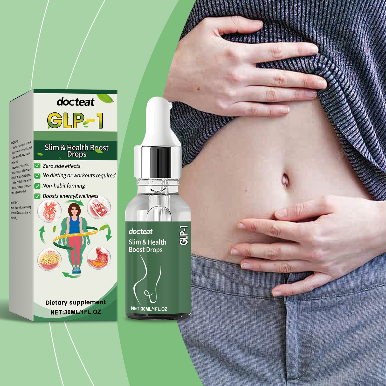 我们的GLP-1滴剂,由中药提取物、葡萄糖酸内酯、维生素b1精心调配而成。专为加速脂肪代谢并帮助减少脂肪设计。使用方法极为便捷:每天1毫升,直接服用或与其他食物混合服用。并且可以支持消化健康并具有抗氧化特性。
