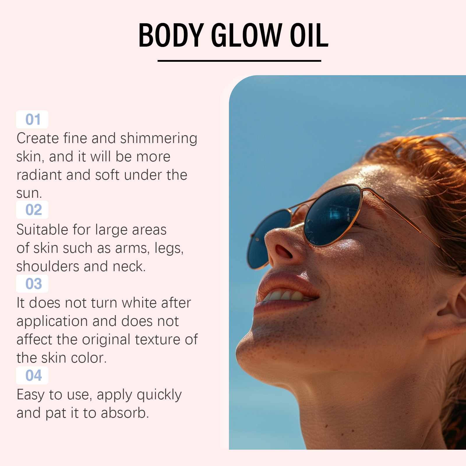 我们的玫瑰金椰子防护闪光身体油,由甘油、1,2-己二醇精心调配而成。专为锁住皮肤水分并保持柔软状态设计。使用方法极为便捷:取适量产品于手心,均匀涂抹于皮肤表面,并轻轻按摩至吸收。并且细腻的珠光颗粒可以提升肌肤光泽和质感,滋润肌肤并改善干燥触感。