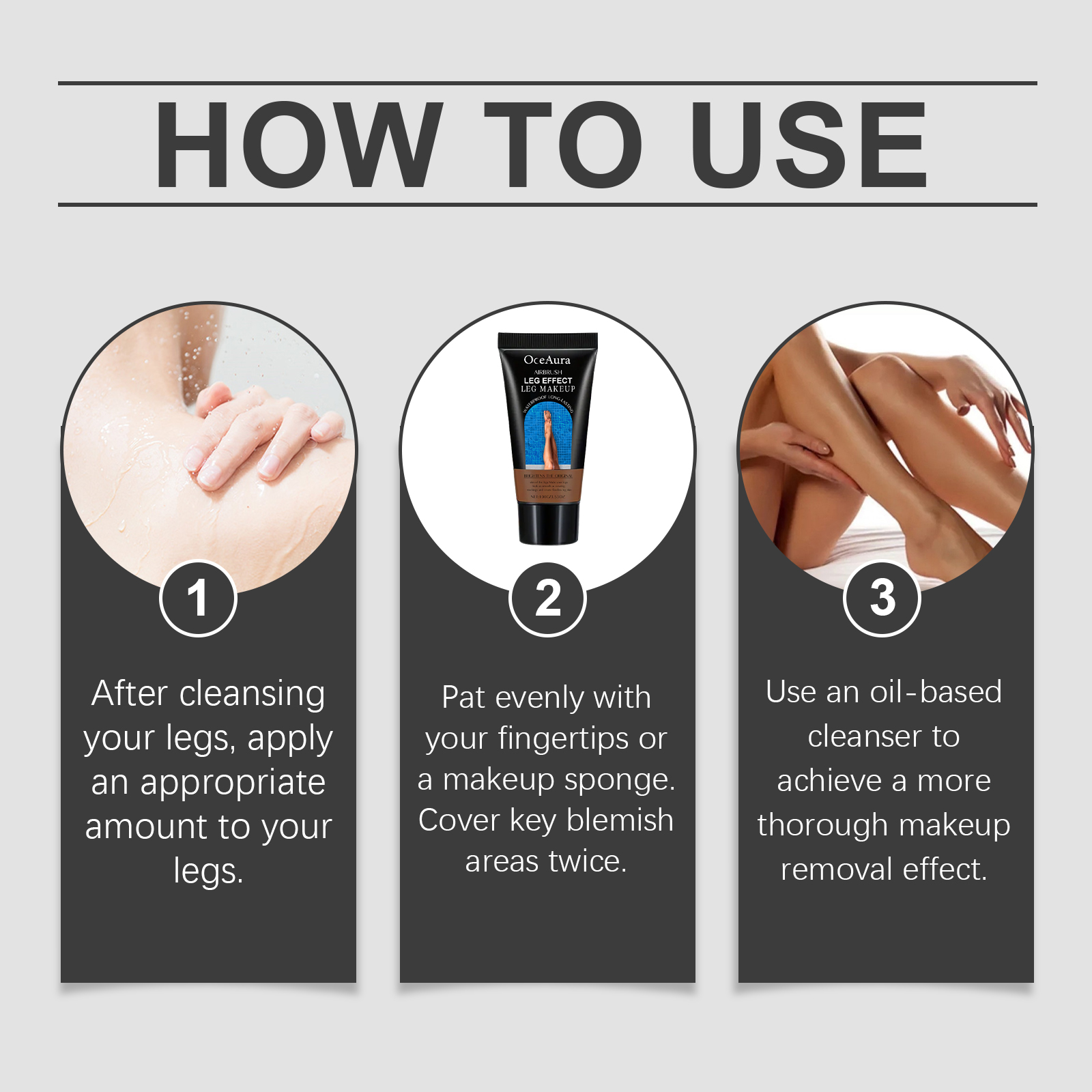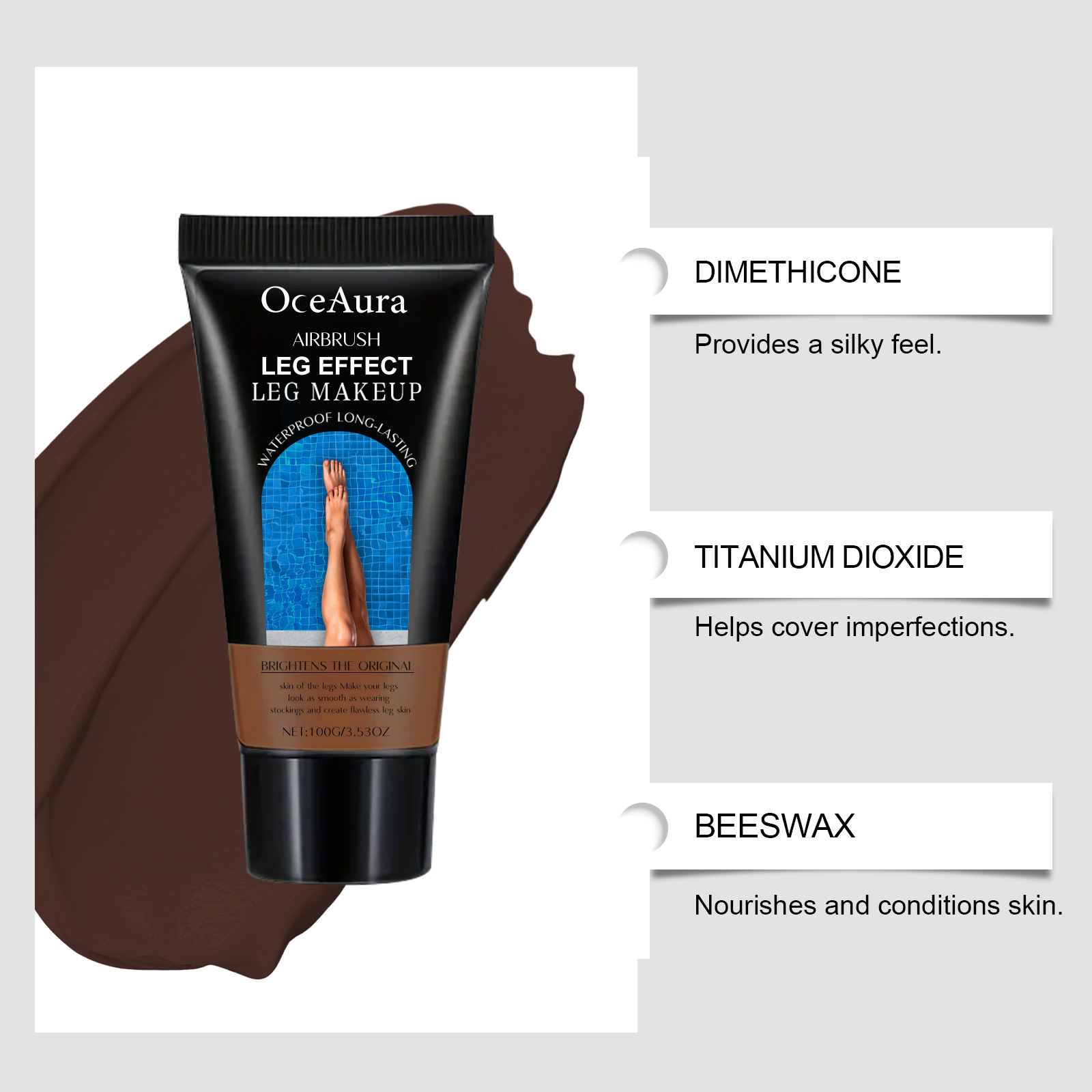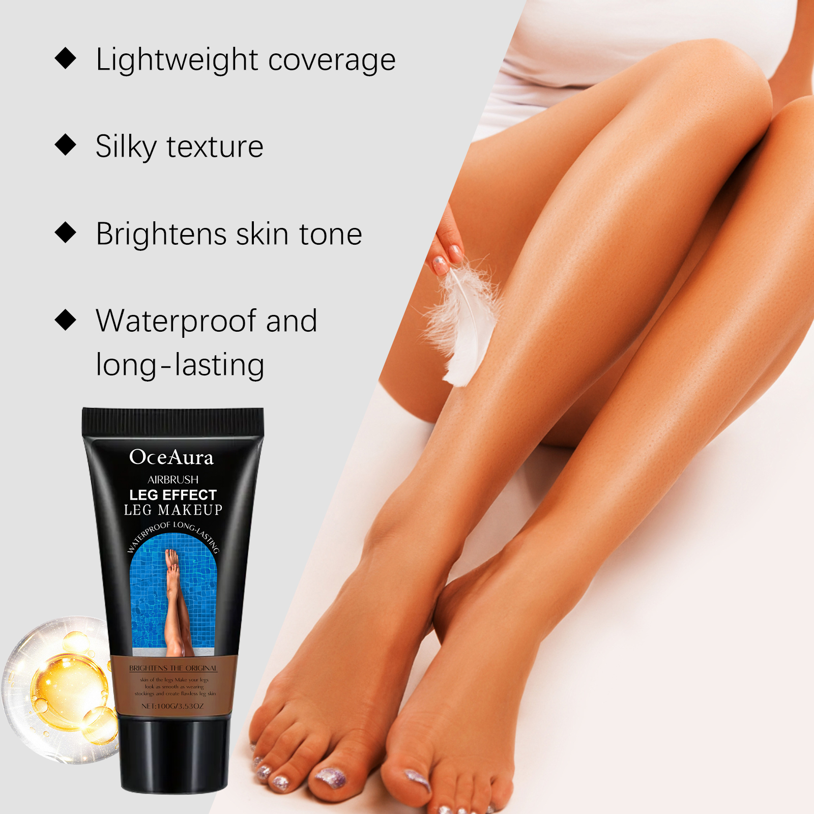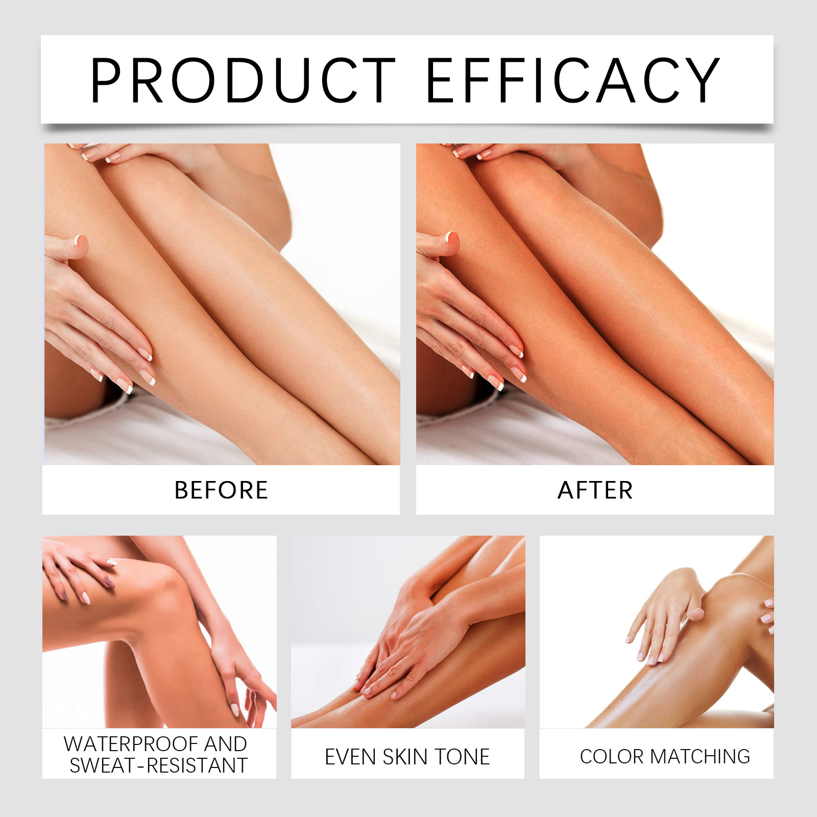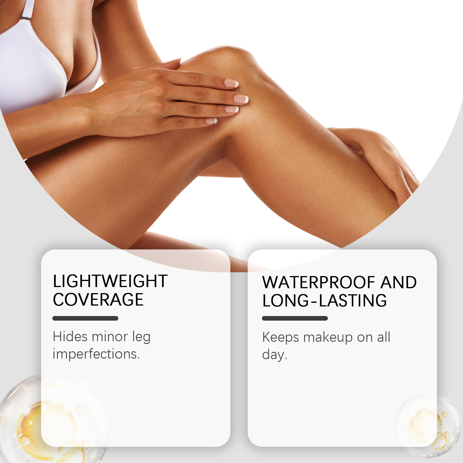 我们的古铜色腿部助黑粉底霜,由聚二甲基硅氧烷、二氧化钛精心调配而成。专为提亮腿部肤色,增强肌肤原本光泽设计。使用方法极为便捷:清洁腿部肌肤后,取适量涂抹于腿部。用指尖或化妆海绵均匀轻拍。关键瑕疵区域可以覆盖两次。使用油基洁面产品以达到更彻底的卸妆效果。并且它具有防水和持久特性,适合全天使用,可以打造如丝袜般光滑的效果,呈现无瑕腿部肌肤。