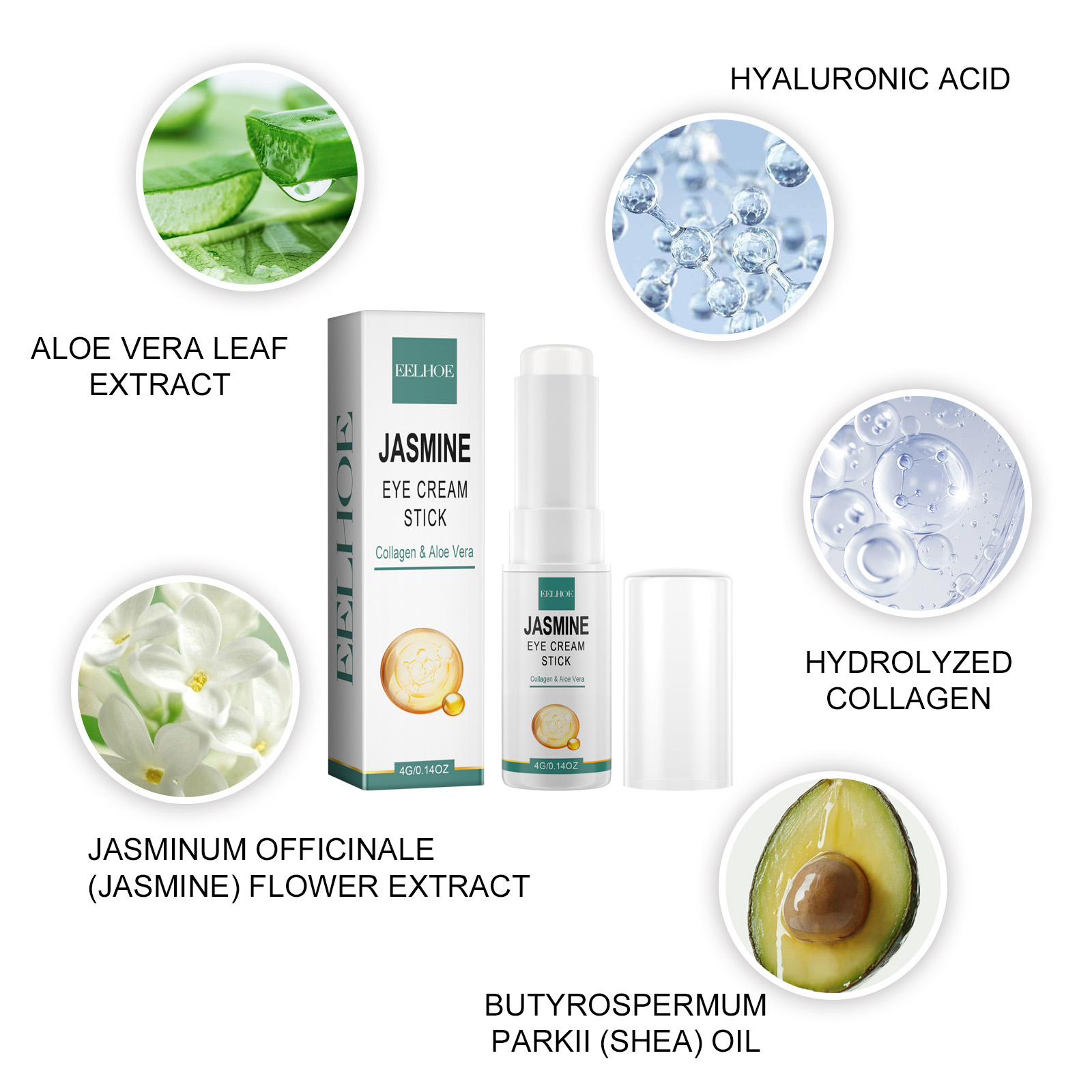 我们的紧致眼霜棒含有胶原蛋白、透明质酸、茉莉花提取物。它可以使眼睛焕发青春光彩,调节肌肤水油平衡,均匀肤色;深层补水,抚平细纹,去除眼周脂肪颗粒;补充眼周胶原蛋白,减少黑斑和痘印,使皮肤更光滑。它的使用方法很简单:1. 洁面后,打开眼霜棒的盖子,用眼霜棒在眼睛周围轻轻打圈按摩。2. 静置1-3分钟,让精华完全吸收。紧致眼霜棒抗衰老效果立竿见影,明显减少黑眼圈、眼袋、皱纹、浮肿和细纹。优质持续提脸,紧眼快速修复抗衰老,更容易使用,更均匀的应用。肉眼可见的黑眼圈和浮肿立刻被去除、紧致、干燥和平滑,让你看起来更年轻。