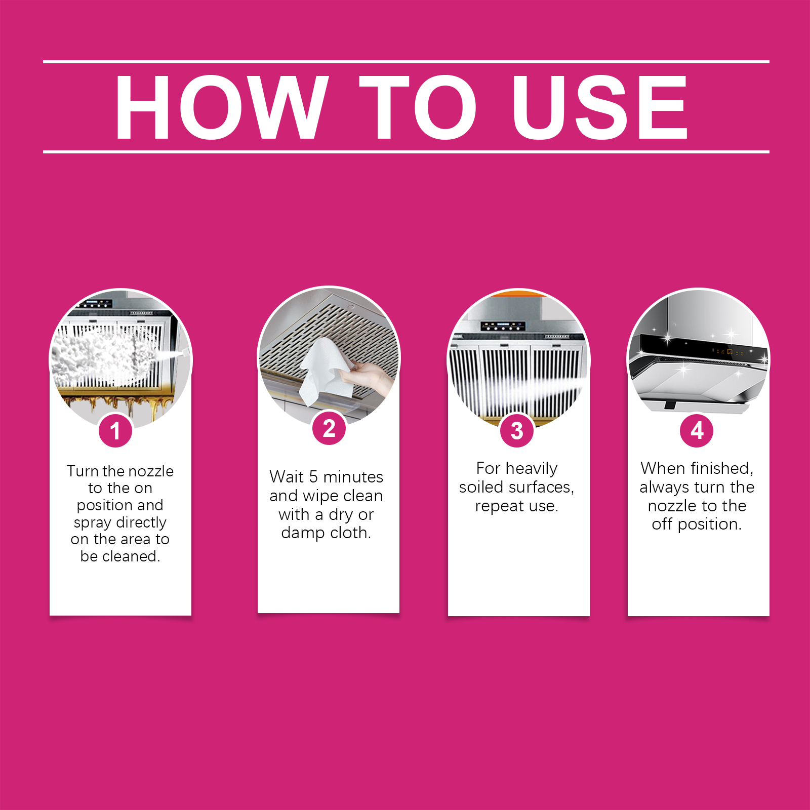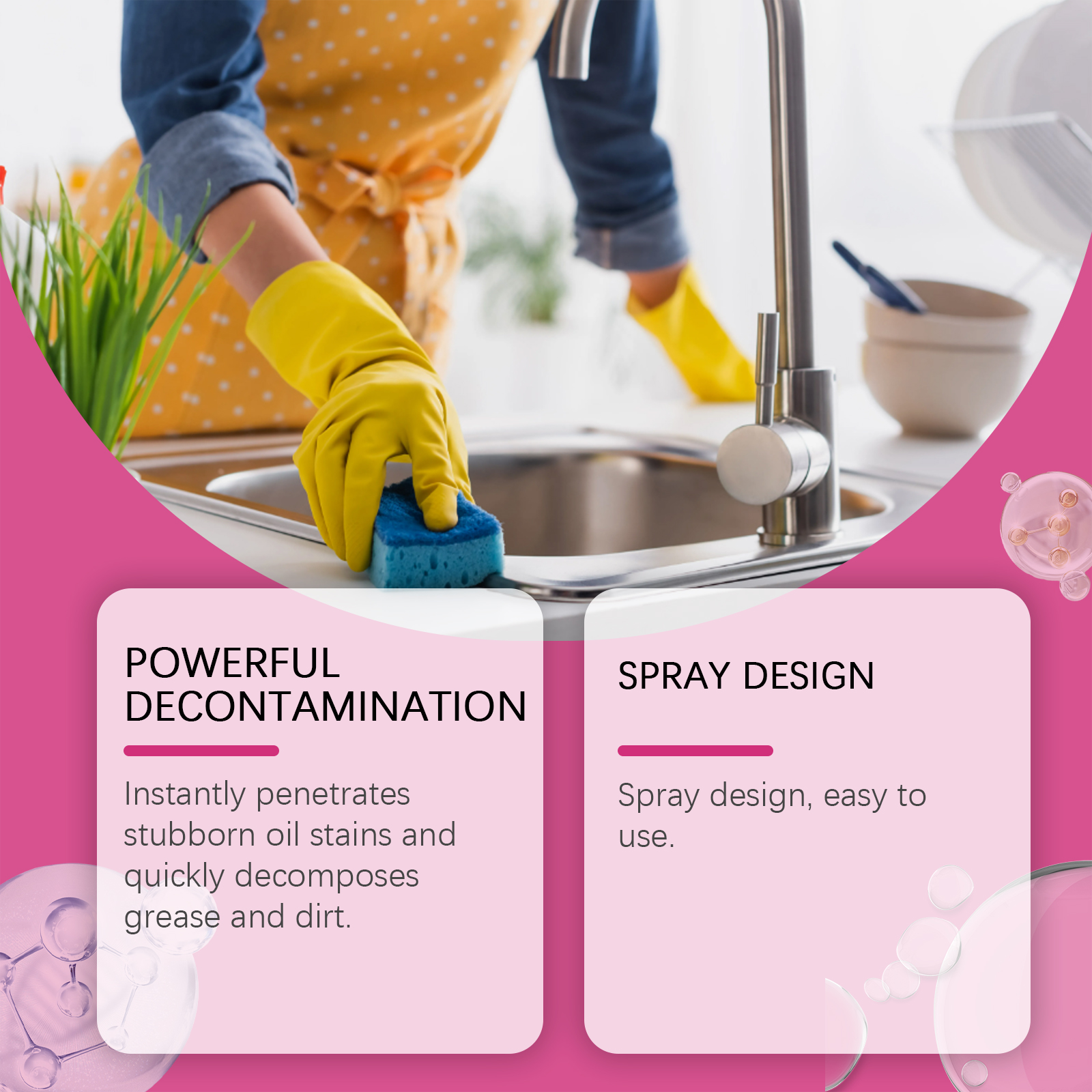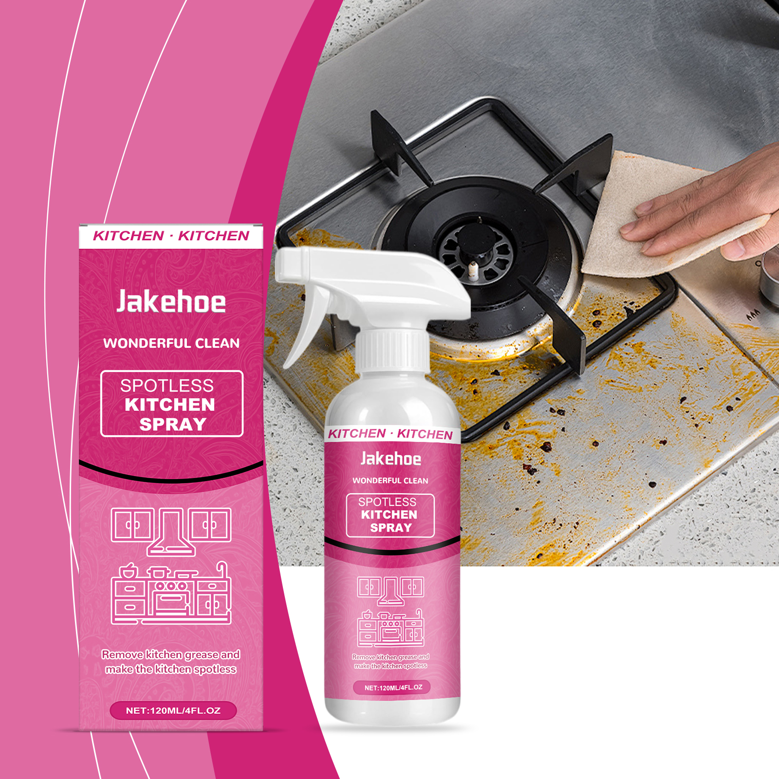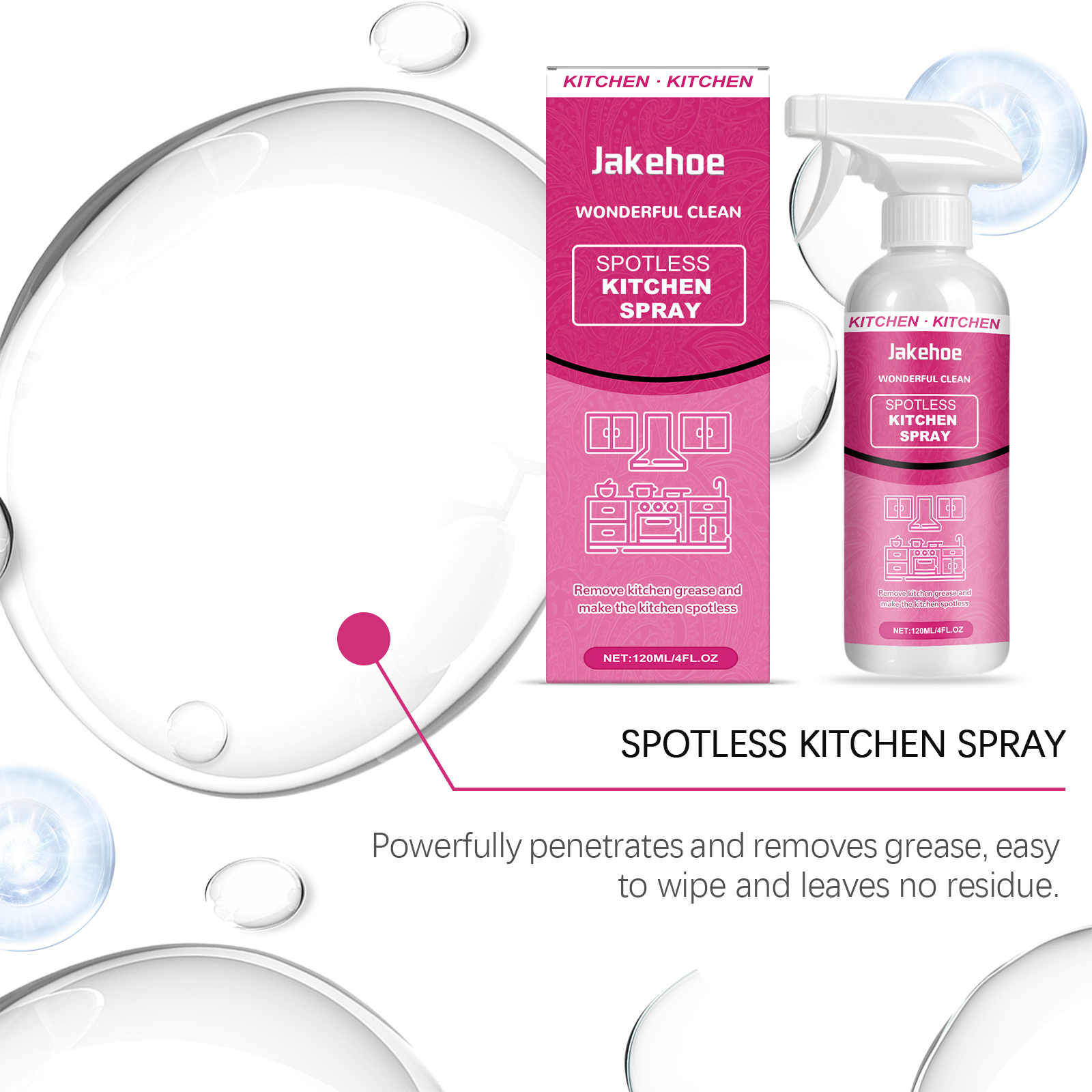 我们的厨房清洁喷雾,由月桂醇聚醚硫酸酯钠、异构醇聚氧乙烯醚精心调配而成。专为渗透顽固油渍,快速分解油脂和污垢设计。使用方法极为便捷:将喷嘴转到开启位置,并直接在要清洁的区域喷洒。等待5分钟,然后用干布或湿布擦拭干净。对于严重污渍的表面,重复使用。完成后,务必将喷嘴转到关闭位置。并且具有抗菌效果,有助于保持表面卫生。