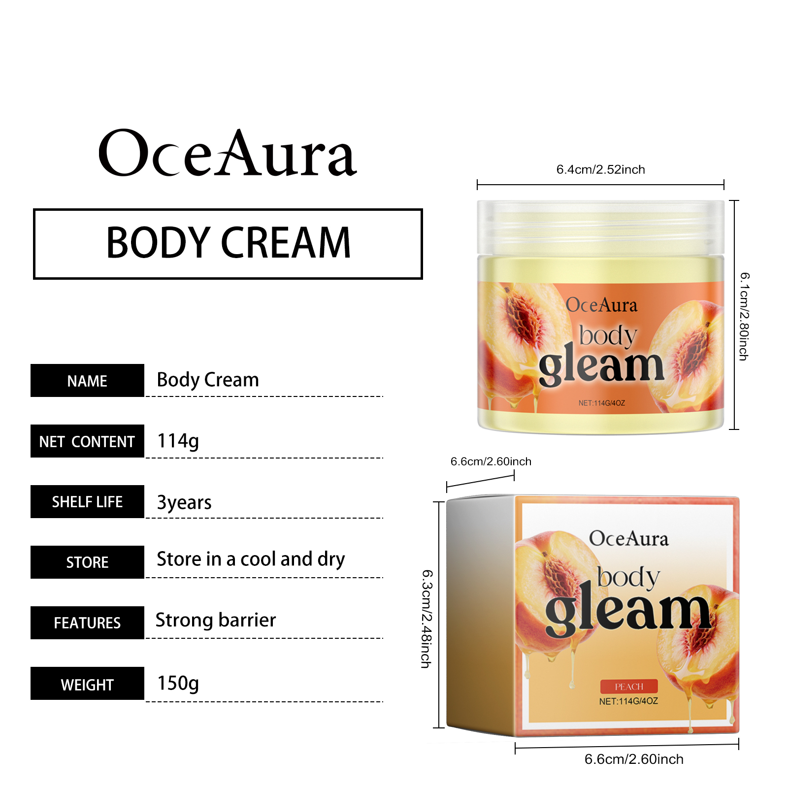 我们的身体黄油润肤霜,由三乙醇胺、乳木果油、桃子提取物精心调配而成。专为改善皮肤状况设计。使用方法极为便捷:清洁皮肤并保持干燥。取适量本品均匀涂抹于身体肌肤。轻轻按摩至吸收。并且使用后,皮肤感觉柔软、明亮和细腻。