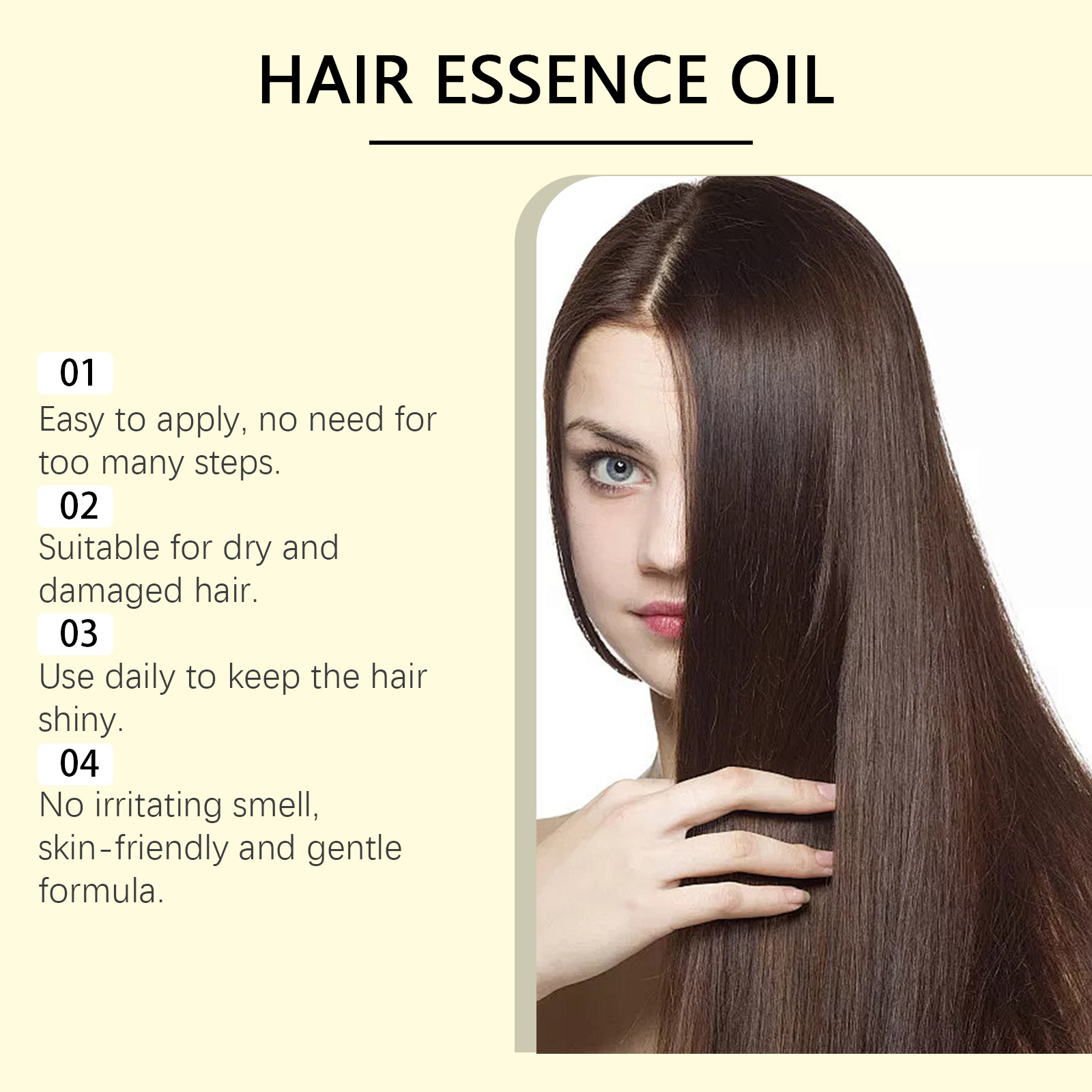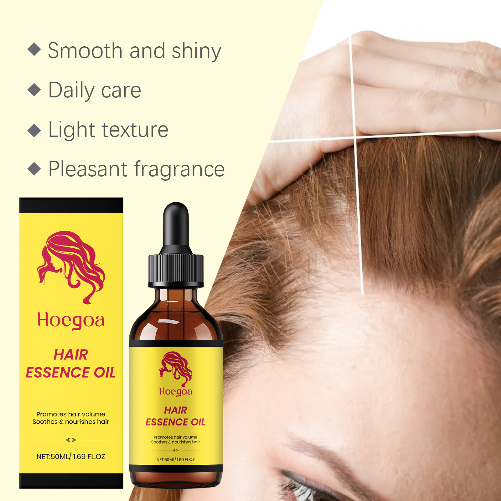 我们的滋养护发精油,由椰子油、蓖麻油、迷迭香叶油精心调配而成。专为受损发质设计,修复毛囊,赋予秀发柔亮光泽。使用方法极为便捷:取适量本产品于手心,均匀涂抹于头皮和头发上。用指尖轻轻按摩,以促进吸收。并且可以温和舒缓头皮不适,深层滋养,修复受损毛躁发丝。