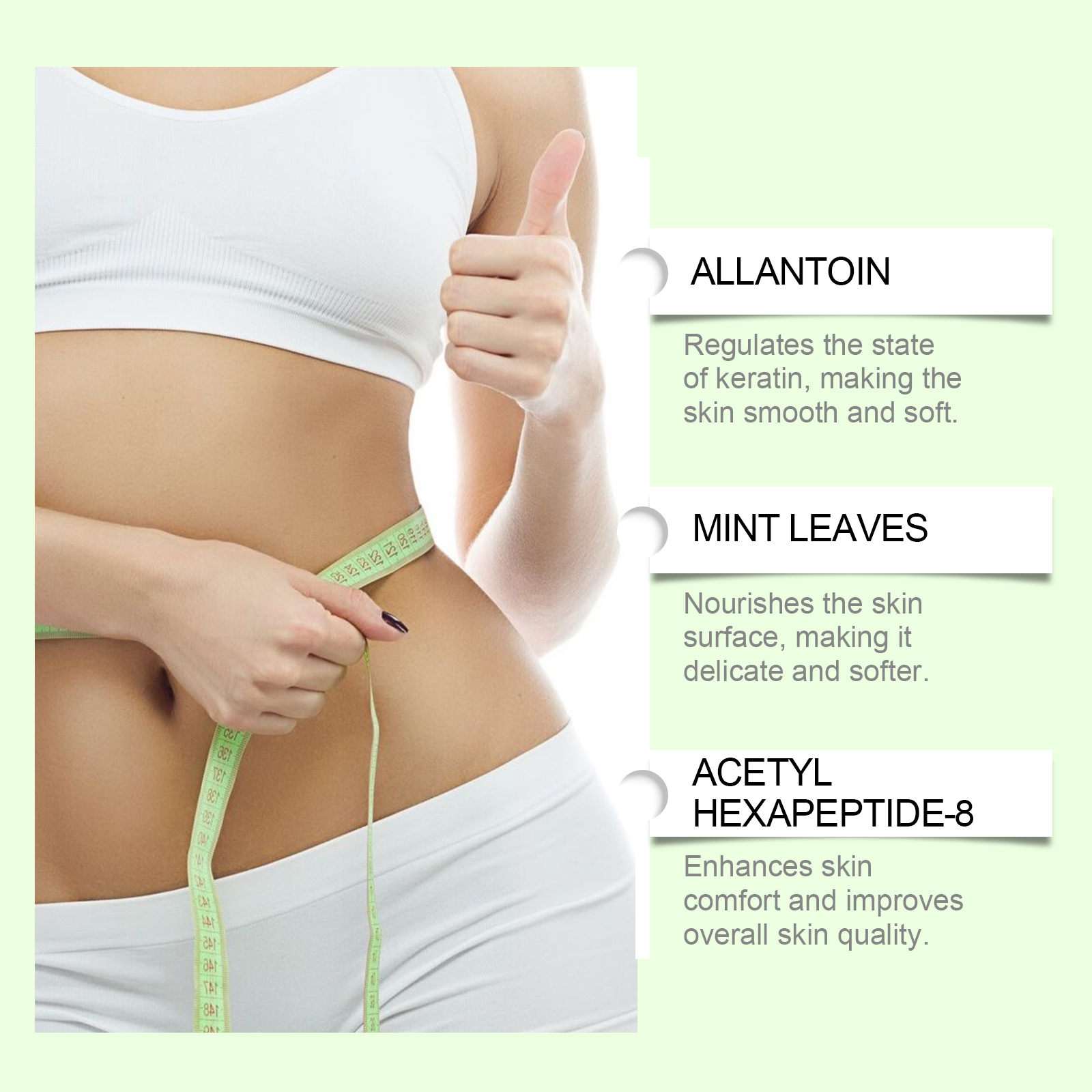 我们的身体护理贴,由乙酰基六肽-8、薄荷叶、尿囊素精心调配而成。专为减少脂肪,促进瘦身,降低食欲,控制血糖设计。使用方法极为便捷:清洁肌肤并保持干燥;将本品贴在腹部肌肤上,轻轻按压确保其粘合,静置4小时后撕下即可。并且可以控制体重,紧致肌肤,促进新陈代谢。