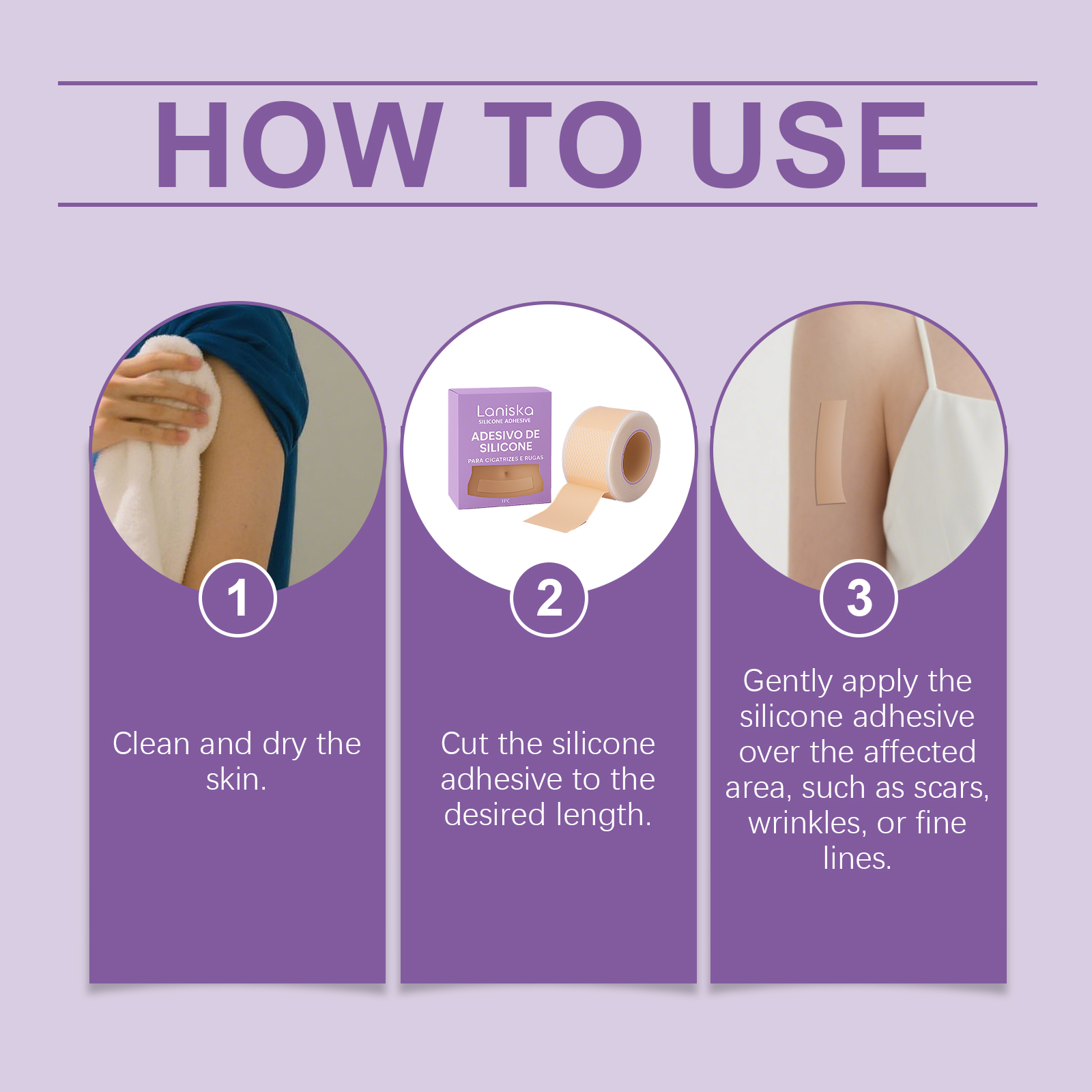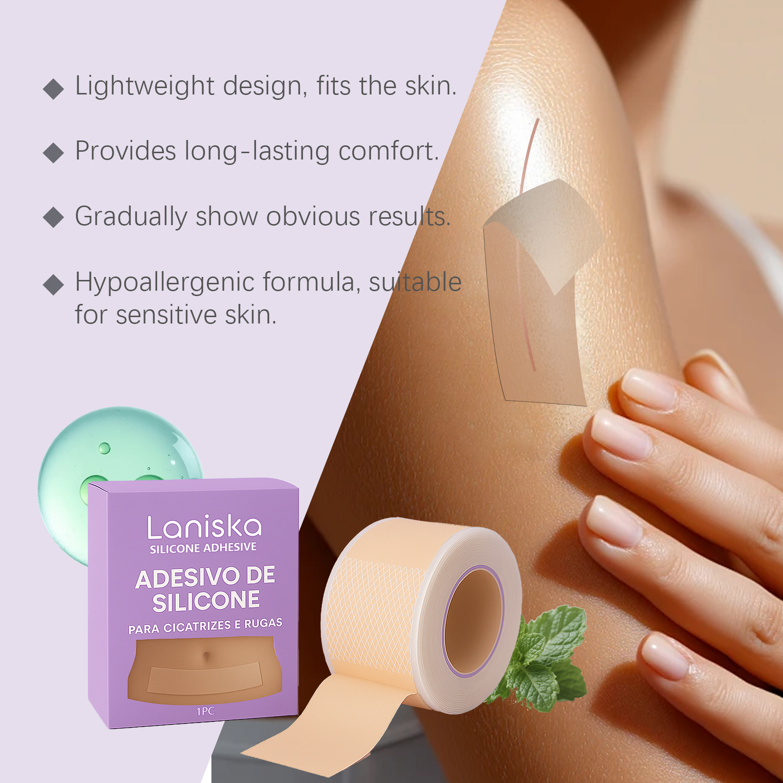 我们的硅胶养护贴,由甘油、羟乙基纤维素精心调配而成。专为改善疤痕外观,有助于改善细纹和皱纹的外观设计。使用方法极为便捷:1. 清洁并擦干皮肤。2. 将粘合贴剪至所需长度。3. 轻轻地将粘合贴涂抹在受影响的区域,例如疤痕、皱纹或细纹。并且它可以为疤痕处敏感肌肤带来舒适,辅助淡化疤痕痕迹,为有疤痕的肌肤提供护理。