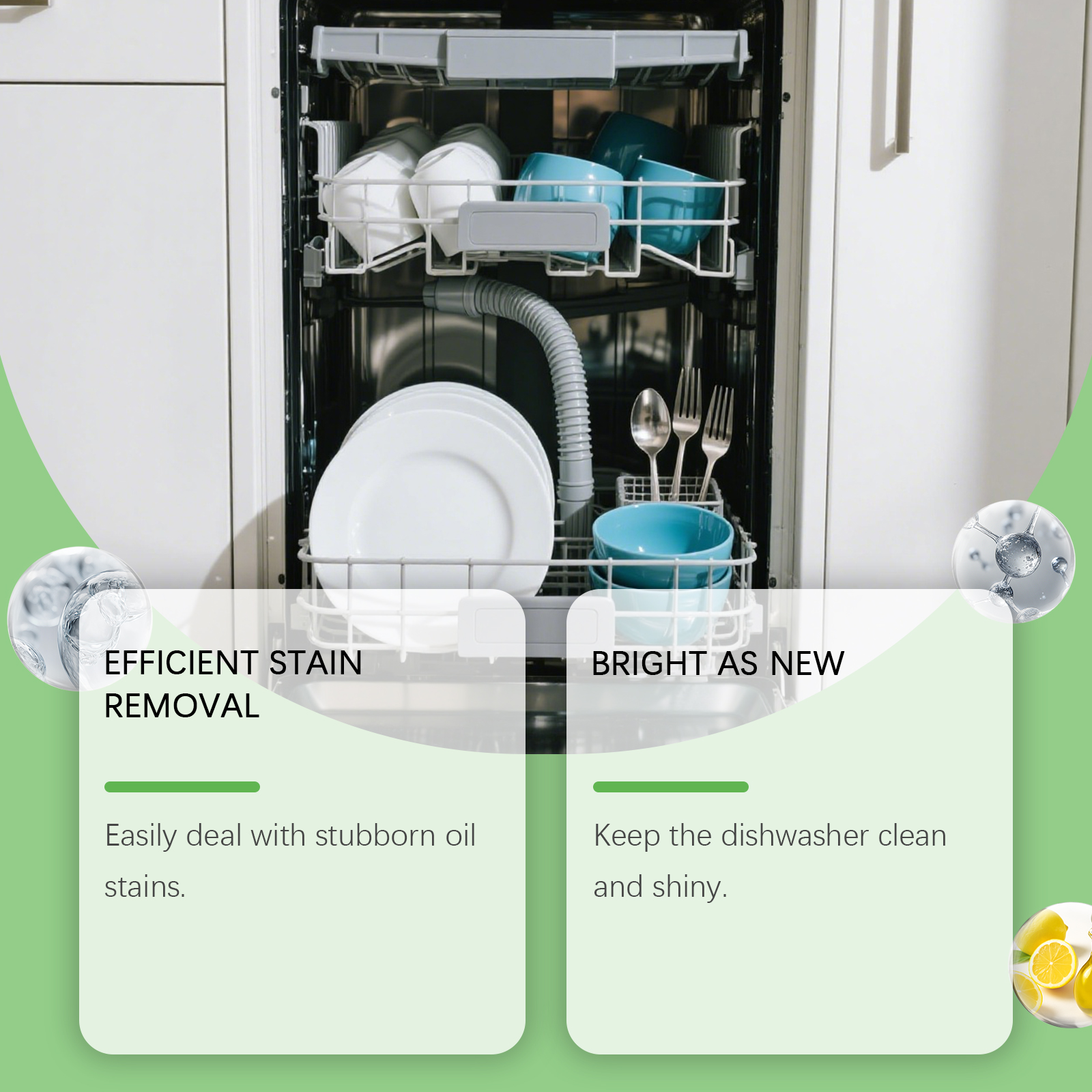 我们的洗碗机清洁片,由碳酸氢钠、十二烷基硫酸钠精心调配而成。专为轻松处理顽固油渍设计。使用方法极为便捷:1.将1-2片泡腾片直接放入洗碗机,或将其溶解在温水中并倒入洗碗机。2.打开洗碗机清洁模式进行清洗,并在程序完成后,用纸巾擦去残留物。并且可以保持洗碗机清洁和光亮。