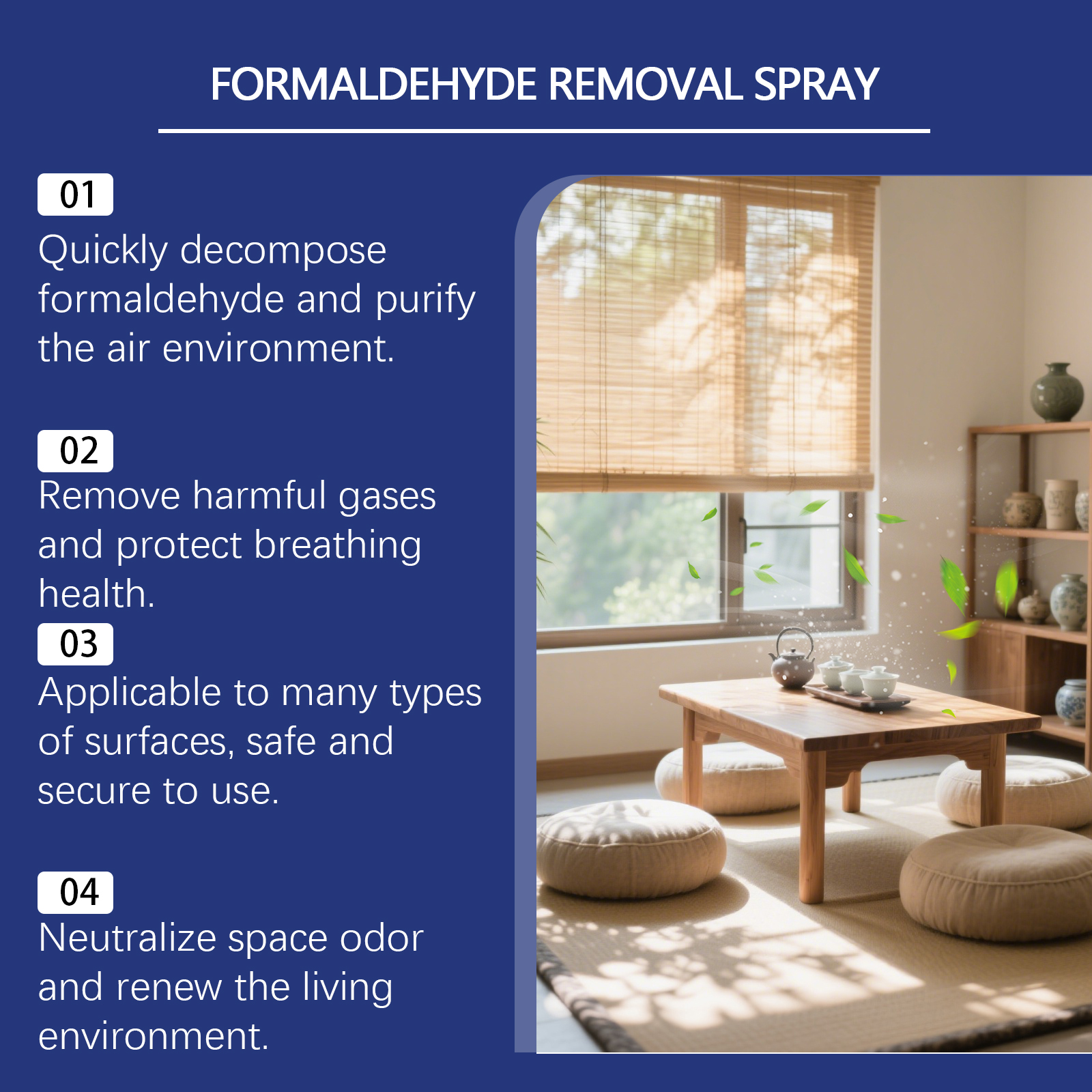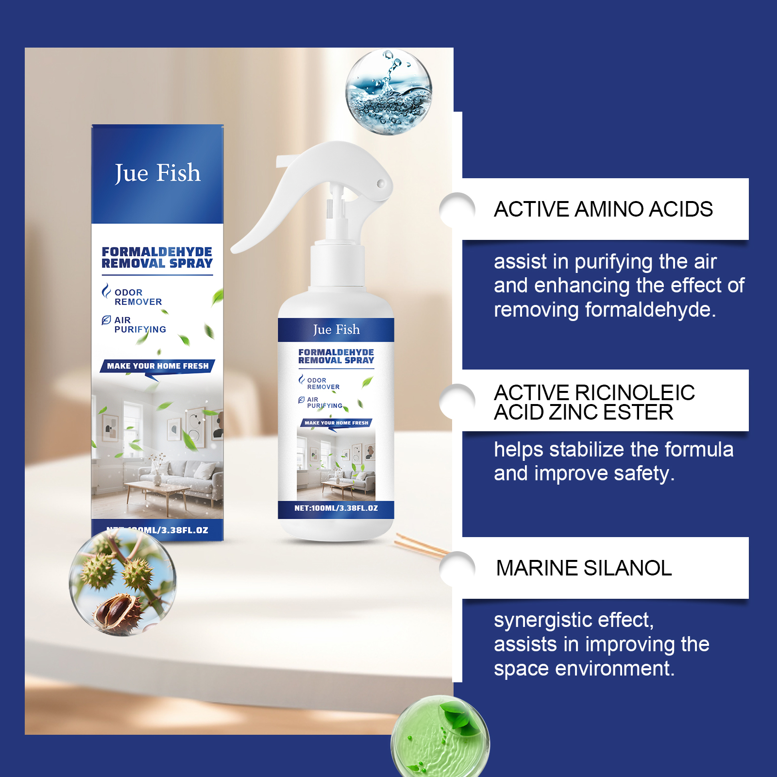 我们的甲醛喷雾,由活性氨基酸、活性蓖麻油酸锌酯精心调配而成。专为高效分解甲醛,净化空气环境,去除有害气体,保障呼吸健康设计。使用方法极为便捷:1.在使用前,将家中的家居擦拭干净并晾干。2.将本产品均匀喷洒在家具表面。3.喷洒后,打开门窗并通风房间以获得更好的效果。并且它可以适用多表面,安全无损伤,快速中和异味,焕新居住空间。
